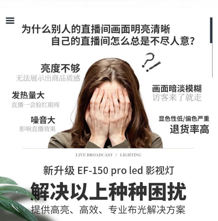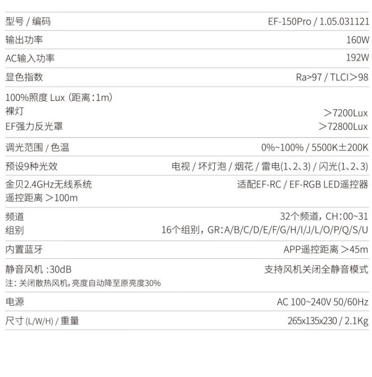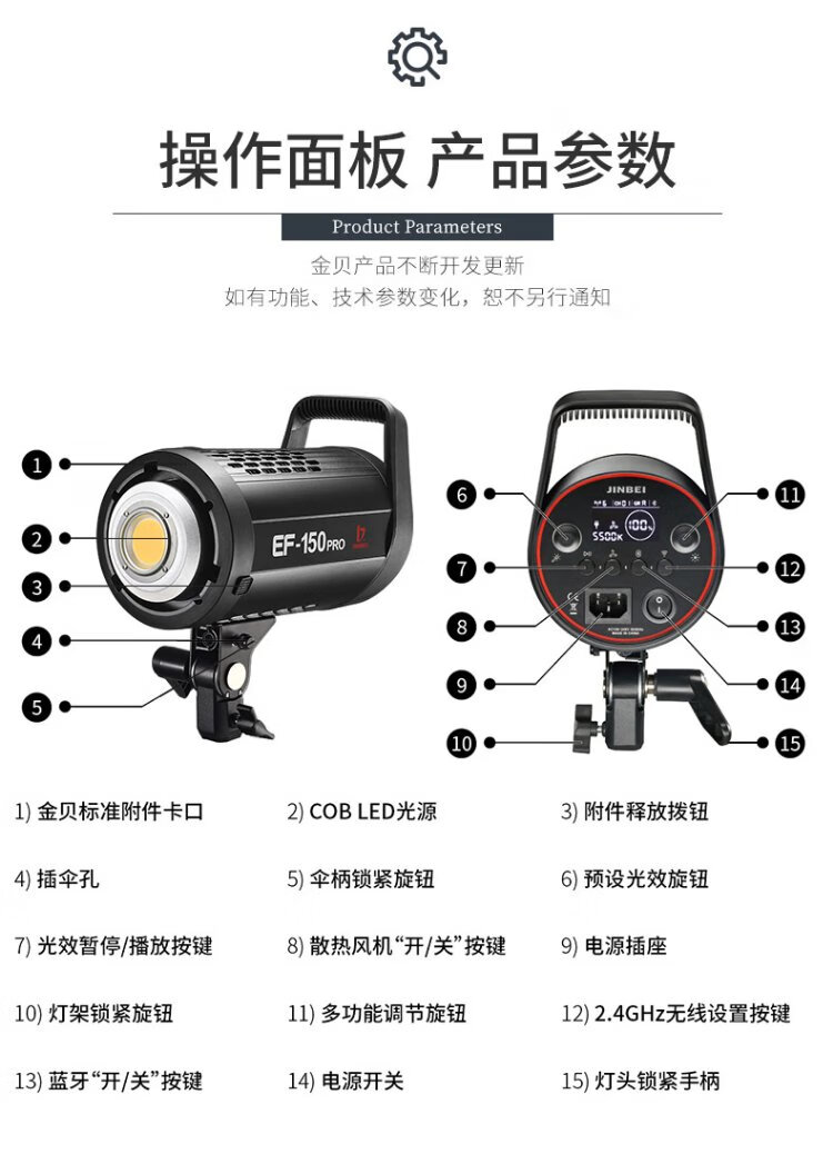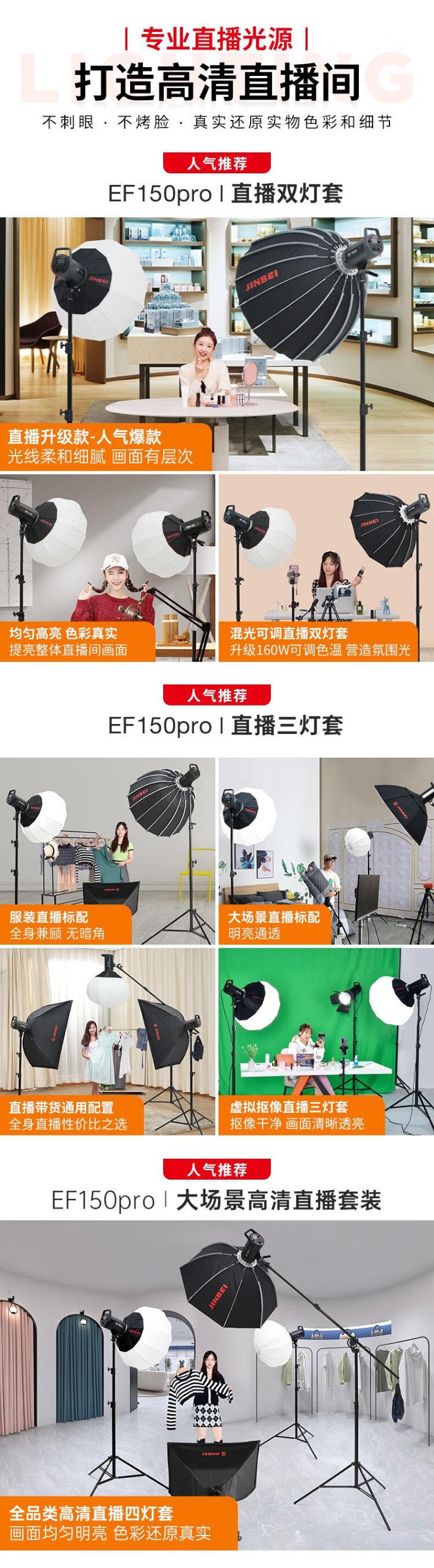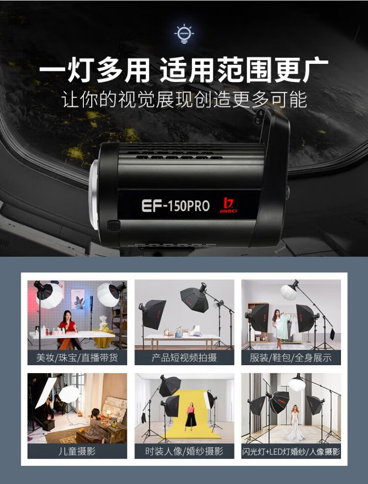 Jinbei (JINBEI) EF-150pro live broadcast LED fill light children's portrait studio photography light video recording constant light clothing products photo soft light octagonal ceiling light set