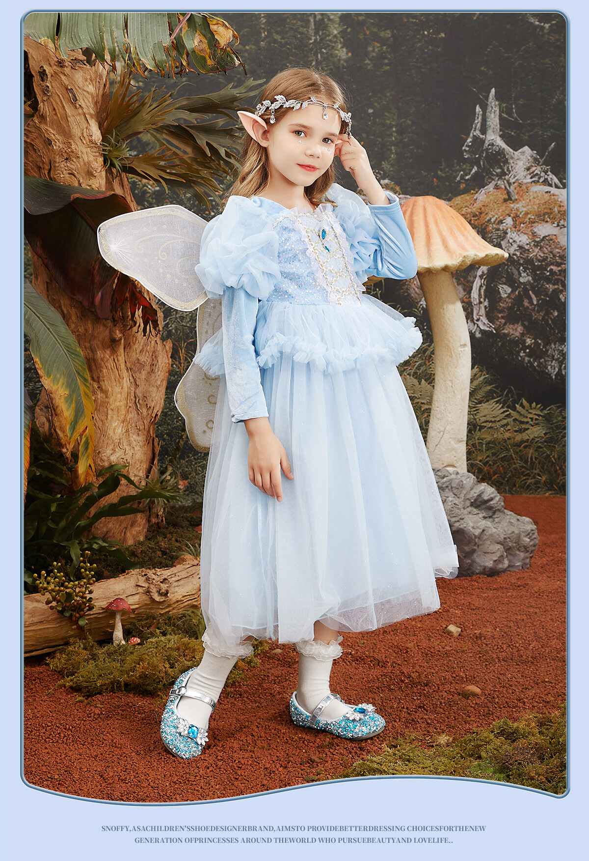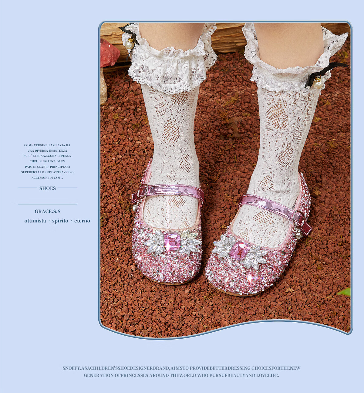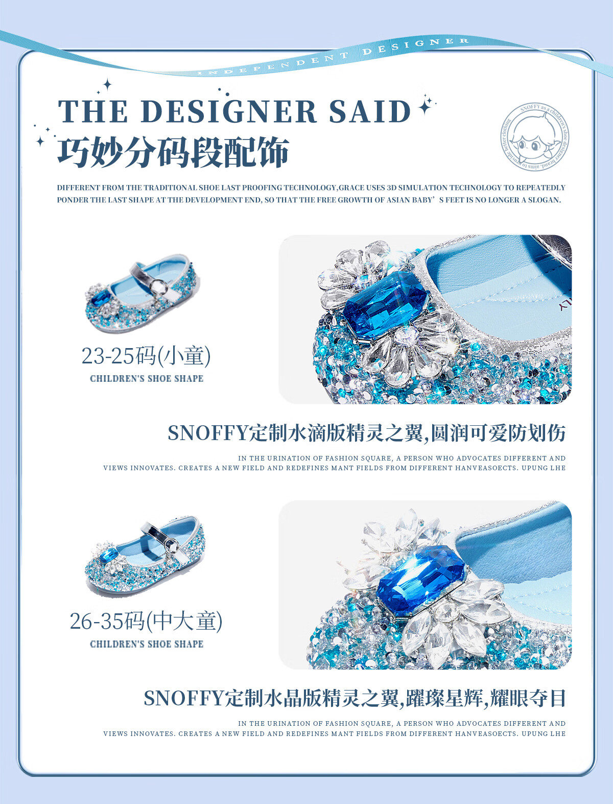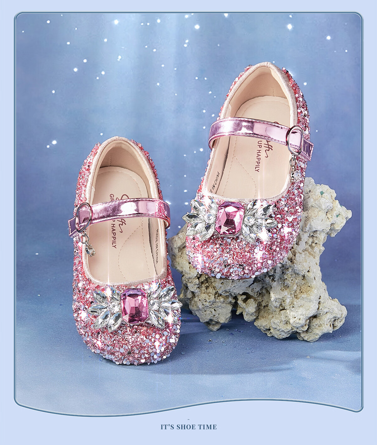 Snuffy girls' leather shoes spring Elsa princess shoes children's crystal shoes medium and large children's performance shoes soft-soled shoes ice and snow blue 26