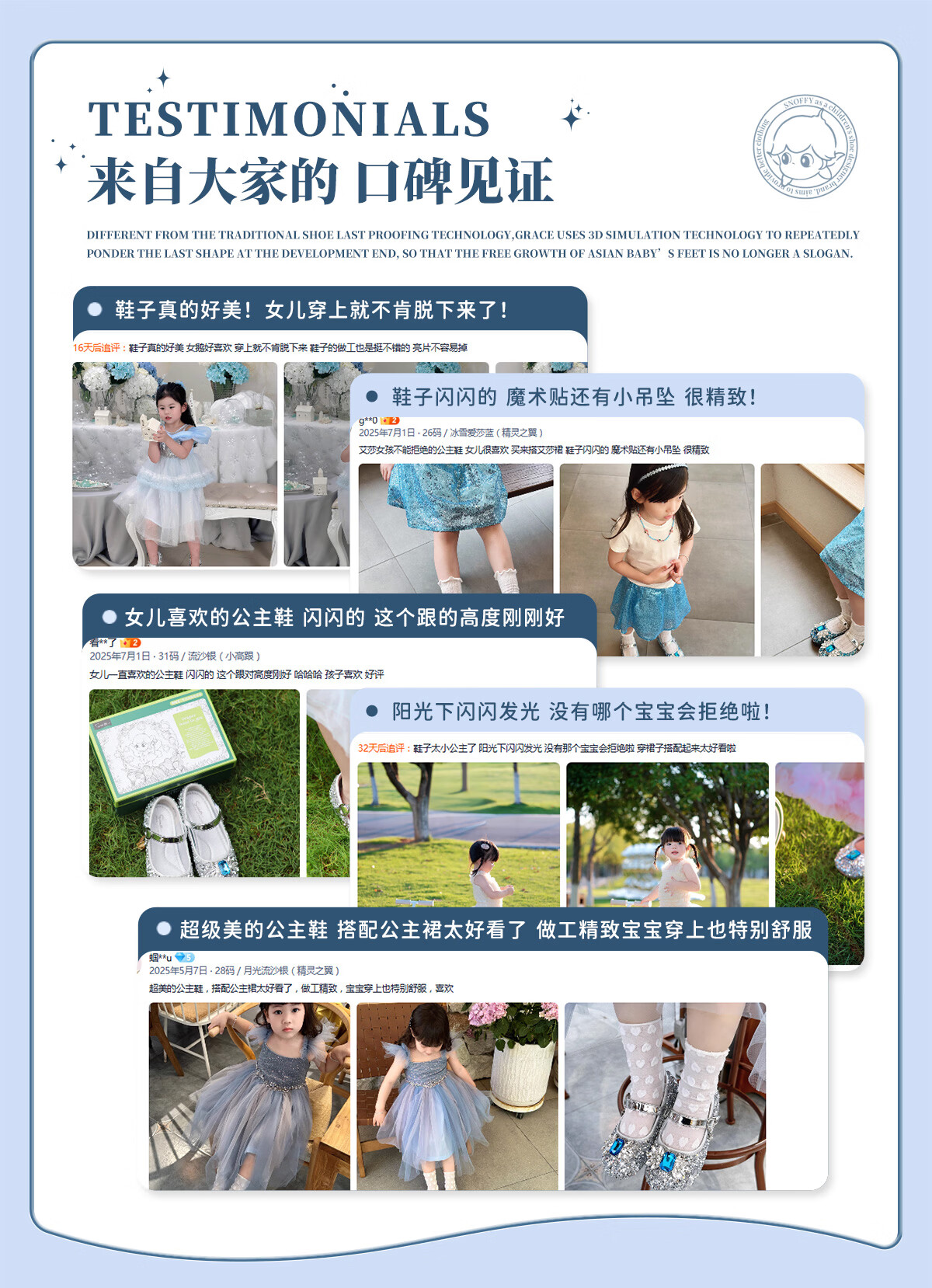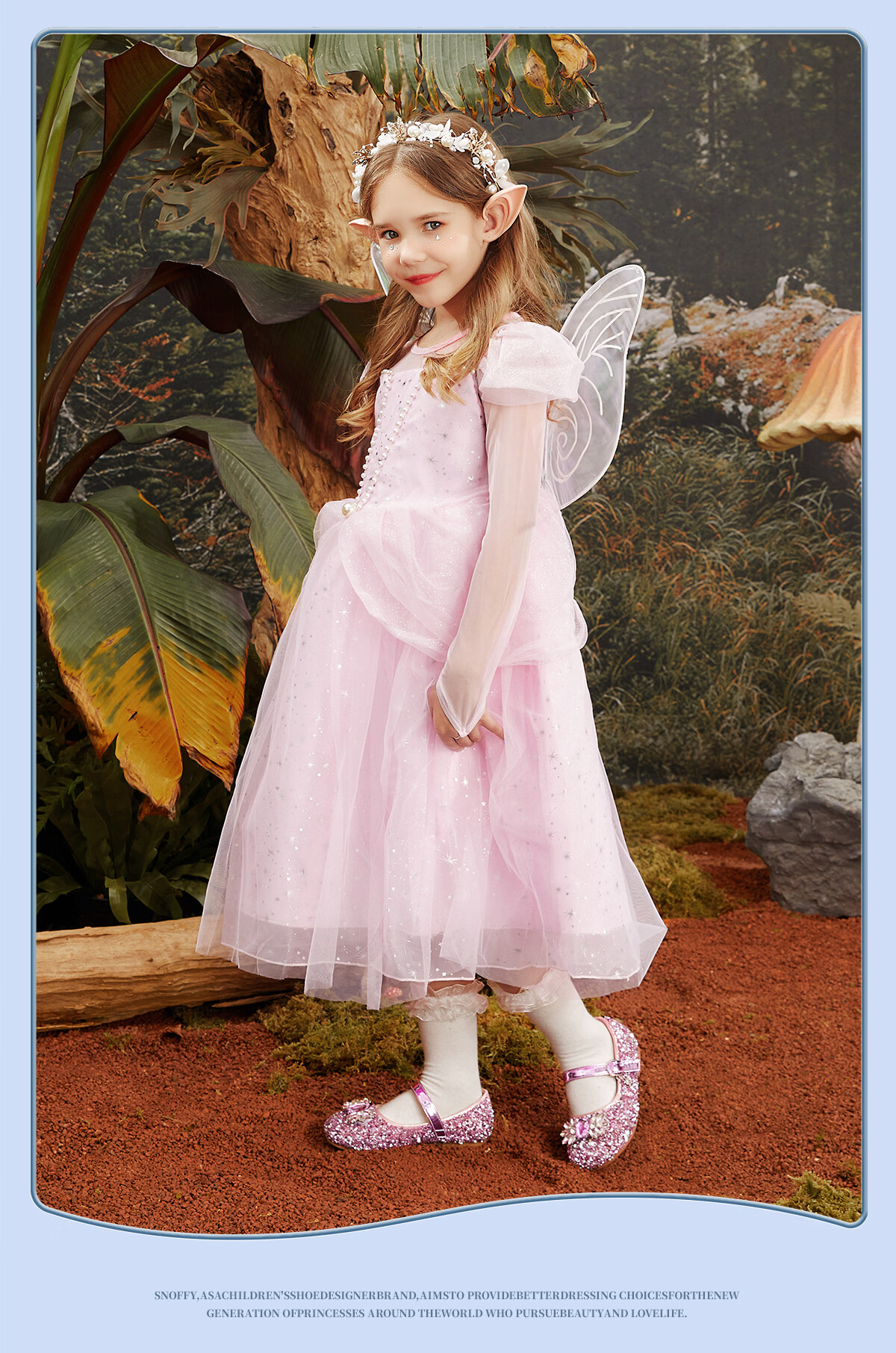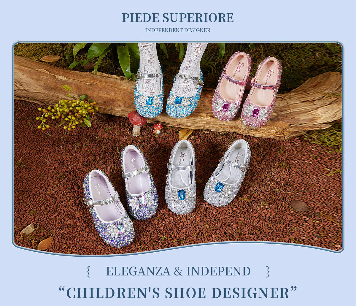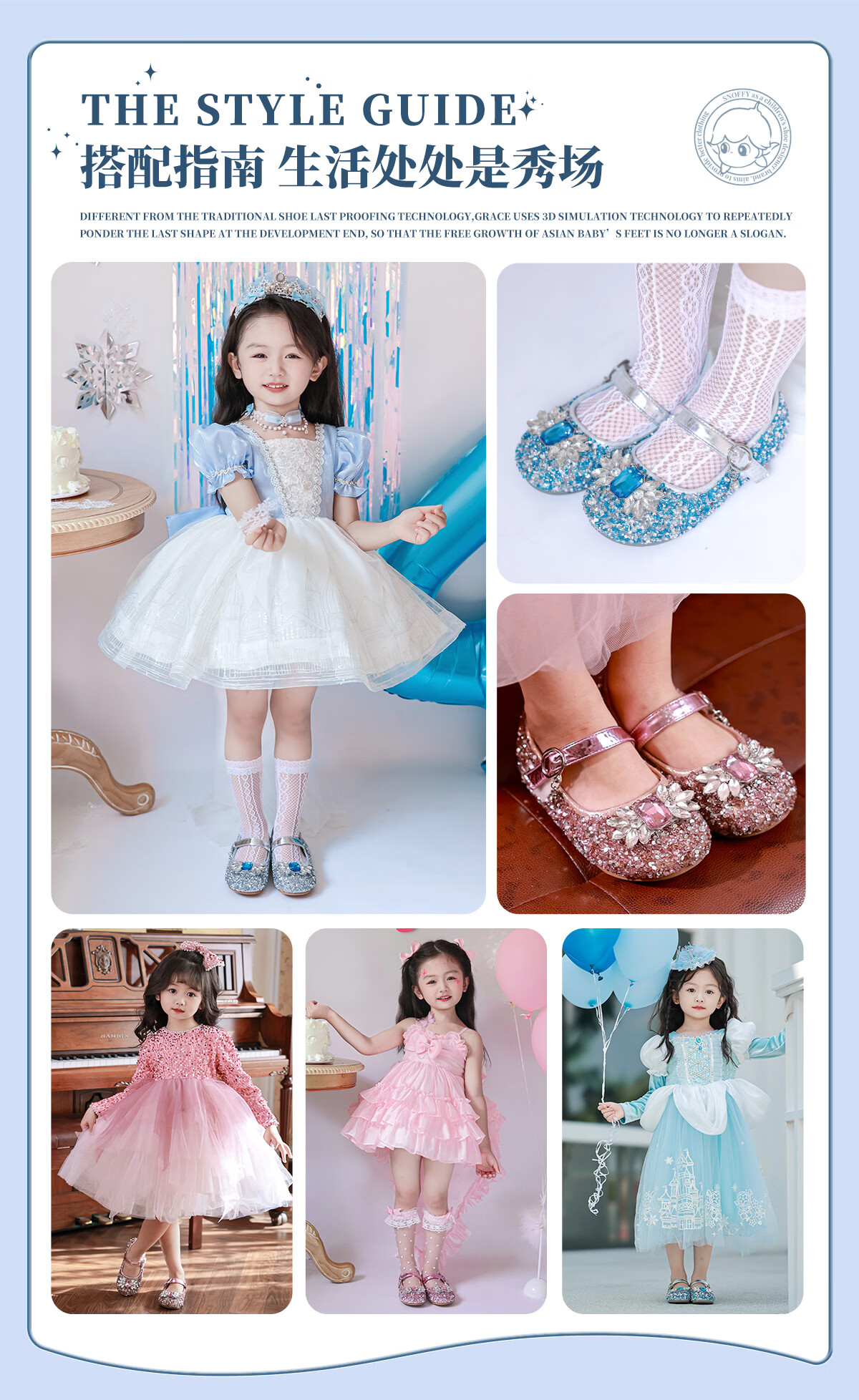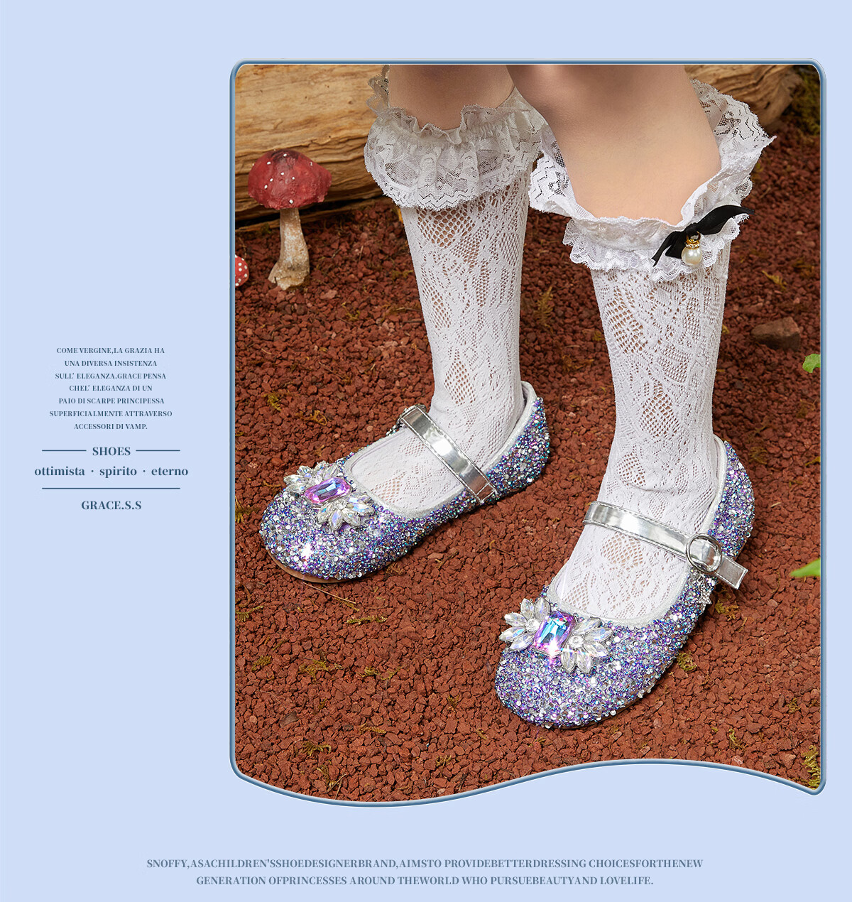 Snuffy girls' leather shoes spring Elsa princess shoes children's crystal shoes medium and large children's performance shoes soft-soled shoes ice and snow blue 26