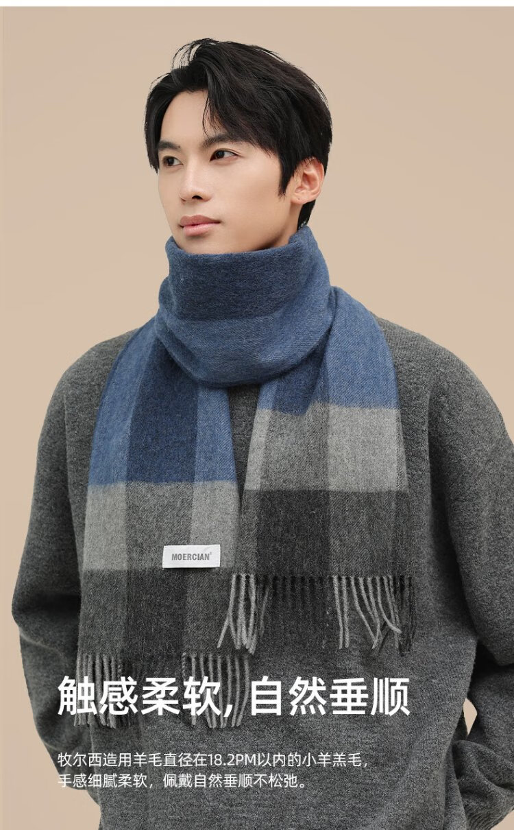 Woolsey pure wool scarf men's winter high-end neck warm neck warm neck gift box for elders and fathers boys' birthday gifts