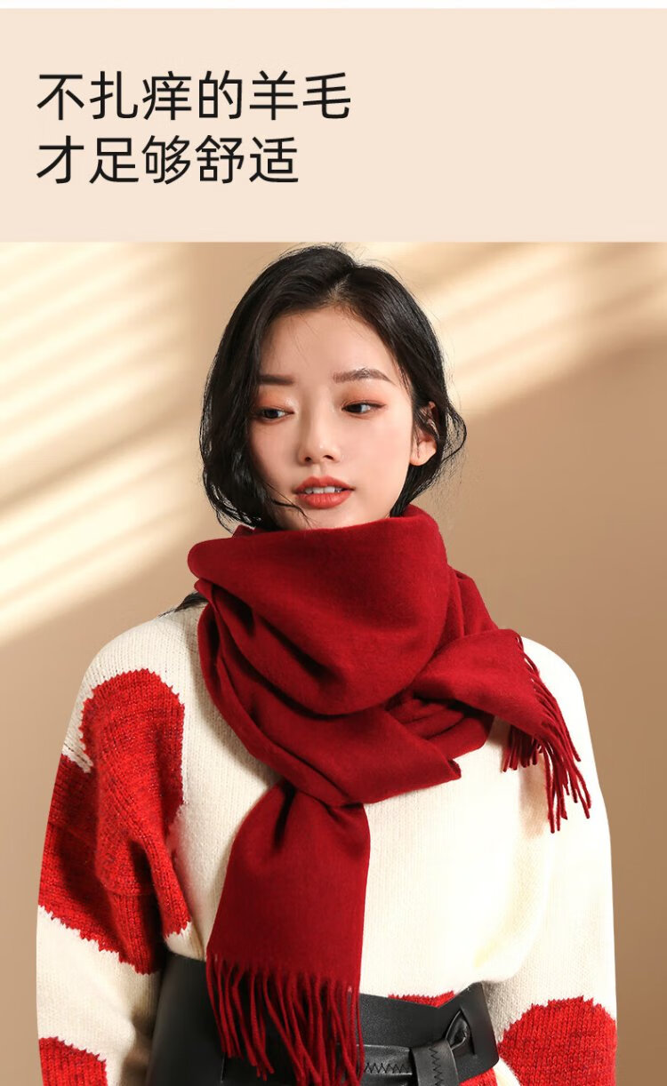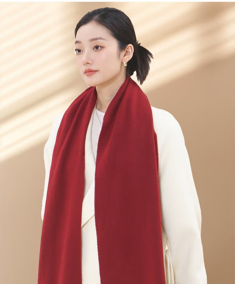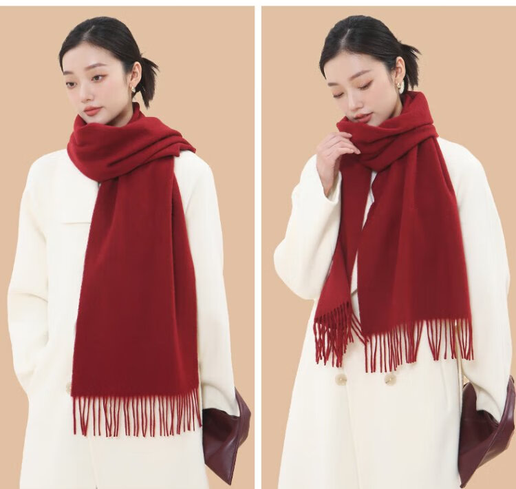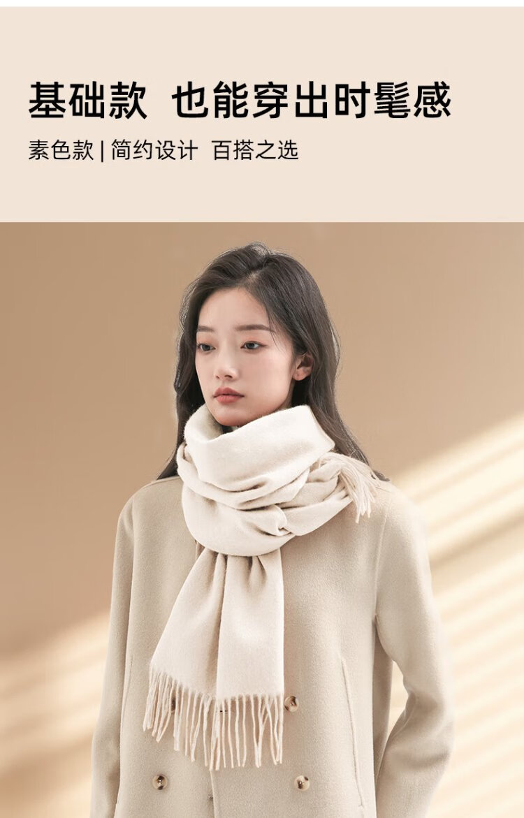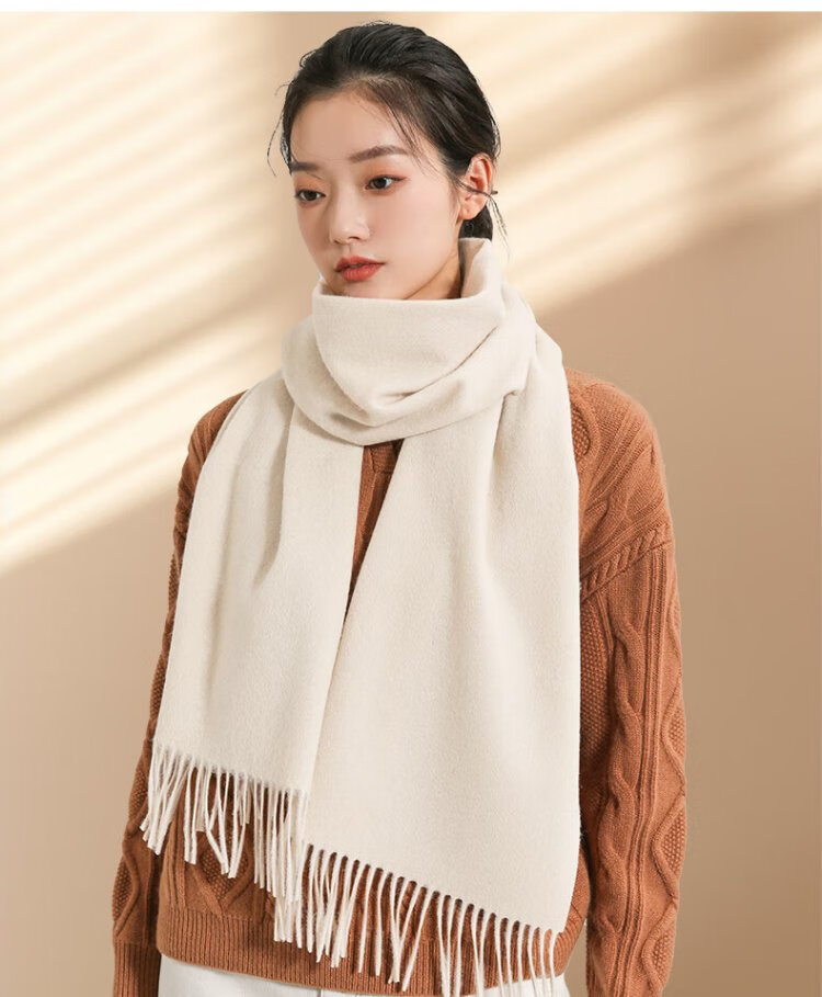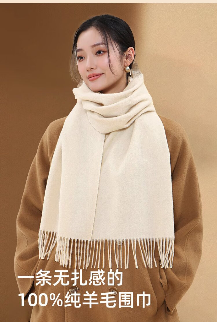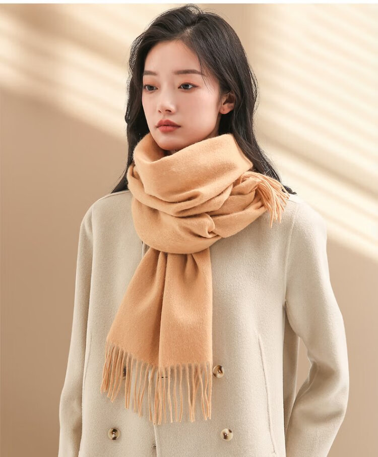 Woolsey pure wool scarf for girls, light luxury solid color single winter scarf to keep warm, gift box for elders, mother's birthday gift