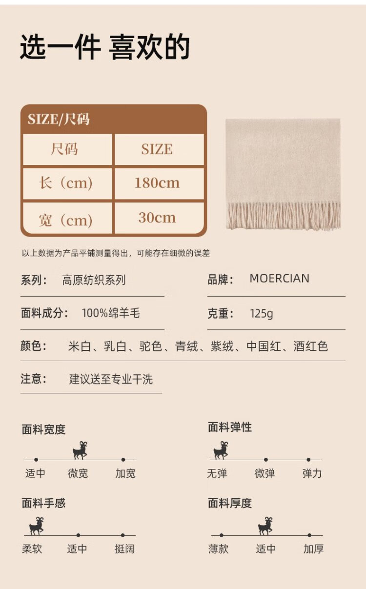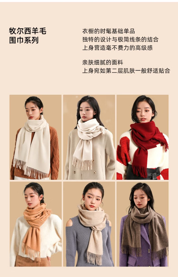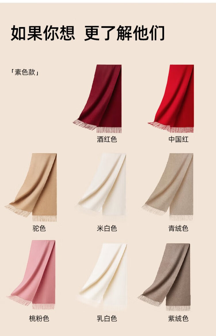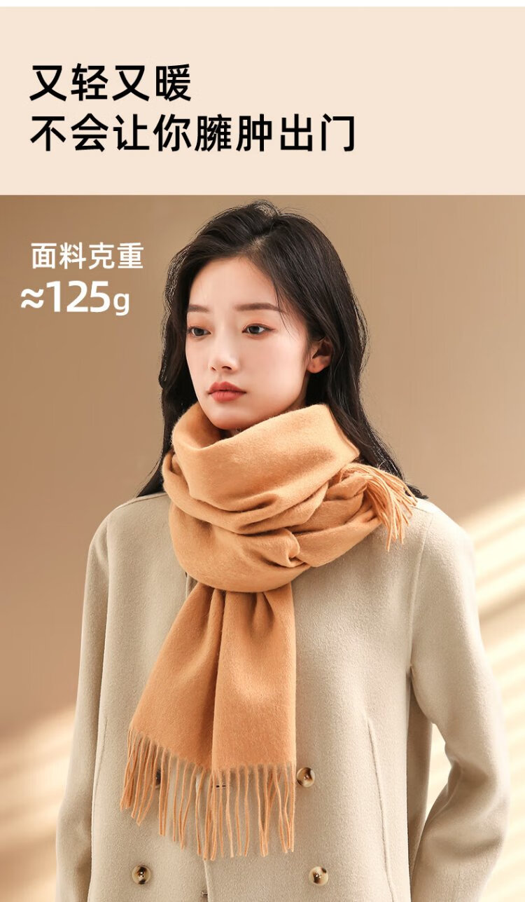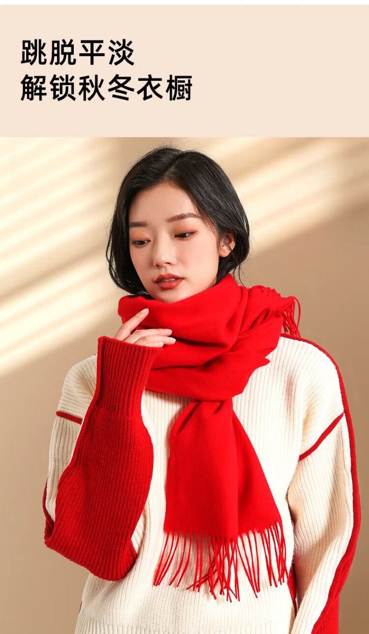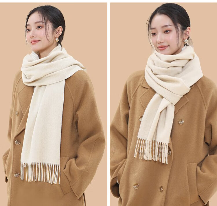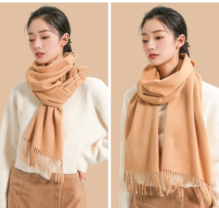 Woolsey pure wool scarf for girls, light luxury solid color single winter scarf to keep warm, gift box for elders, mother's birthday gift