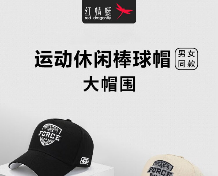 RED DRAGONFLY hat men's large head circumference four-season sun protection hat fashion sun hat outdoor sports embroidered lettering sunshade baseball cap