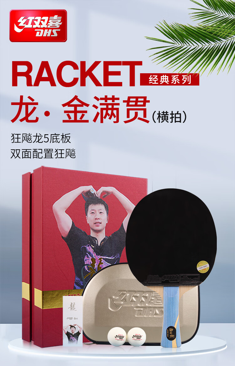 Red Double Happiness Crazy Malone Golden Slam Horizontal Table Tennis Racket Blue Sponge Orange Sponge Tianji Professional Grade Finished Product Gift Box