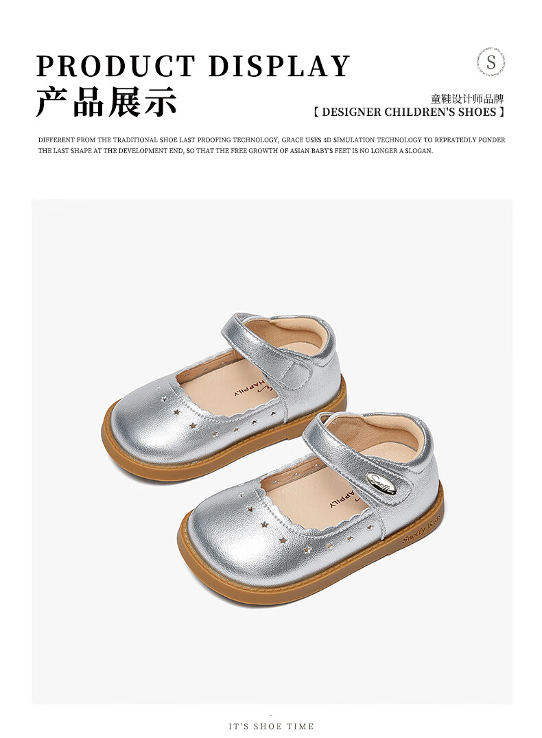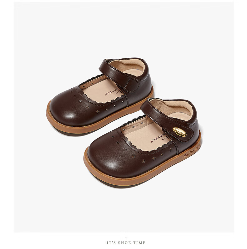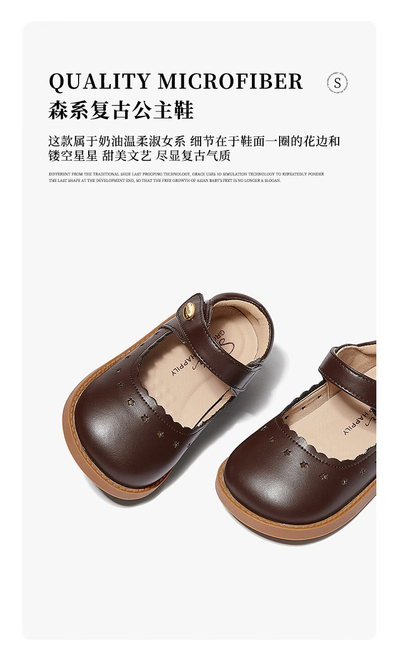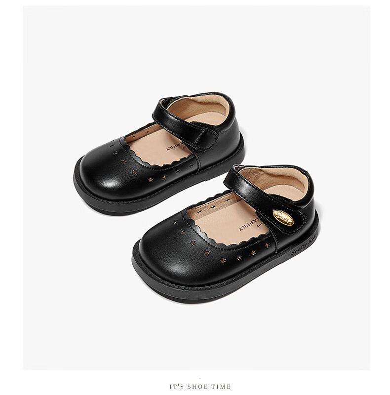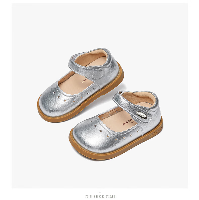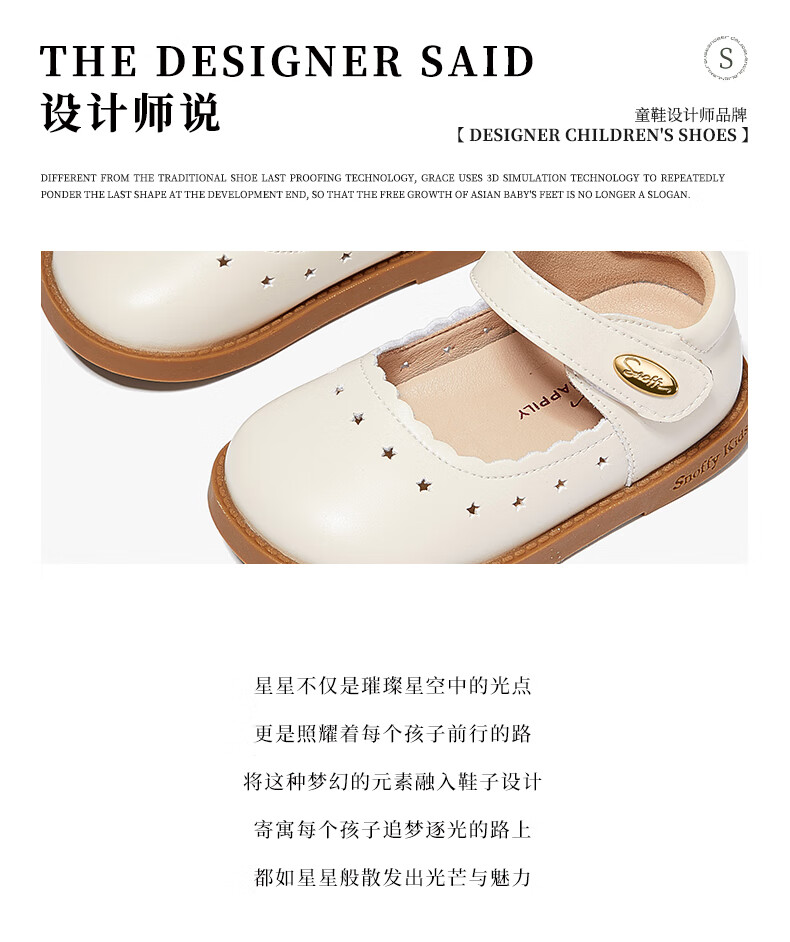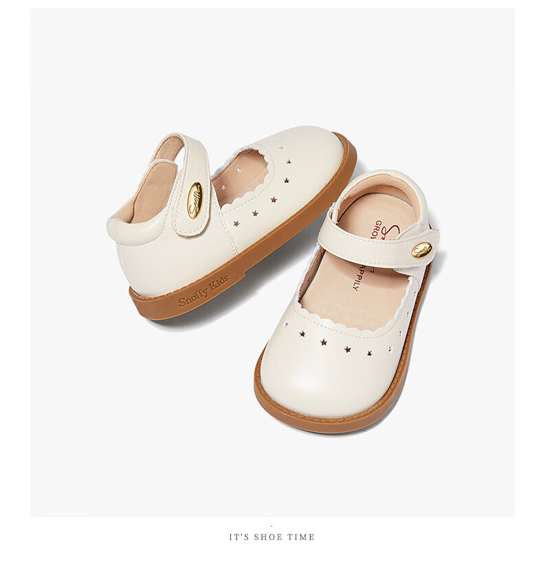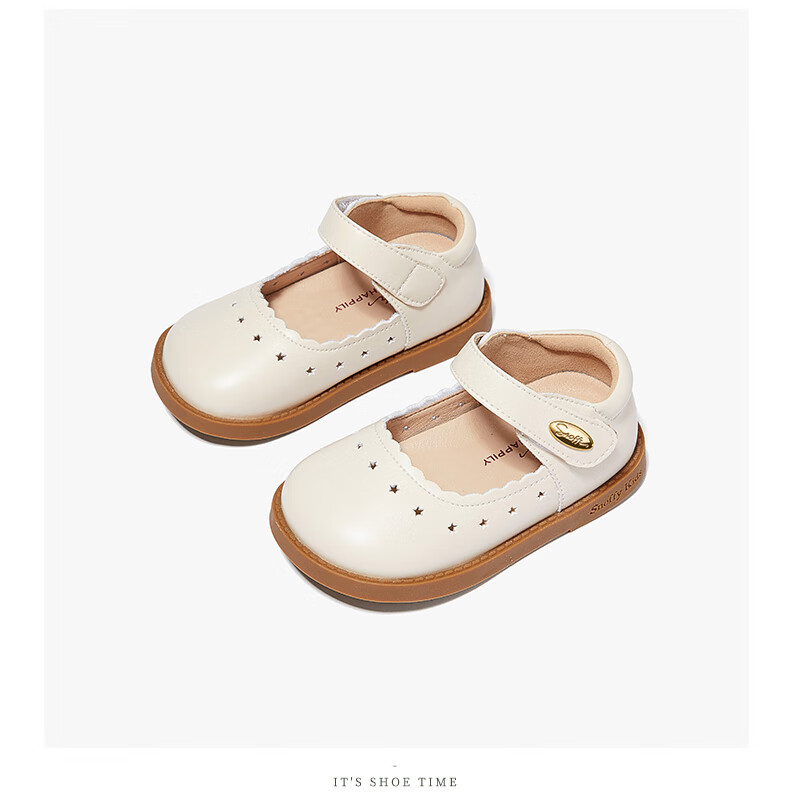 Snuffy children's shoes spring and autumn children's leather shoes girls hollow princess shoes baby simple and comfortable soft-soled shoes cream white 25