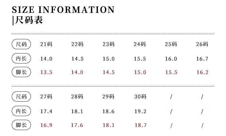 Length (cm) 22.8 23.1 23.5 24.1 24.5 25.1 25.7 26 26.7 27.3 27.9 28.6 29.2
