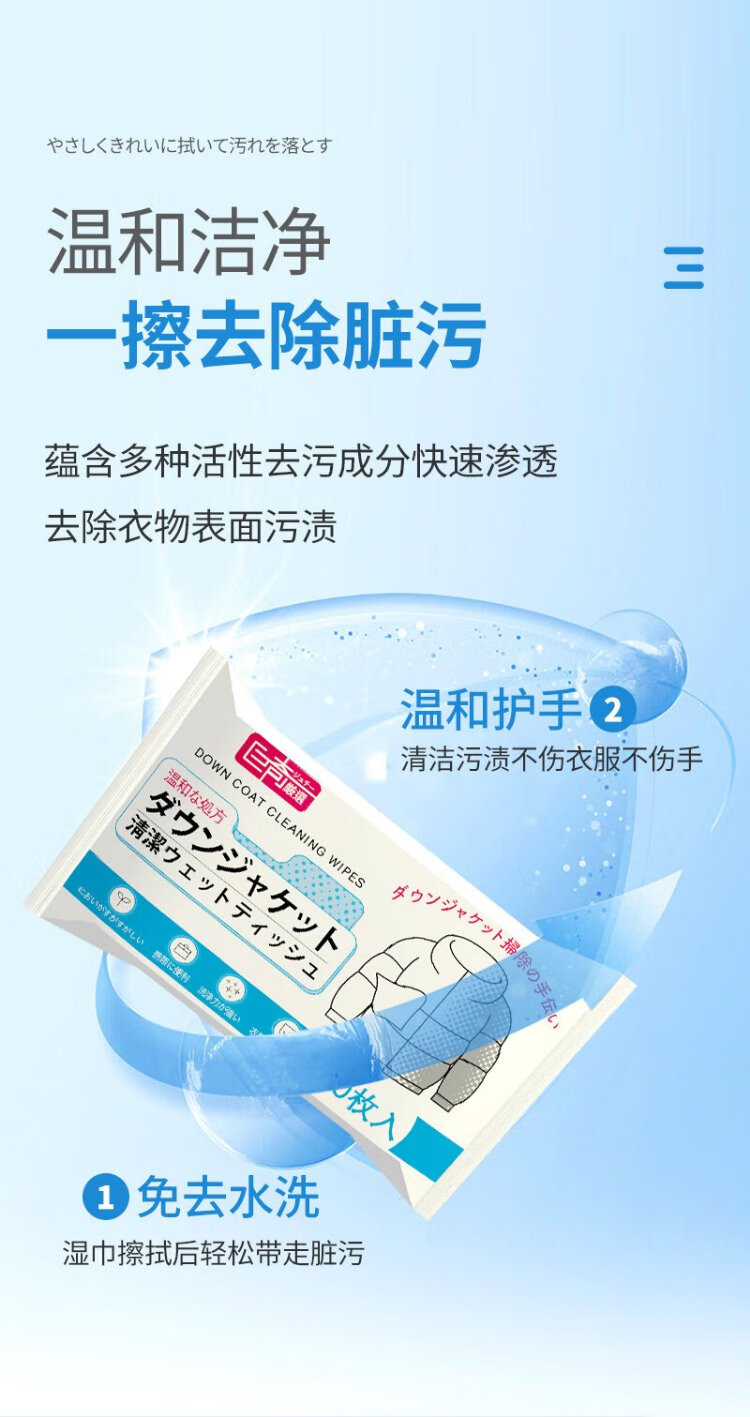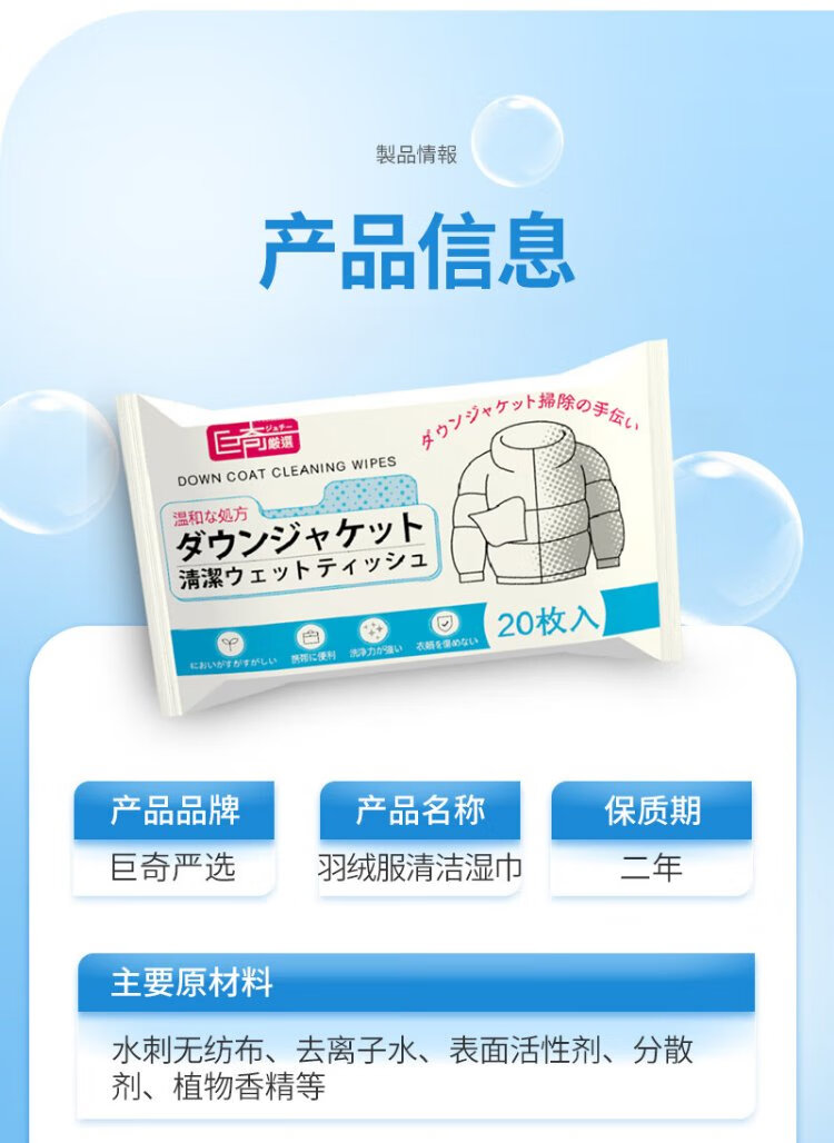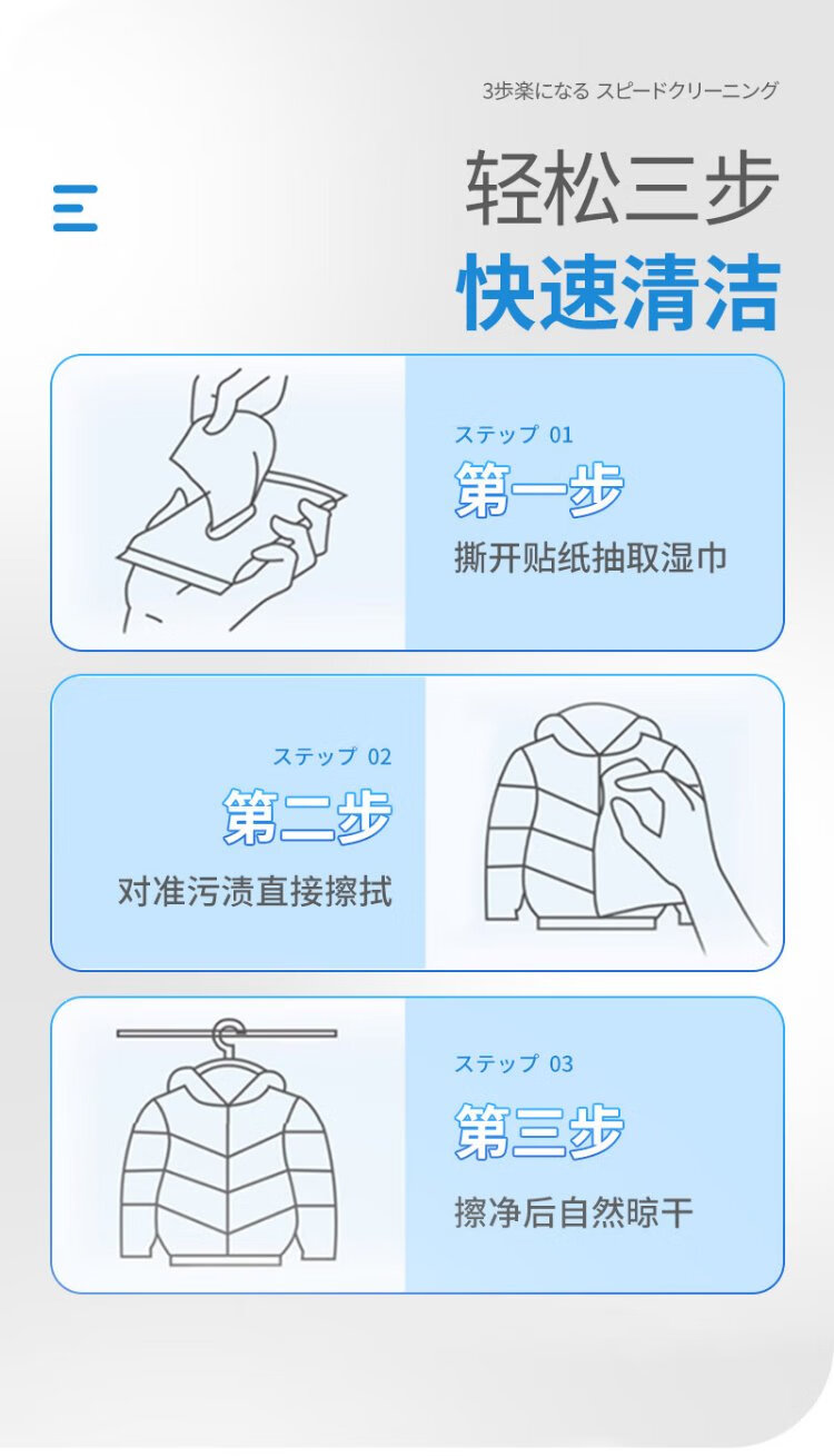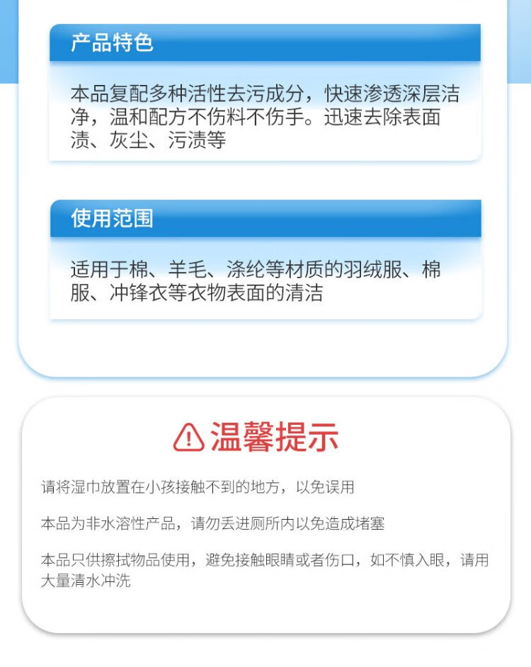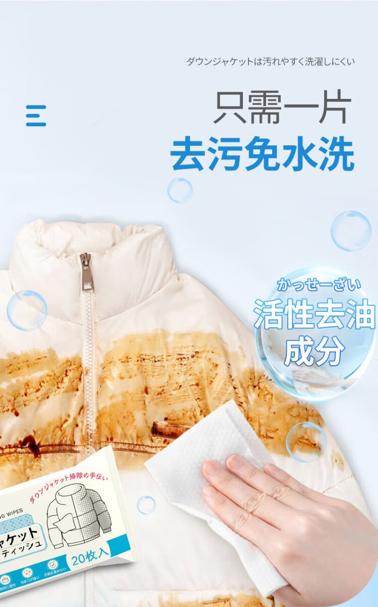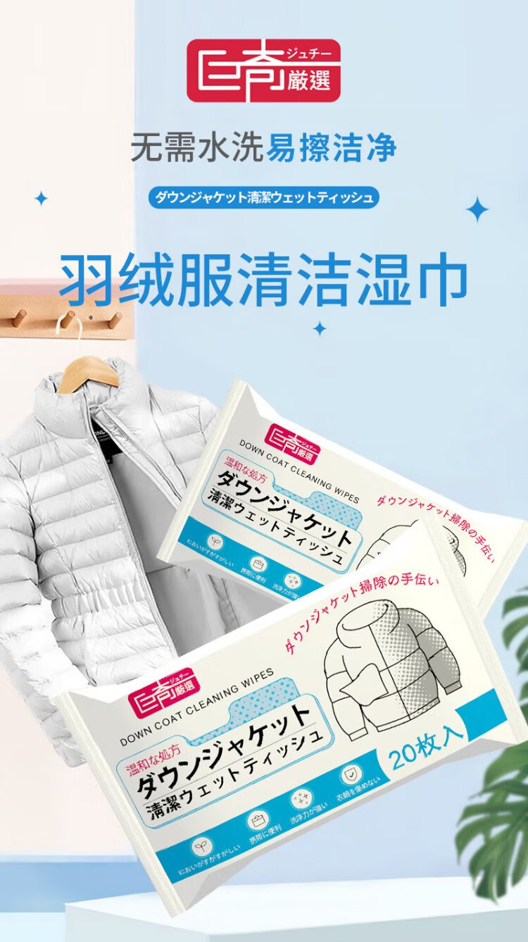 Juqi's carefully selected down jacket cleaning wipes 100 pieces of clothing stain removal wipes decontamination no-wash powerful stain removal small bag portable