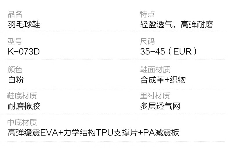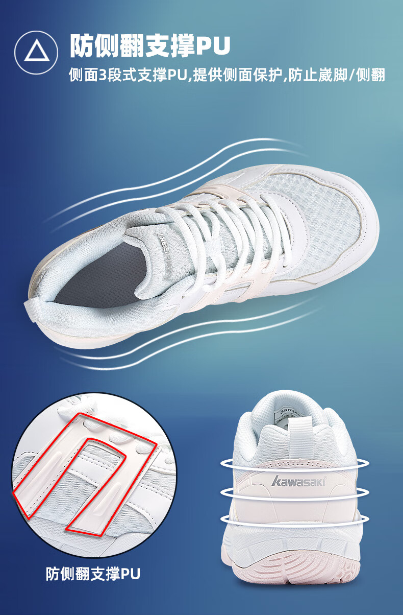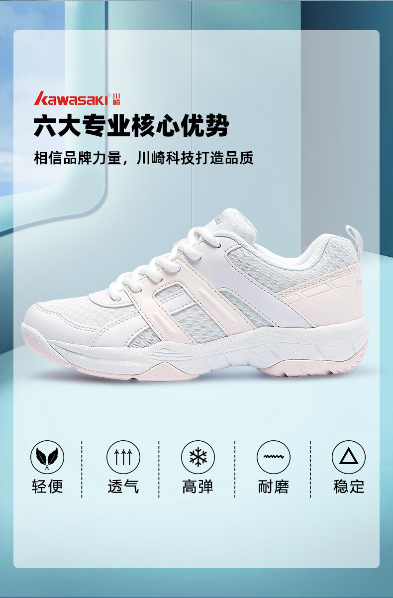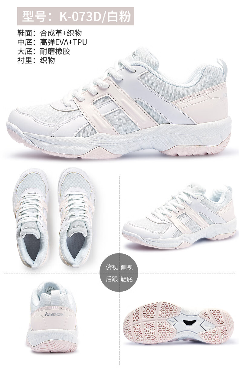 Kawasaki (KAWASAKI) badminton shoes for men and women, stable wear-resistant, shock-absorbing and breathable sports shoes, professional competition training badminton shoes K-073D, cost-effective white powder 37