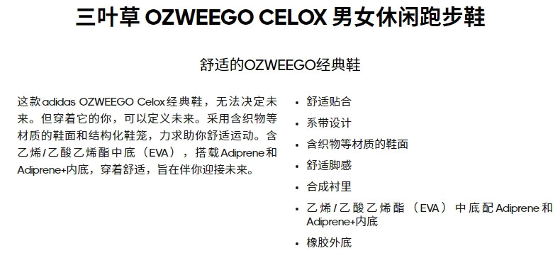 Adidas (adidas) clover men's and women's shoes OZWEEGO CELOX casual shoes GZ5230 black 42