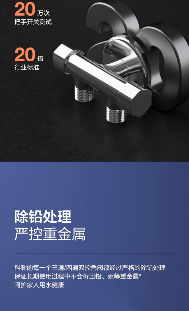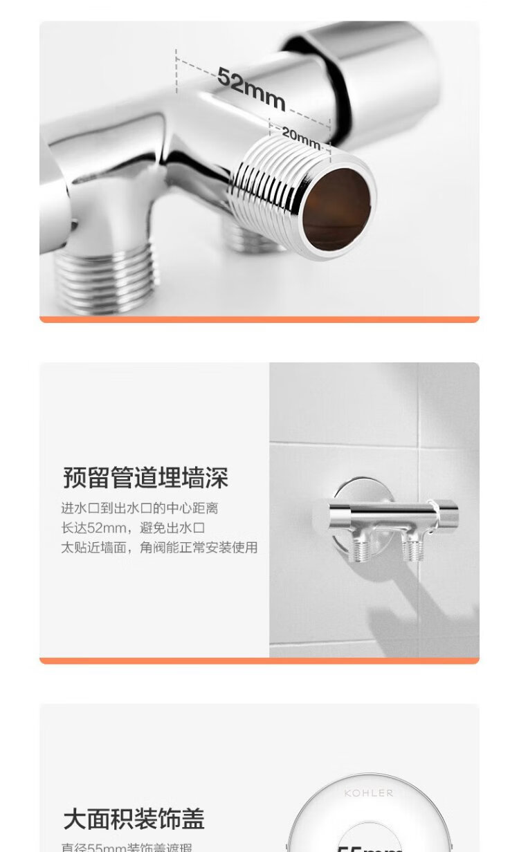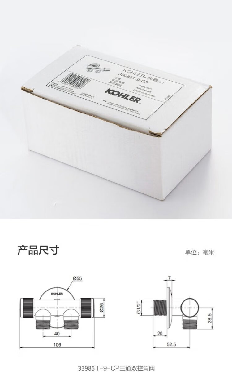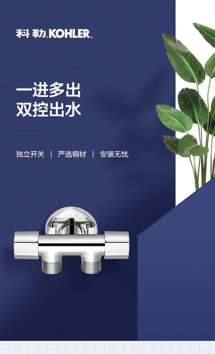 Kohler (KOHLER) three-way angle valve hot and cold water valve two-way water outlet adapter copper alloy K-33985T-9-CP universal 4 points