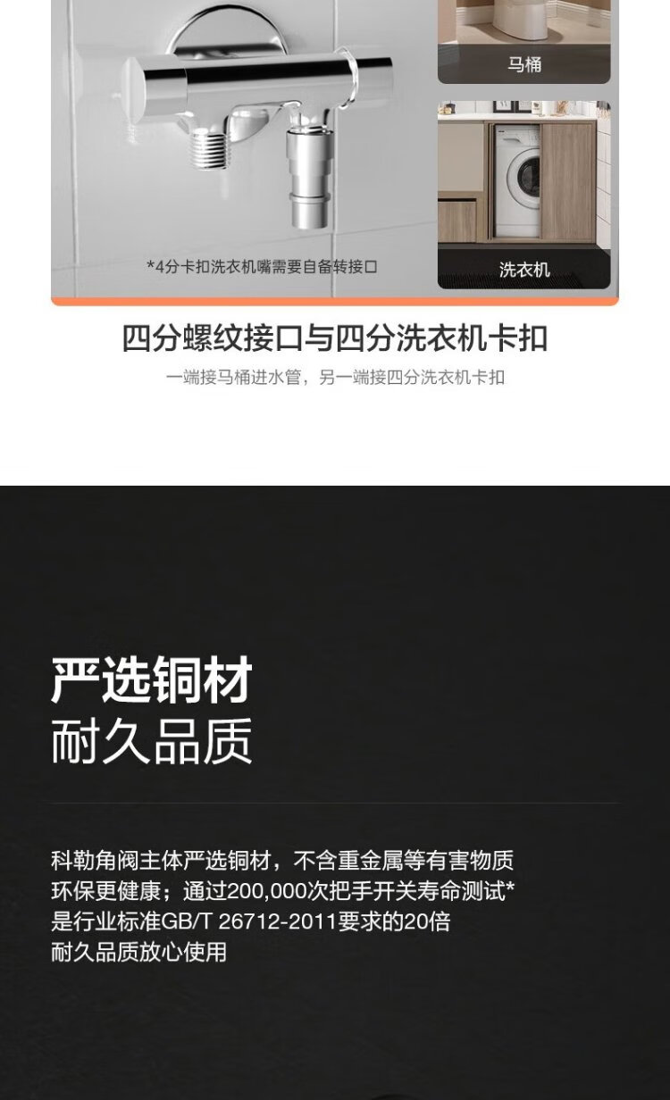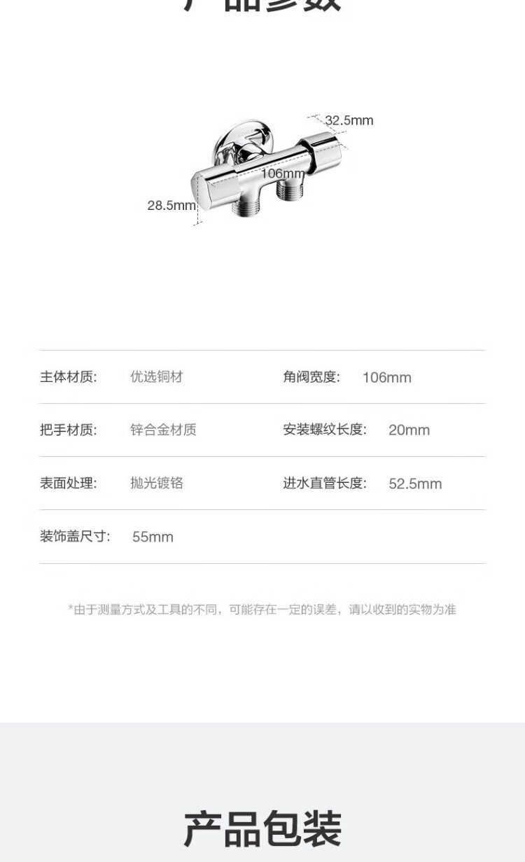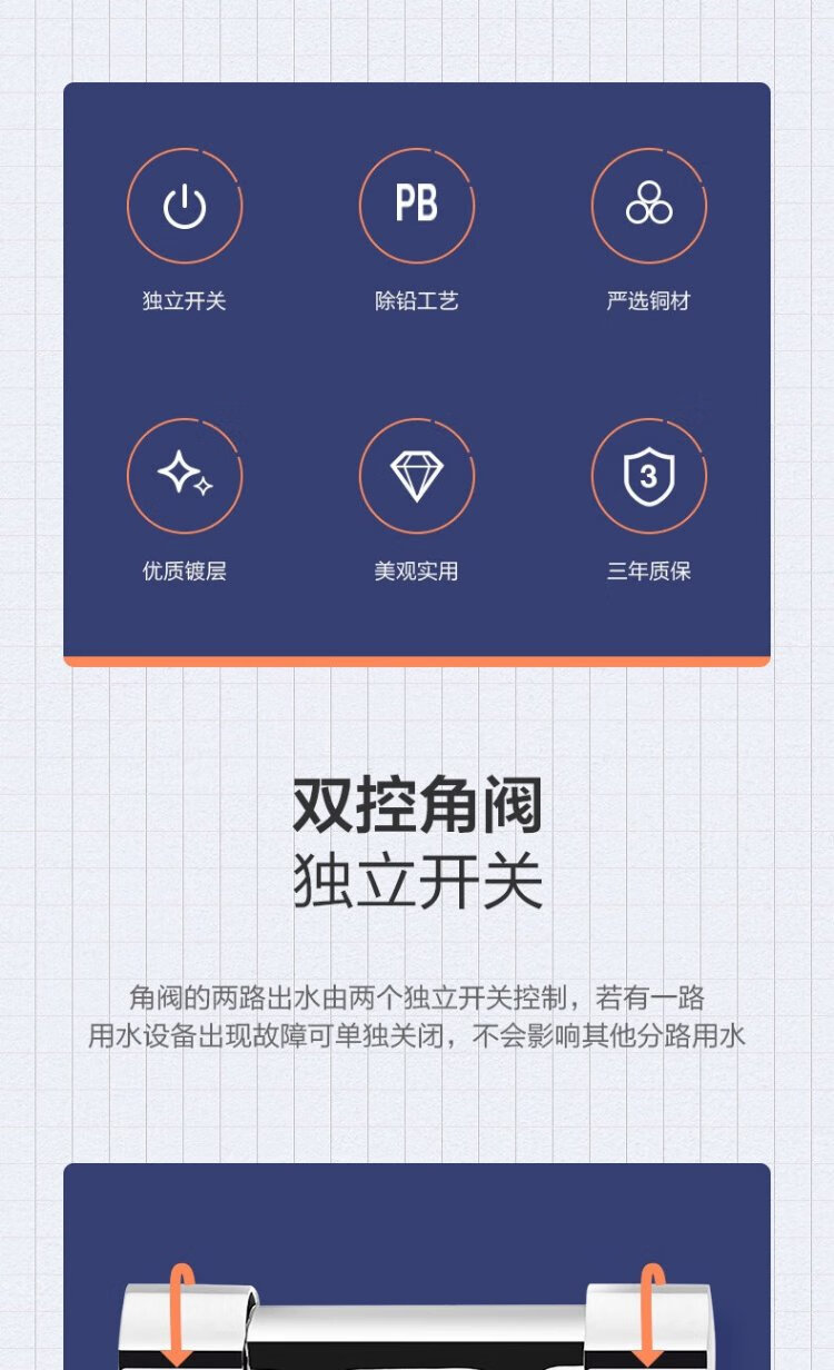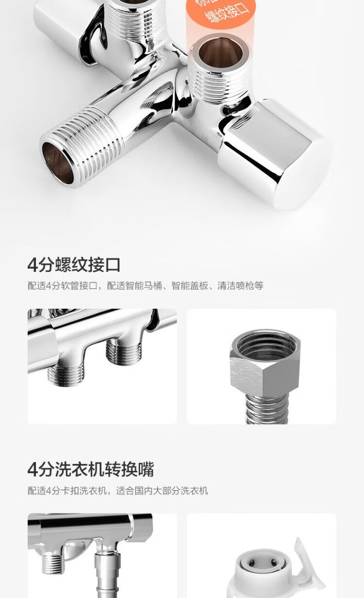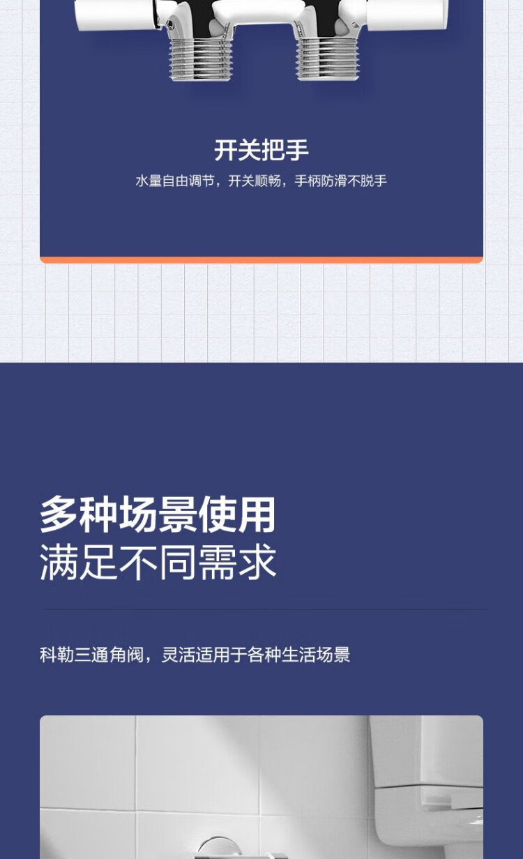 Kohler (KOHLER) three-way angle valve hot and cold water valve two-way water outlet adapter copper alloy K-33985T-9-CP universal 4 points