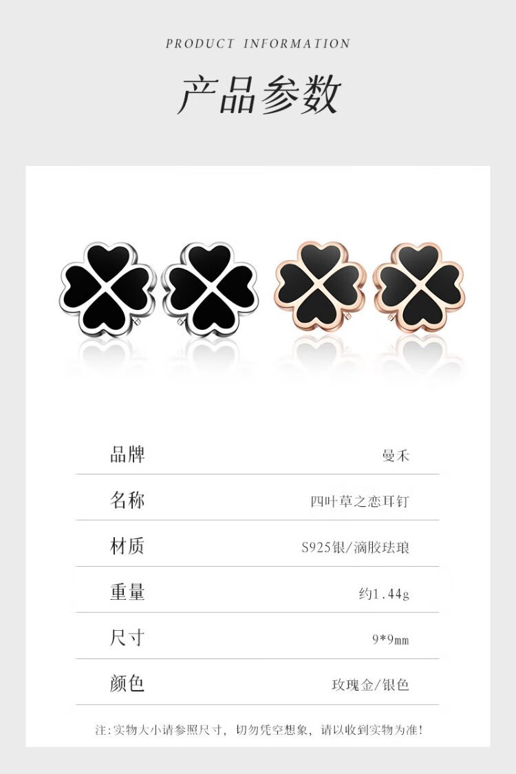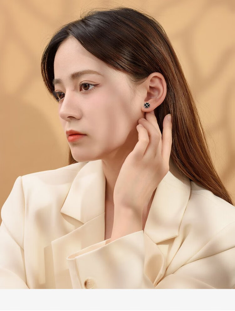 MANHE S925 Silver Four-leaf Clover Earrings Women's Earrings Women's 2025 New Earrings Wife's Birthday Gift for Girlfriends