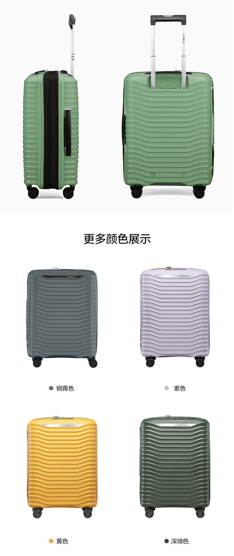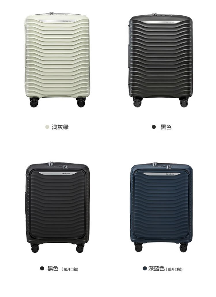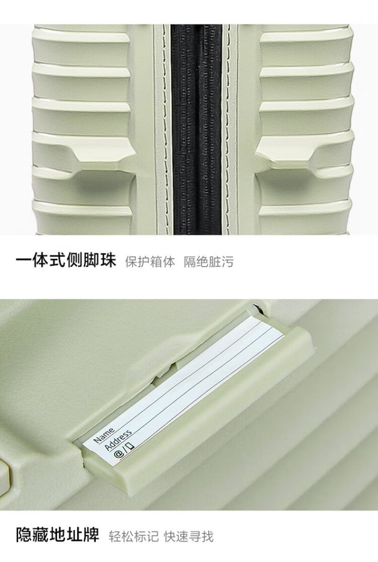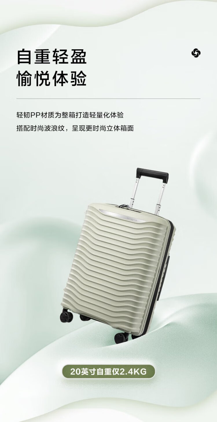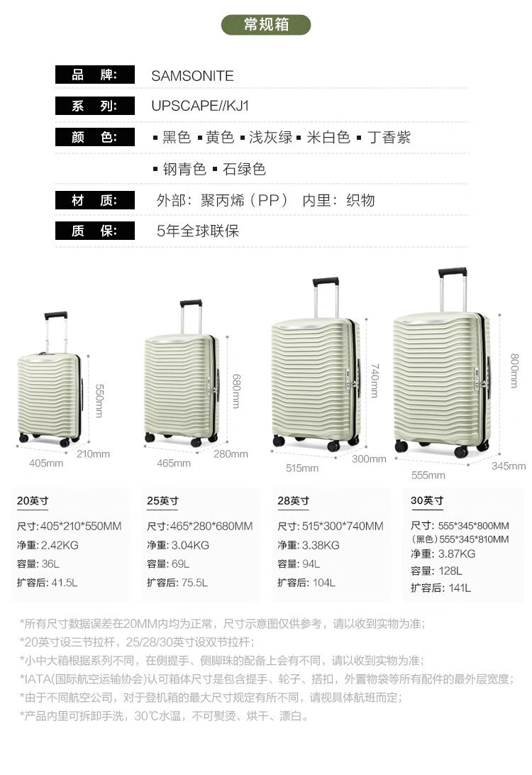 Samsonite suitcase 20-inch simple large wave box boarding trolley suitcase KJ1 light gray green password box