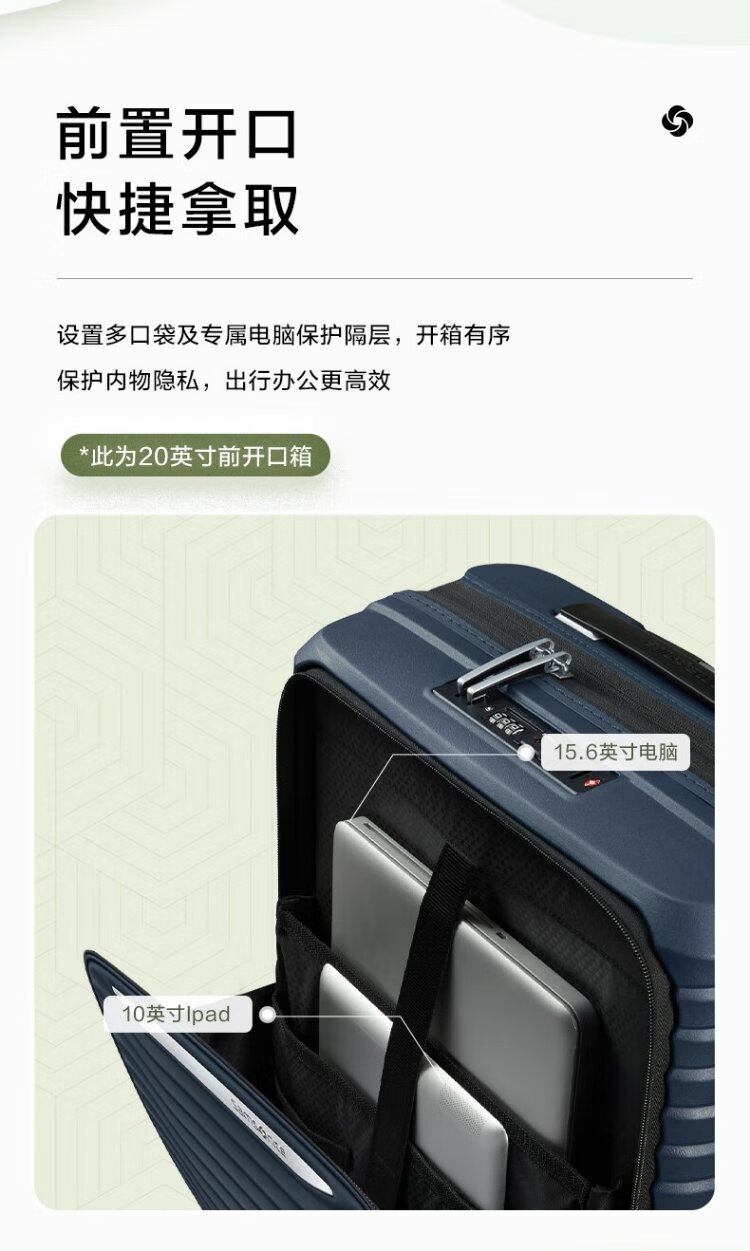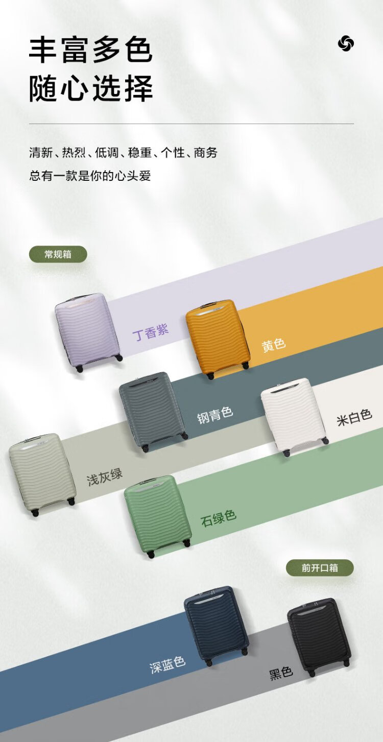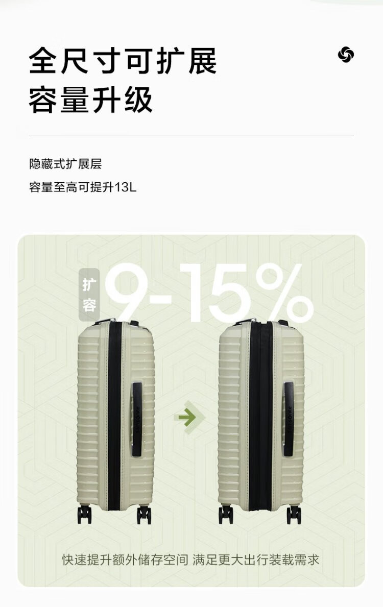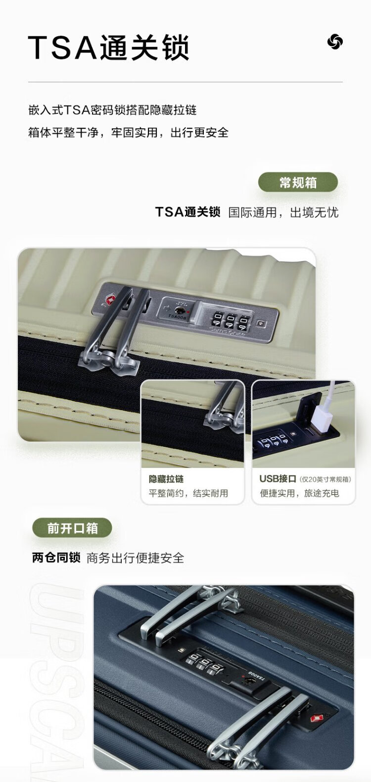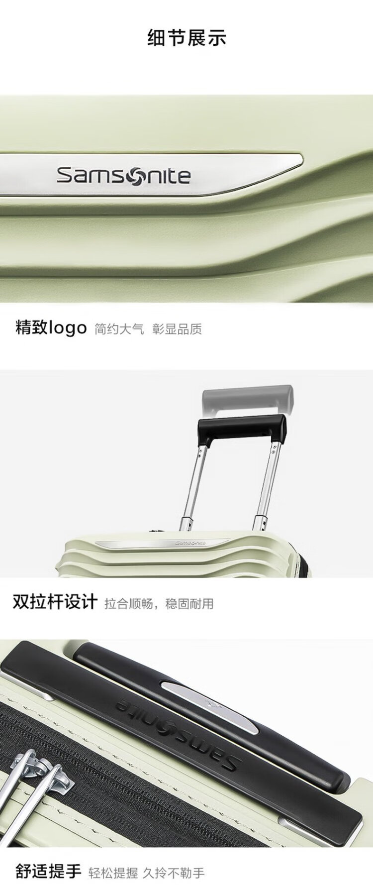 Samsonite suitcase 20-inch simple large wave box boarding trolley suitcase KJ1 light gray green password box