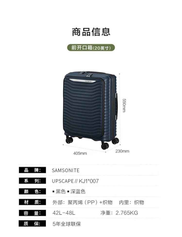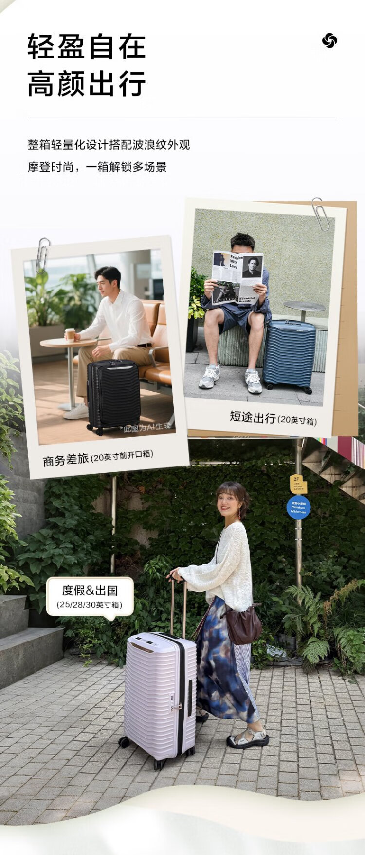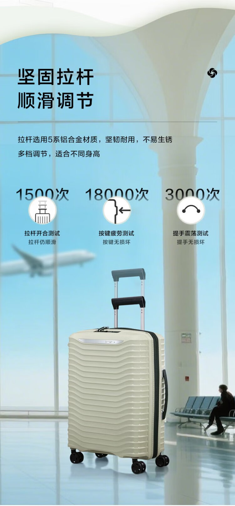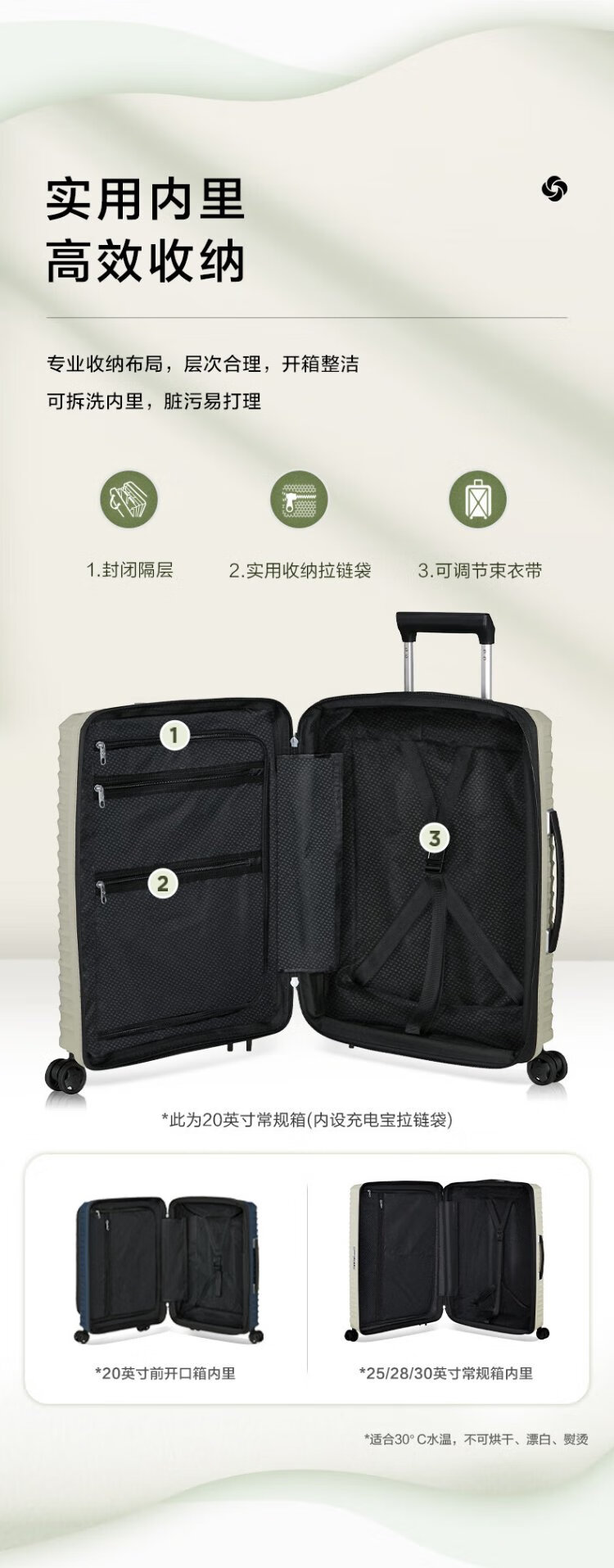 Samsonite suitcase 20-inch simple large wave box boarding trolley suitcase KJ1 light gray green password box