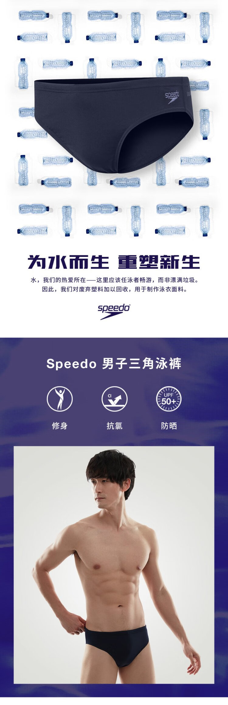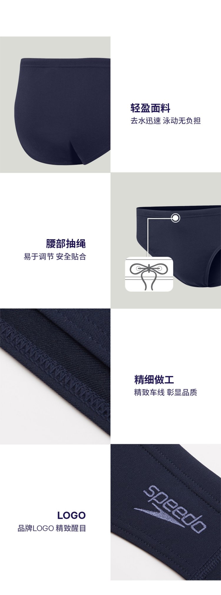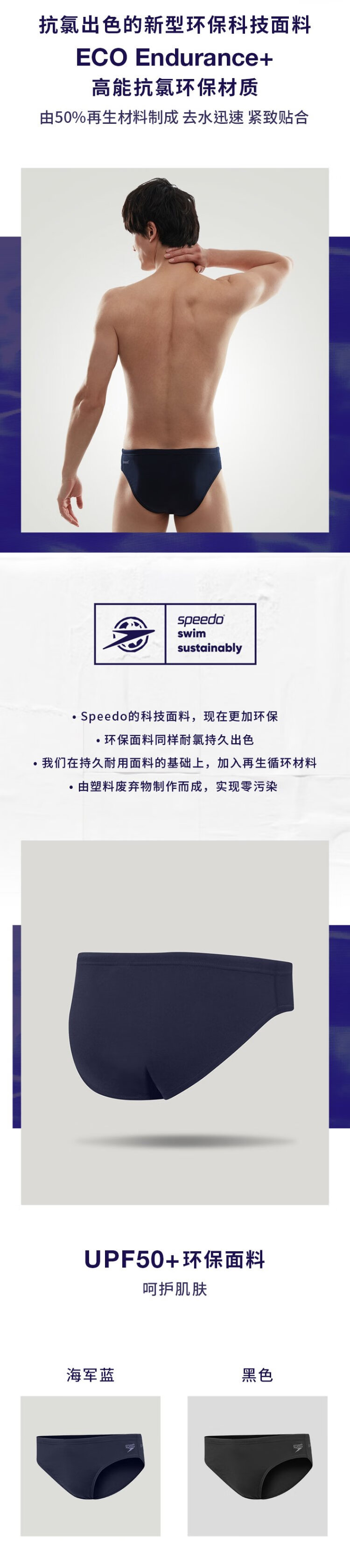 Speedo swimming trunks men's ECO environmental protection series lightweight anti-chlorine slimming solid color triangle swimming trunks dark blue 32