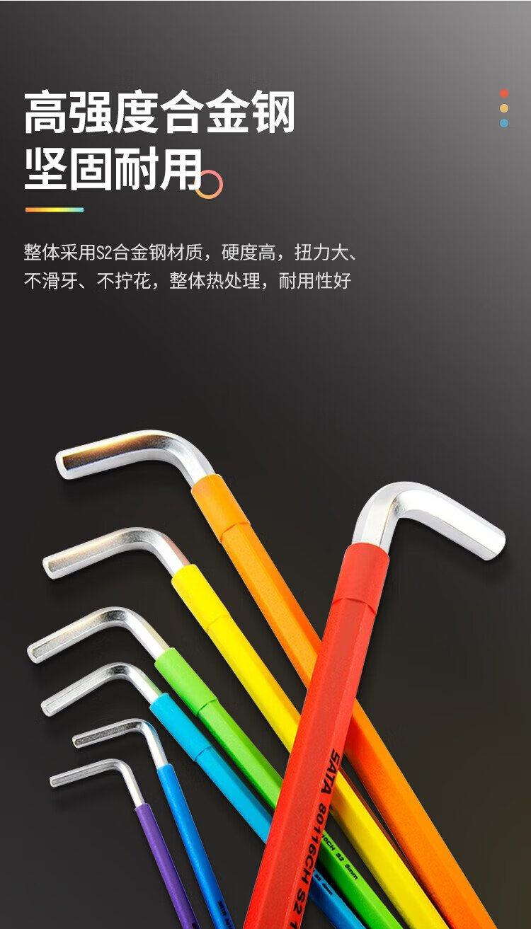 SATA 1.5-10MM Rainbow 9-piece special long ball head hexagonal wrench set Hexagonal screwdriver 09101CH