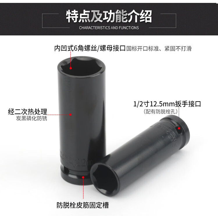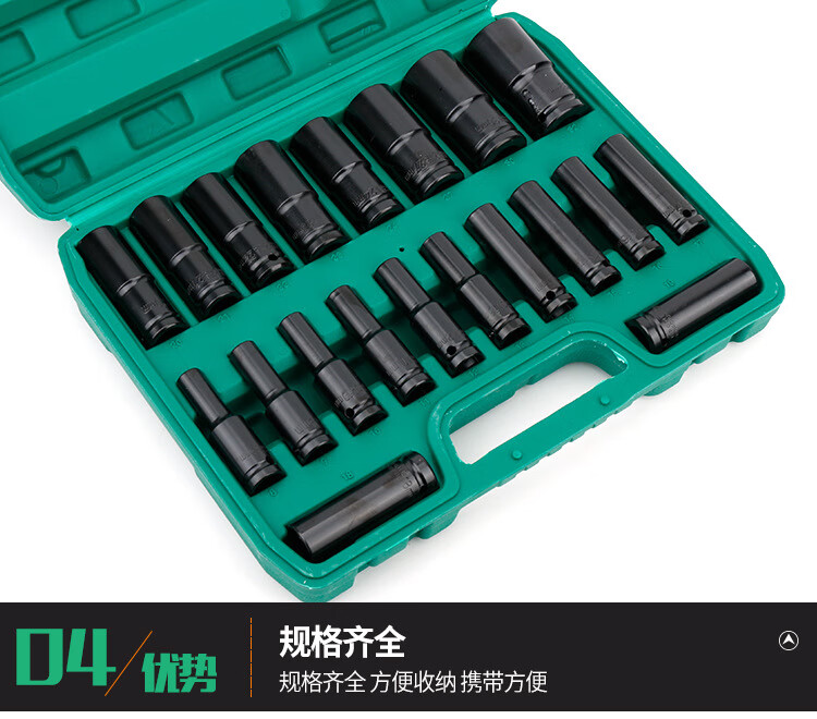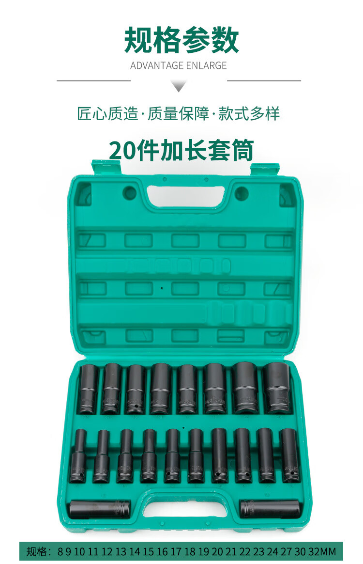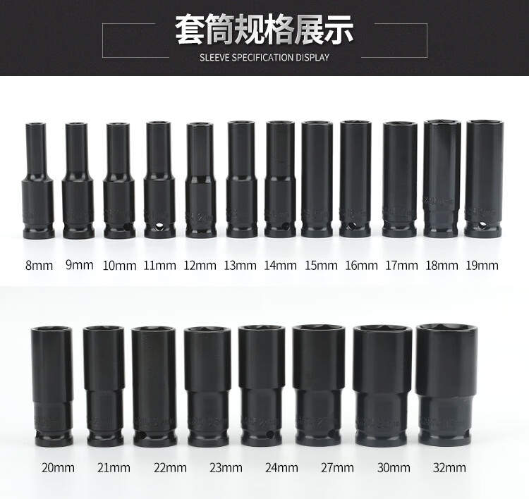 GeeLii Electric Wrench Socket Complete Set Extended Hexagonal Wind Cannon Socket Head 20-piece Set 8-32mm 81002