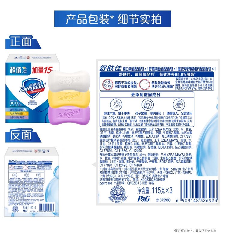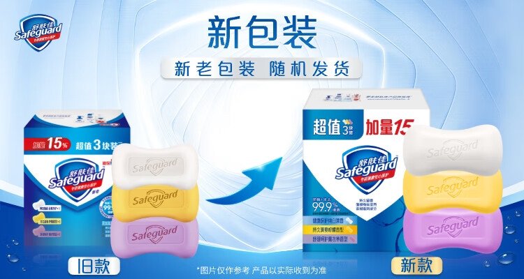Safeguard JD.com Golden List Soap 3 Bars (Pure White + Lemon + Lavender) 99.9% Sterilization New and Old Packaging Randomly