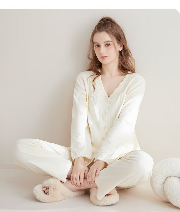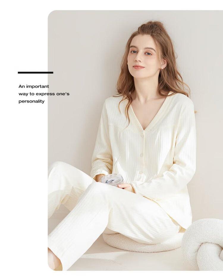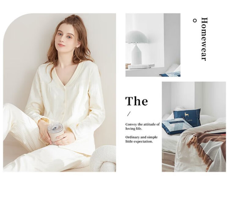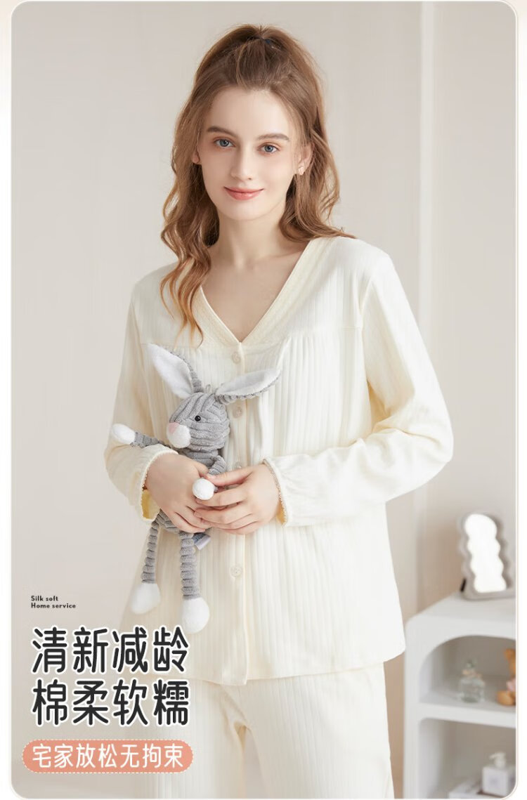 Catman women's pajamas for women in autumn and winter 100% cotton comfortable cardigan long-sleeved trousers can be worn outside home clothes 25 years new product