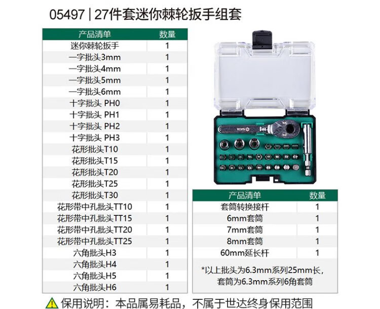SATA 27-piece mini ratchet wrench set 05497
