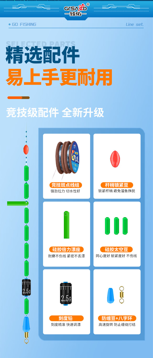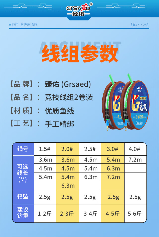Zhenyou (Grsaed) fishing line main line set purely hand-tied finished Taiwan fishing blue spot line set fishing line 2 pieces 6.3 meters 3.0#