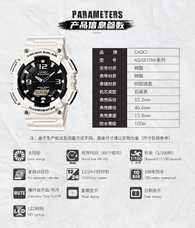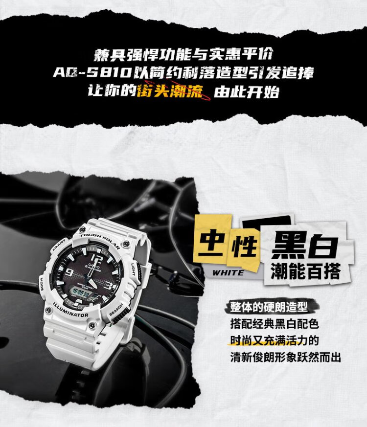 CASIO Volkswagen Pointer Solar Waterproof Digital Dual Display Luminous Sports and Leisure Men's Watch AQ-S810WC-7AVDF