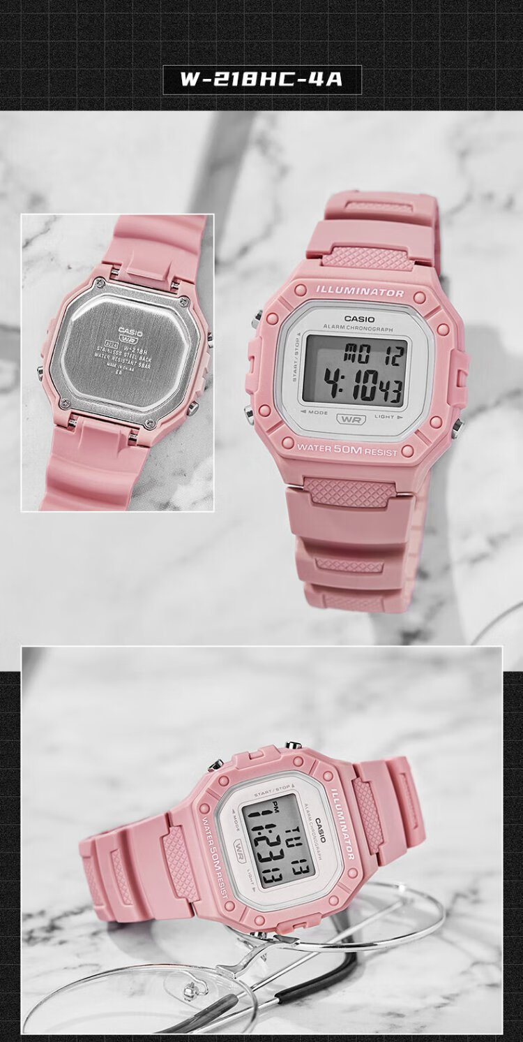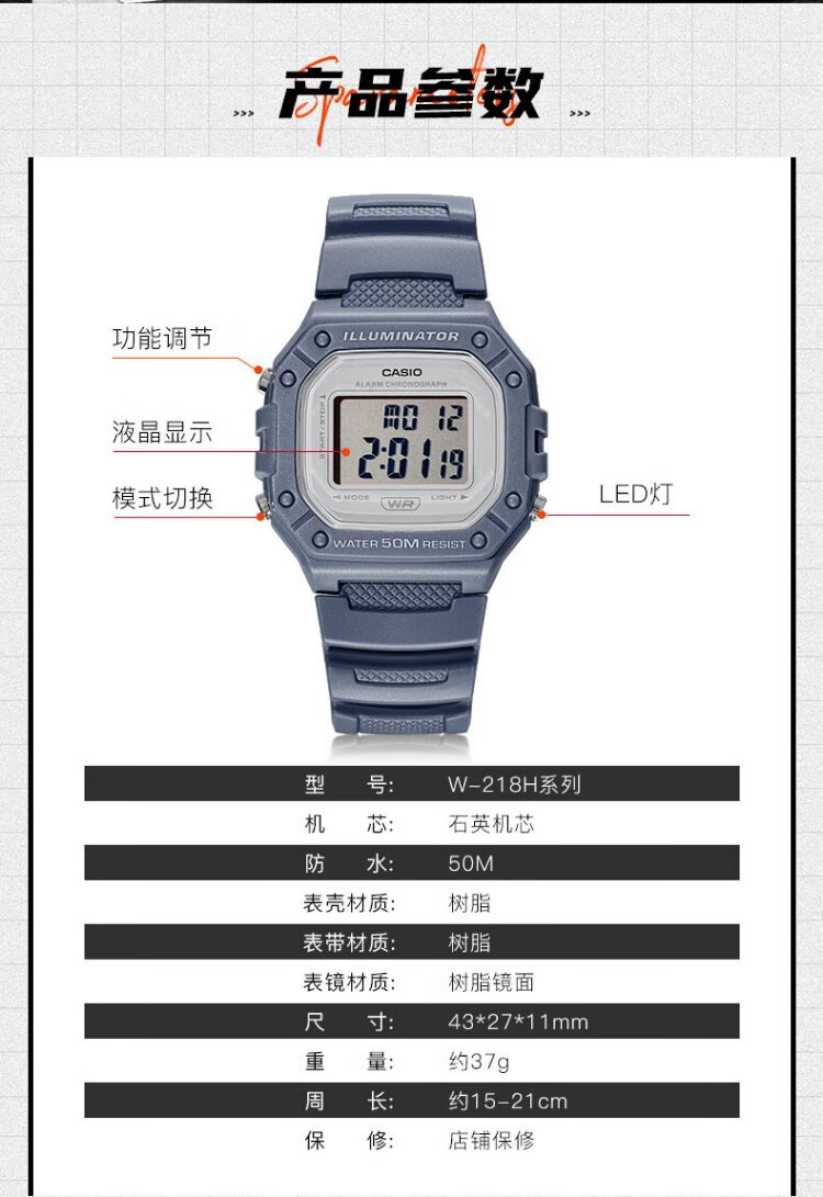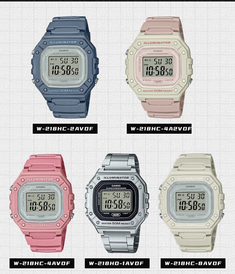 Casio (CASIO) retro waterproof student electronic watch for men and women couples luminous small square watch W-218HD-1AVDF