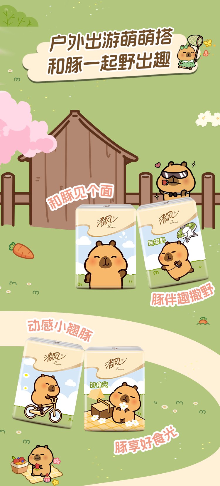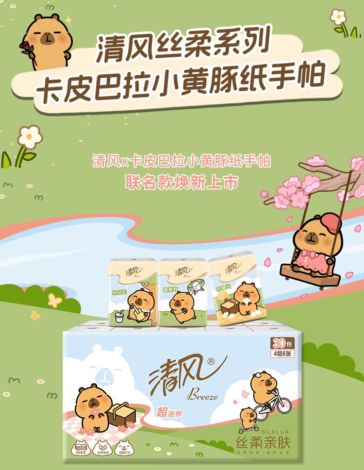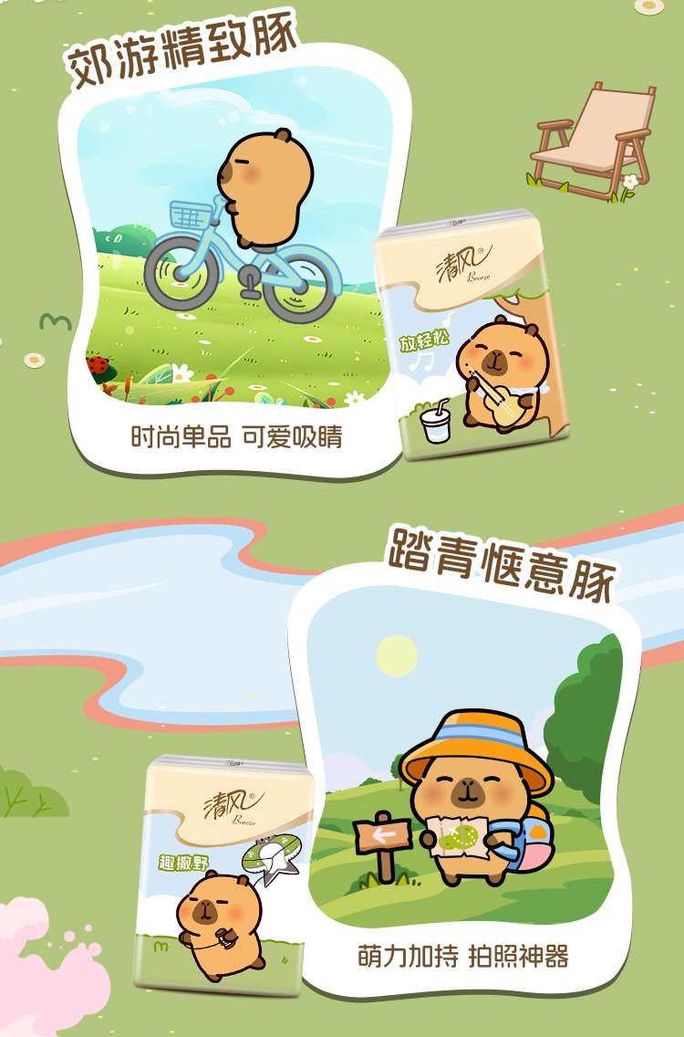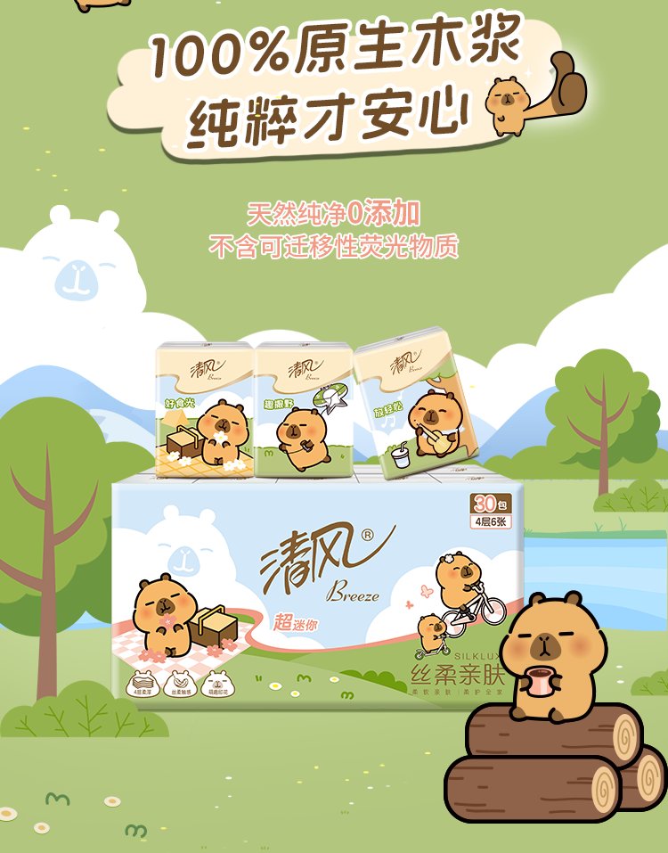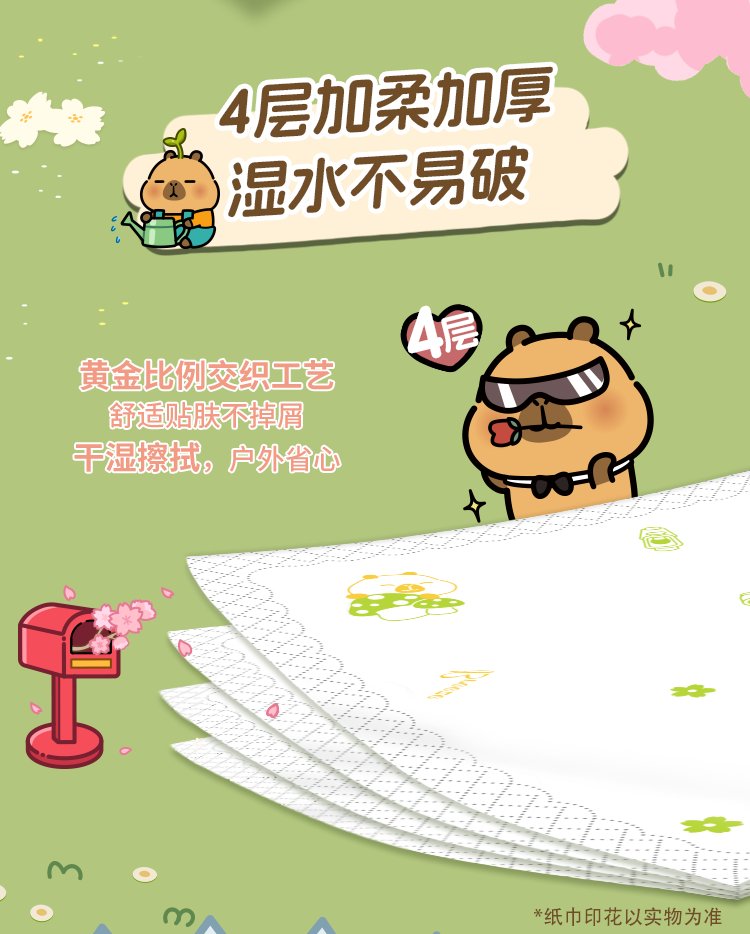Qingfeng Li Yunrui's same style Kapibara handkerchief paper 4 layers 6 sheets * 30 packs, not easy to break when wet