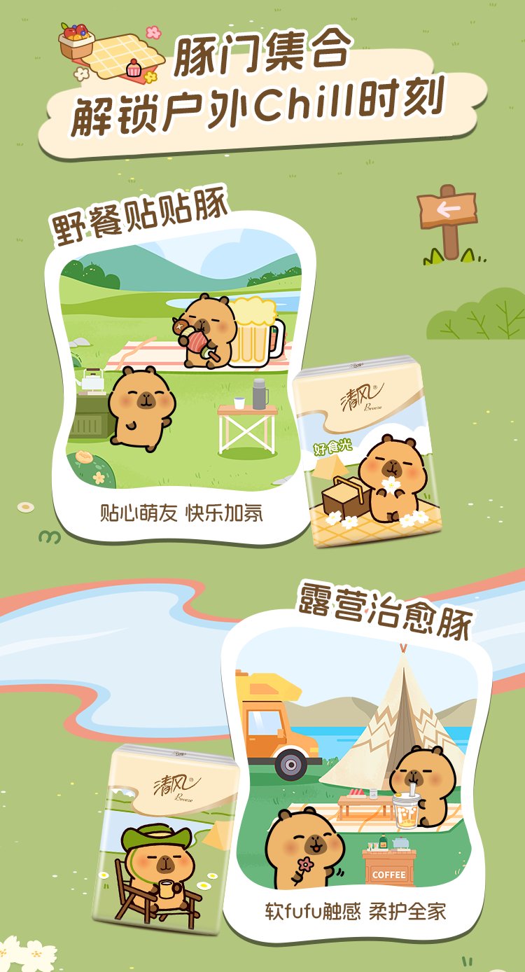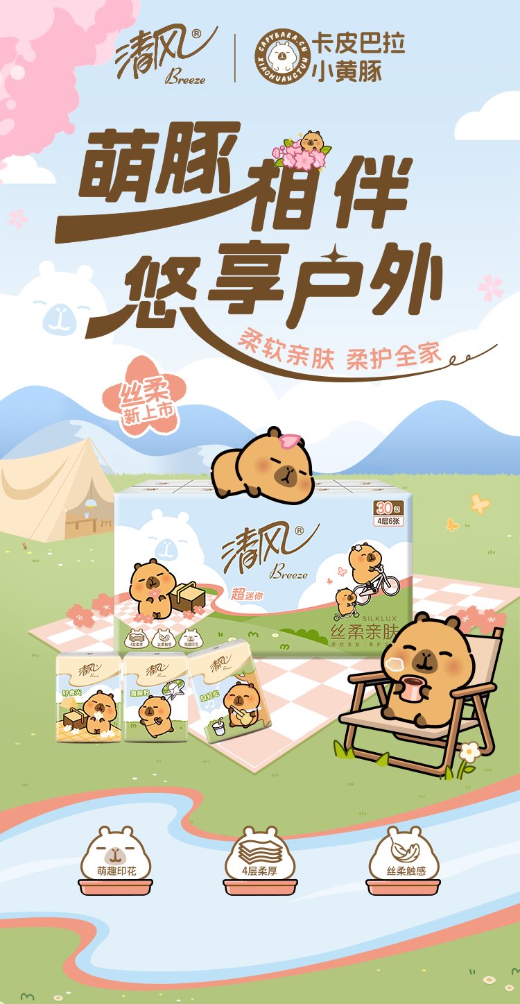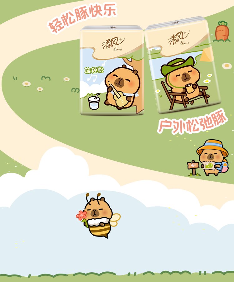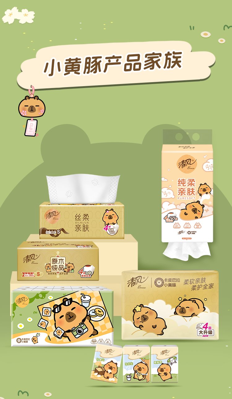 Qingfeng Li Yunrui's same style Kapibara handkerchief paper 4 layers 6 sheets * 30 packs, not easy to break when wet