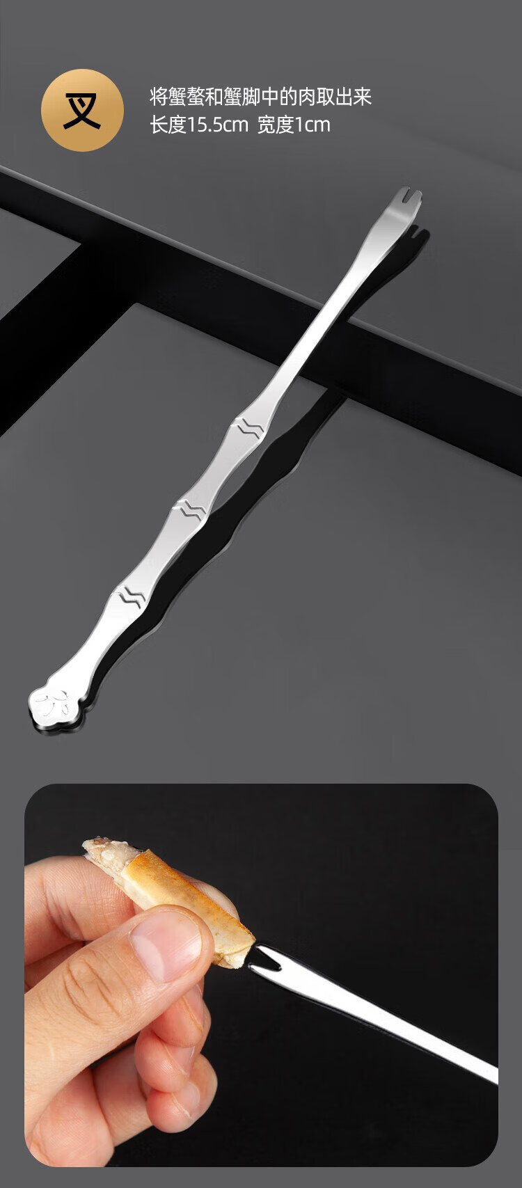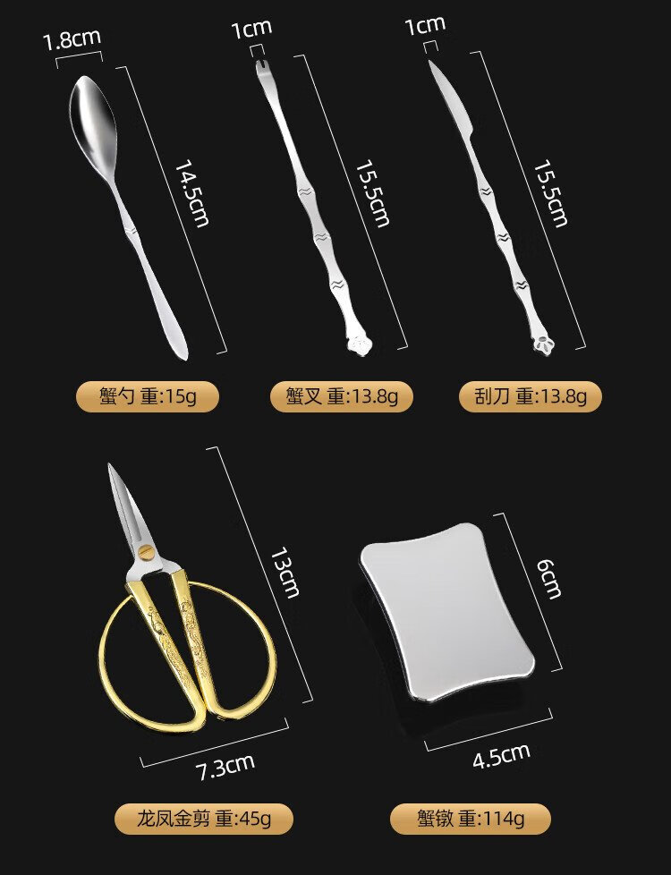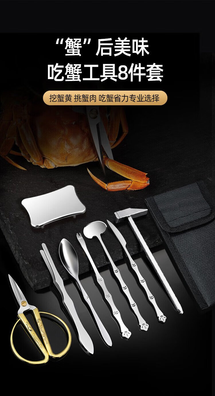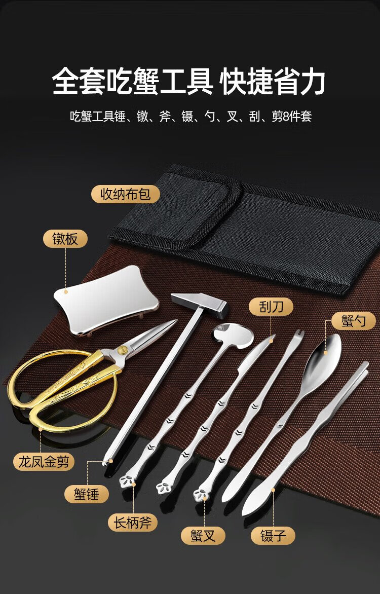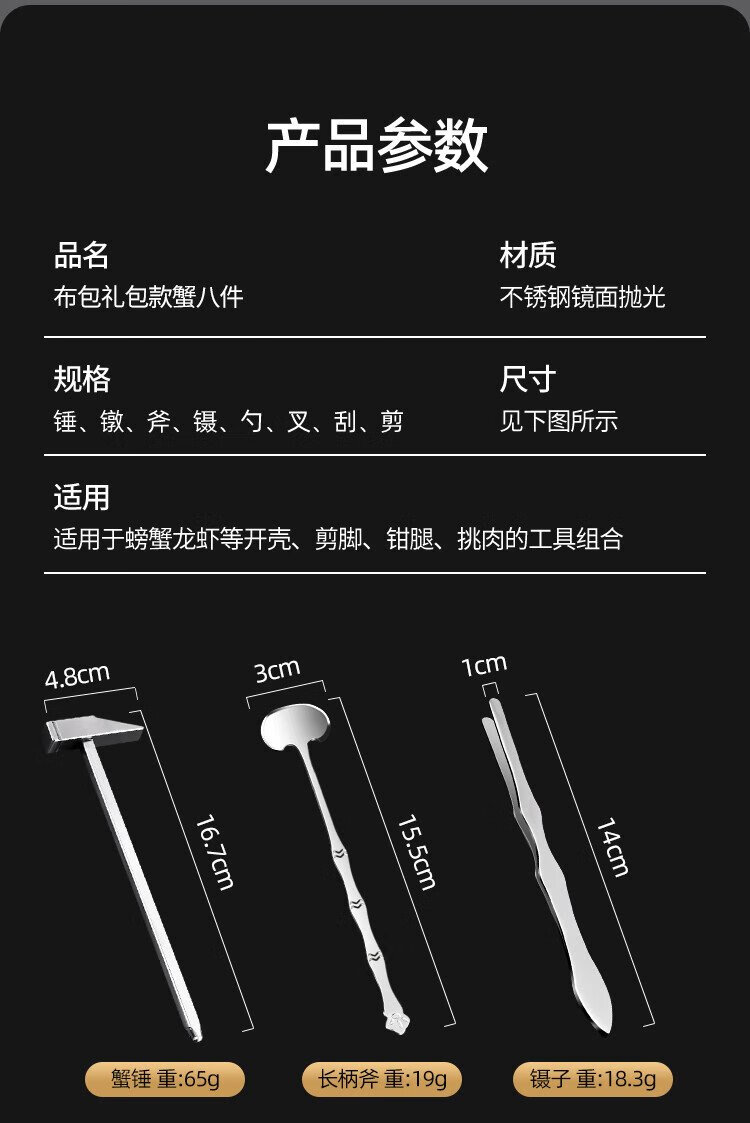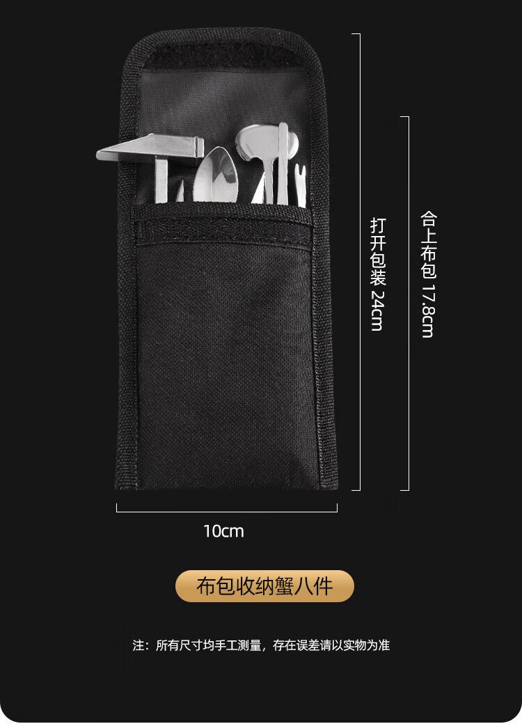 European Oak (OAK) stainless steel crab eating tool crab eight-piece set stainless steel crab claw clamp crab needle crab opening tool hairy crab scissors tongs cloth bag gift bag C1045
