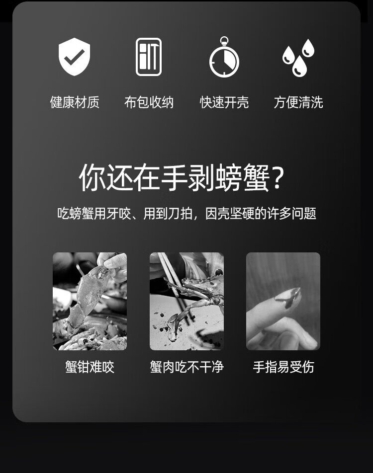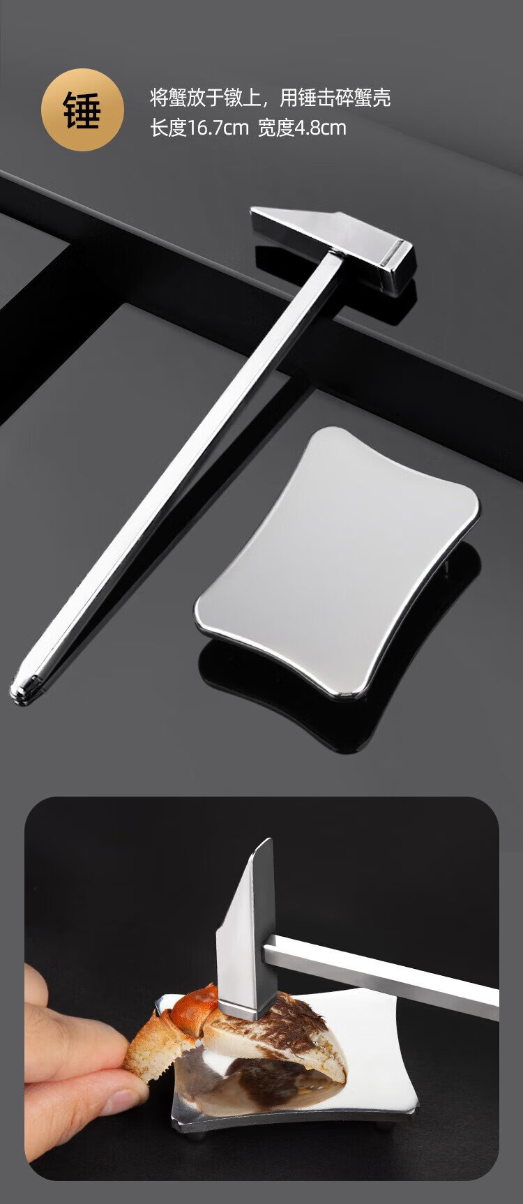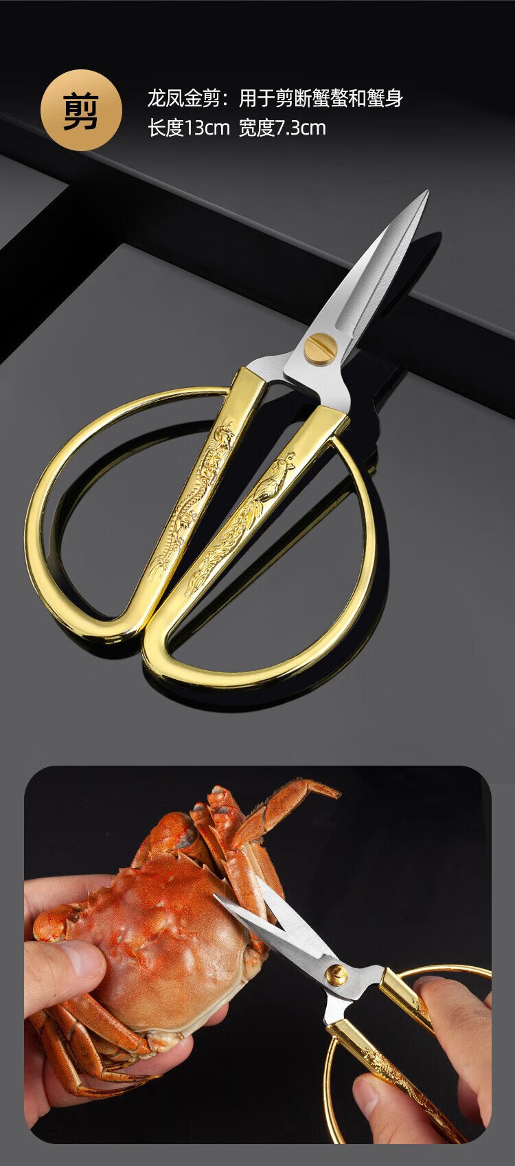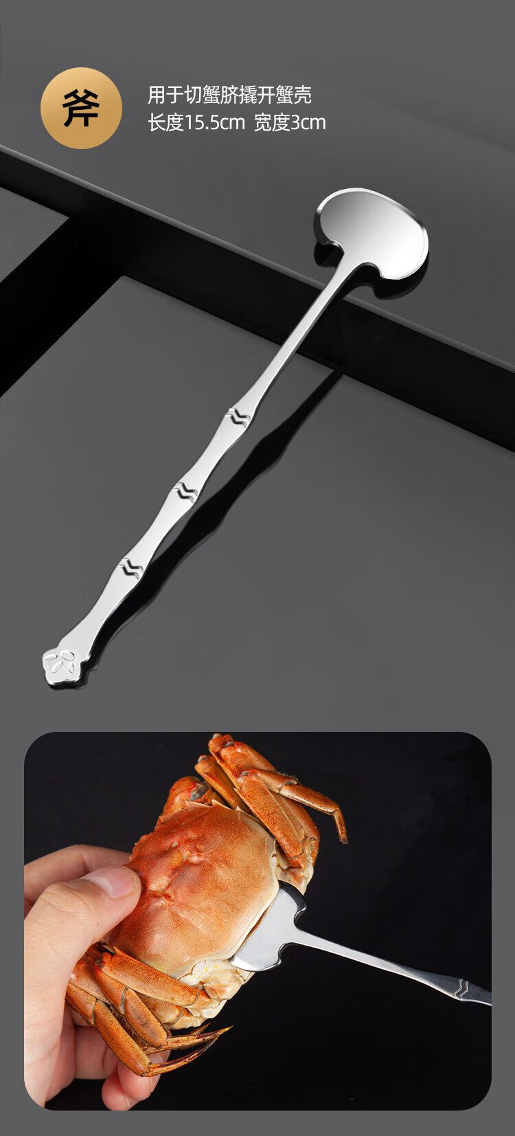 European Oak (OAK) stainless steel crab eating tool crab eight-piece set stainless steel crab claw clamp crab needle crab opening tool hairy crab scissors tongs cloth bag gift bag C1045