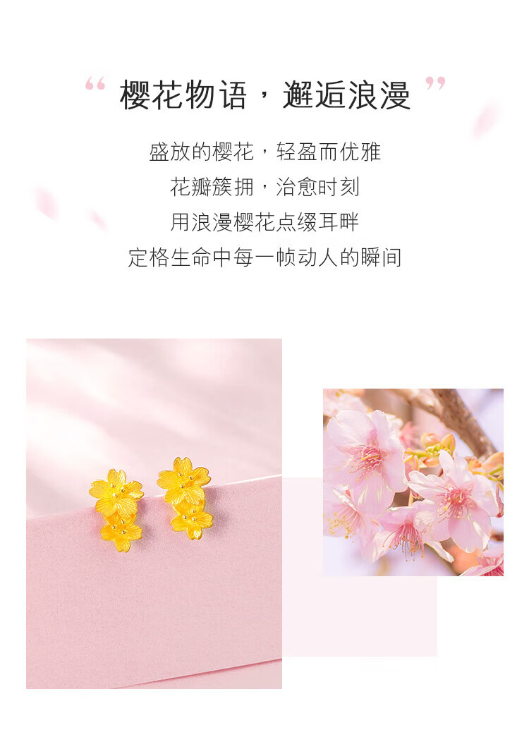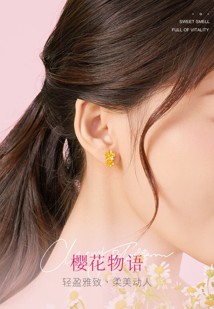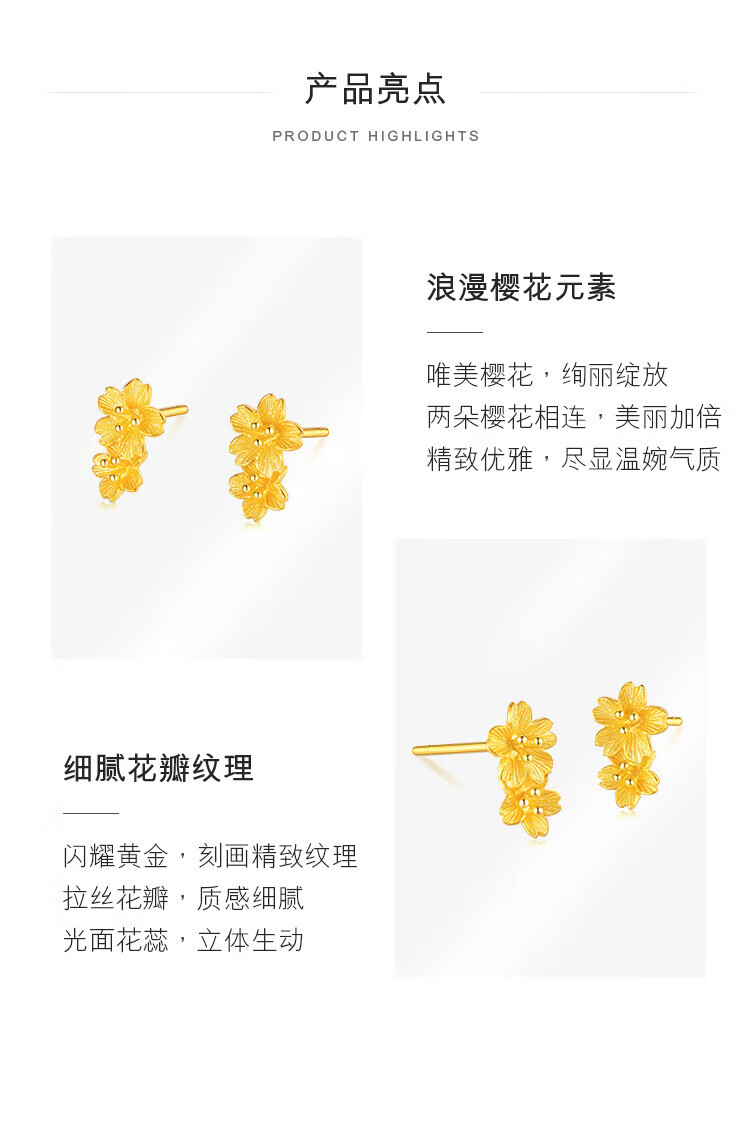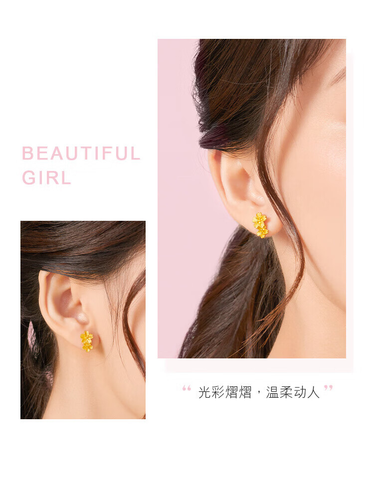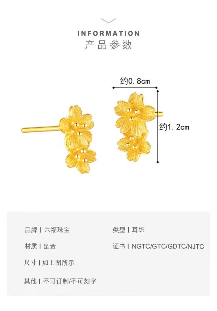 Lukfook Jewelry Pure Gold Cherry Blossom Gold Stud Earrings for Women Price L07TBGE0005 Approximately 2.03 grams