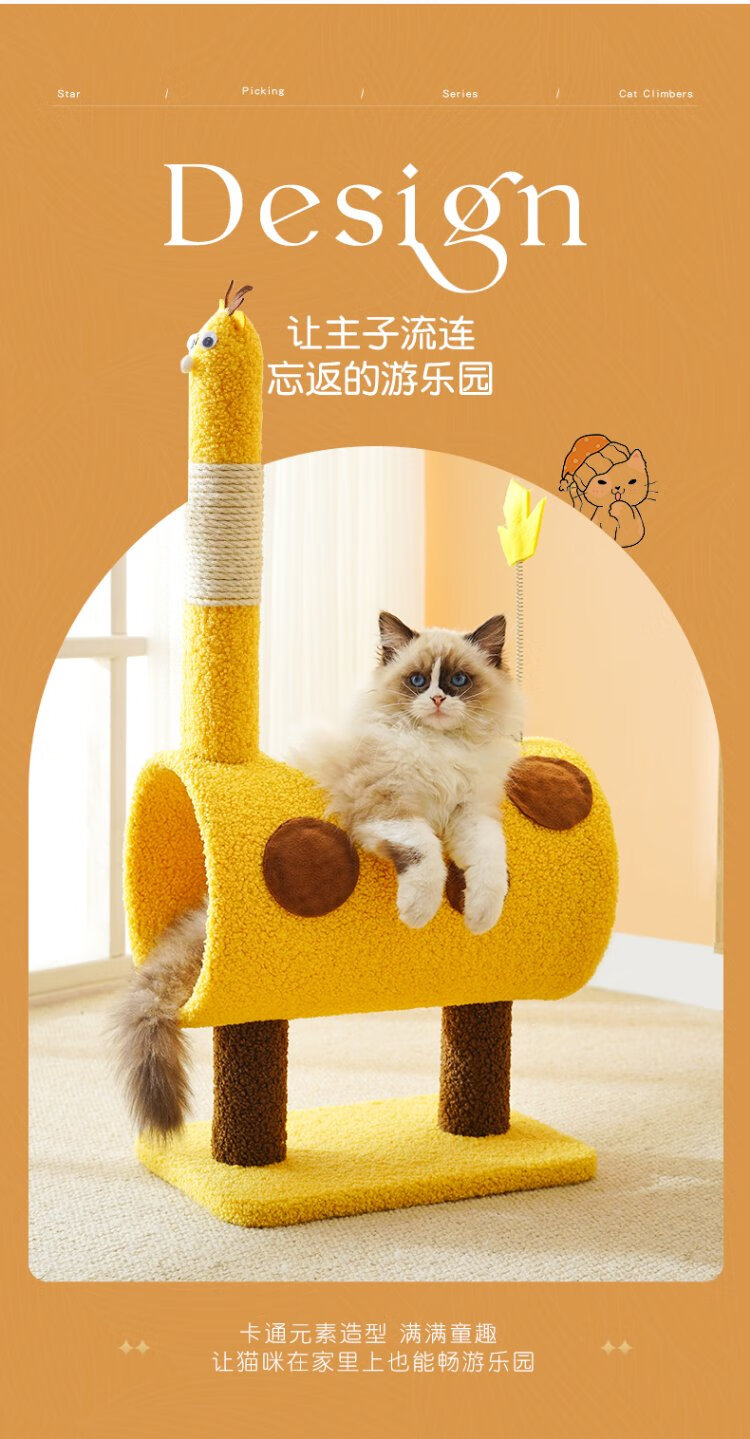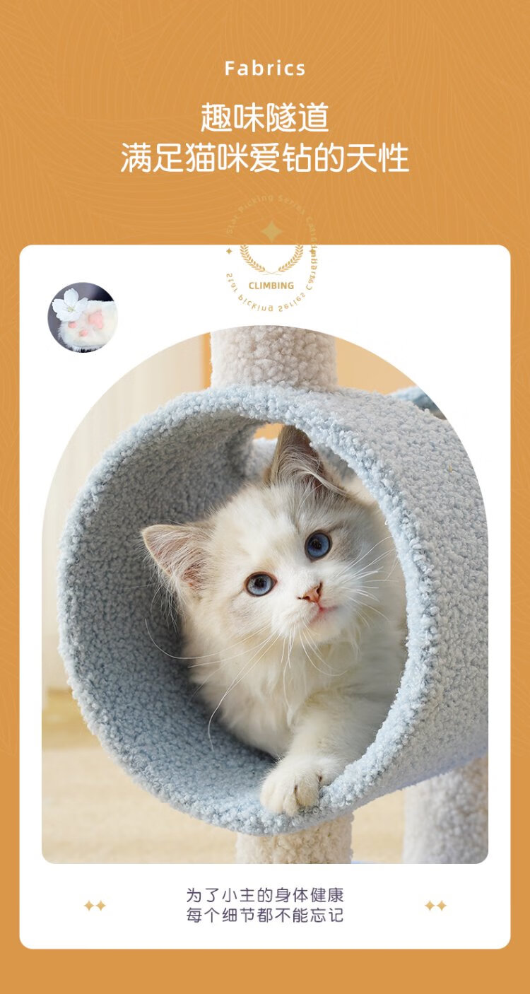 Fandu pet house cat climbing frame cat nest integrated cat jumping platform small yellow deer cat tunnel pet paradise cat toy