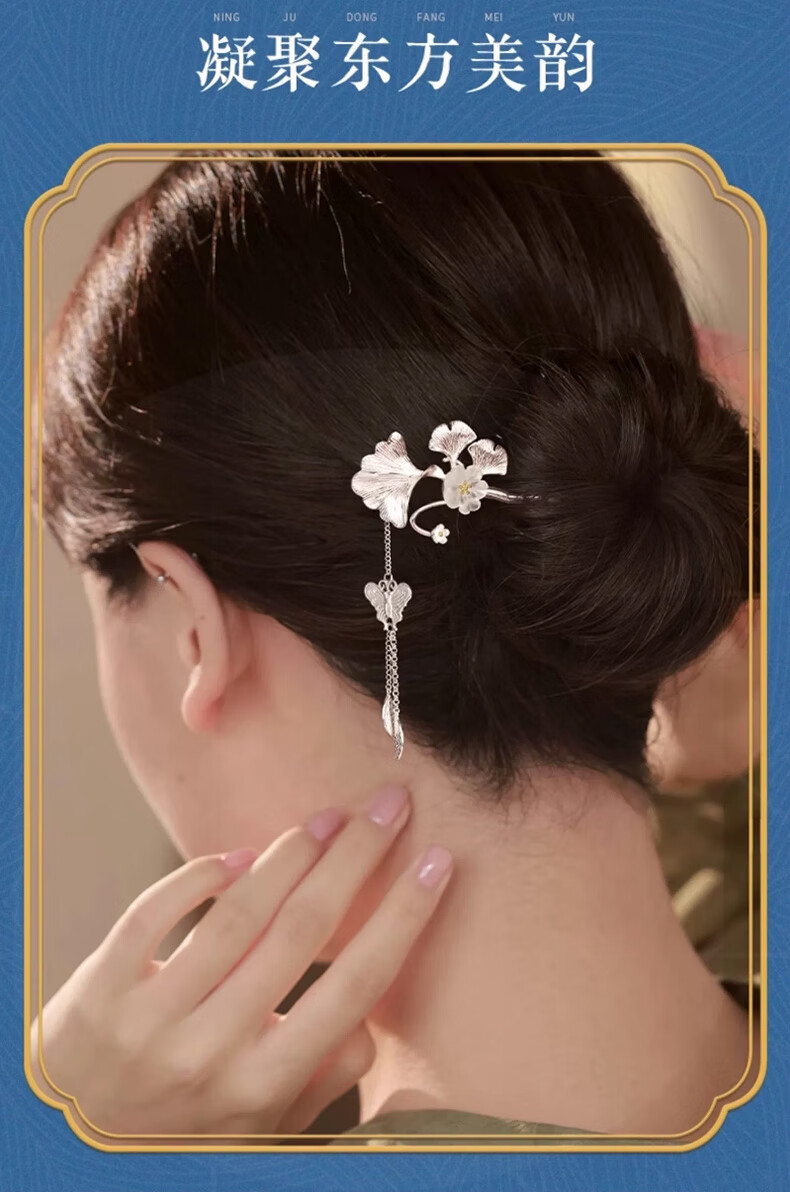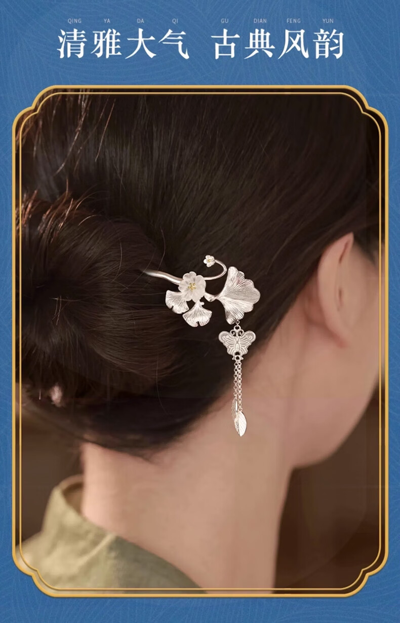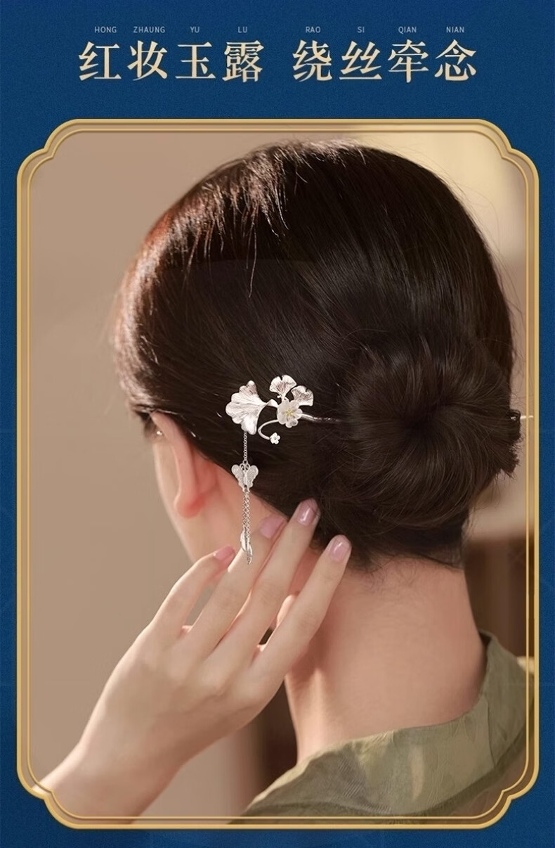 Crystal Ginkgo Leaf Hairpin, Ancient Style Step-Shaping Tassel Hairpin, New Chinese Style Hairpin, Women's High-end Updo Hair Ornament for Girlfriend