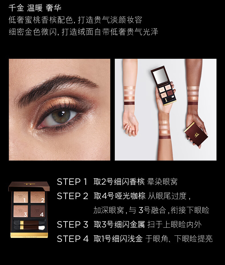 TOM FORD Magic Four-Color TF Eyeshadow Palette 20 Glazed Peach Palette 10g Cosmetics Birthday Gift for Girlfriend
