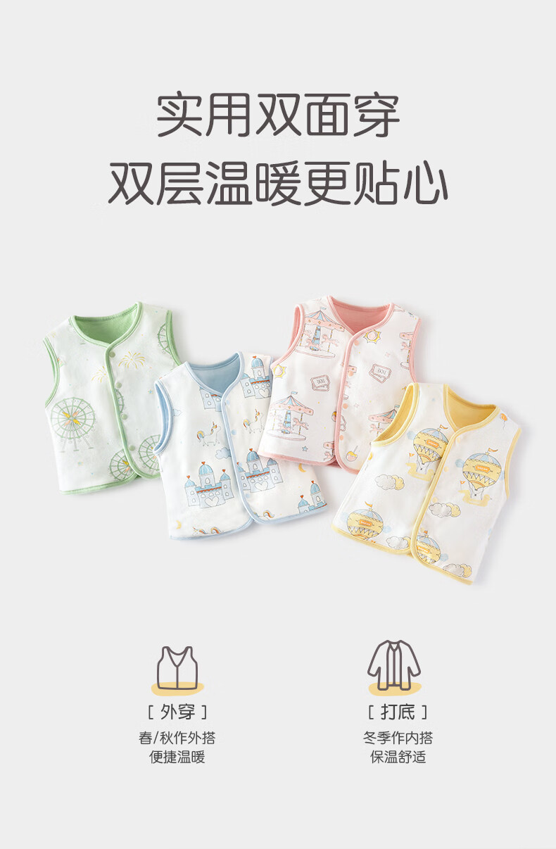 Babylove baby vest spring and autumn pure cotton reversible baby cute little vest vest warm vest top