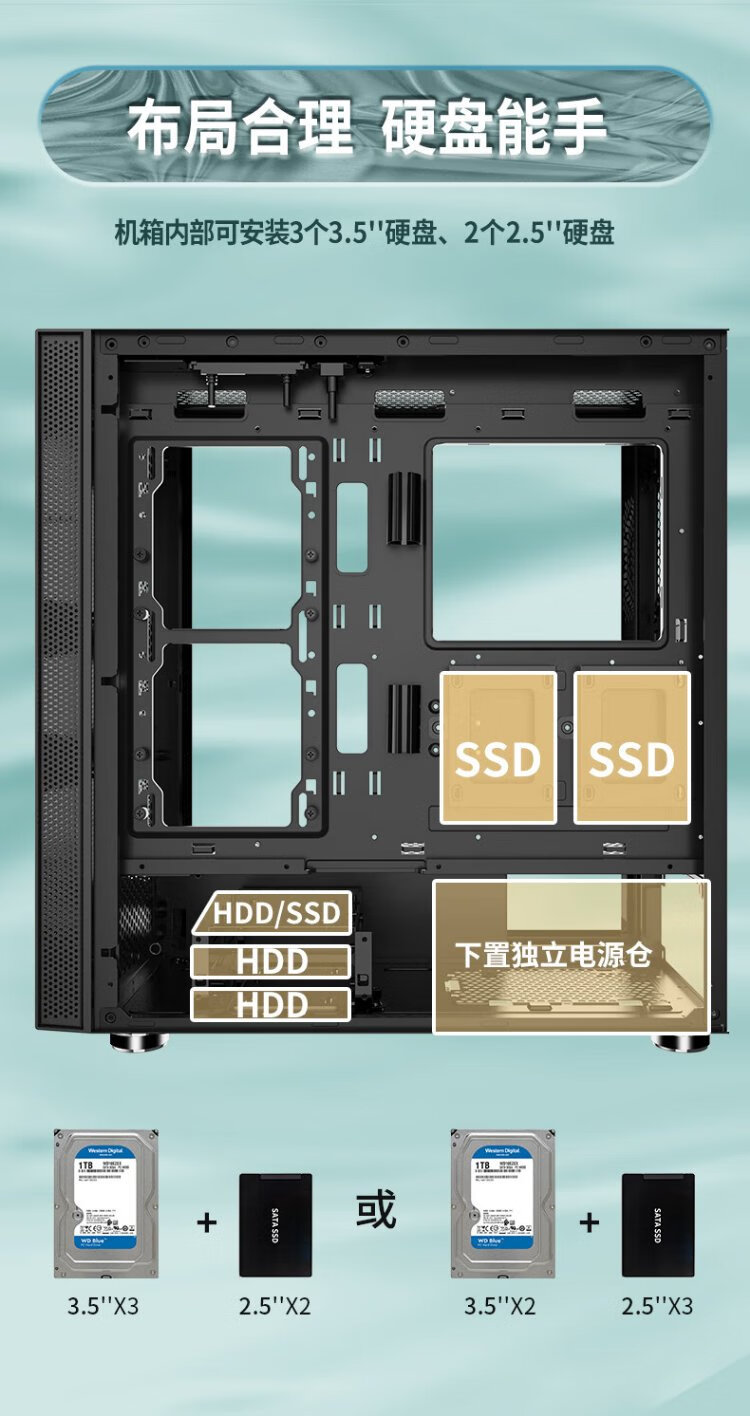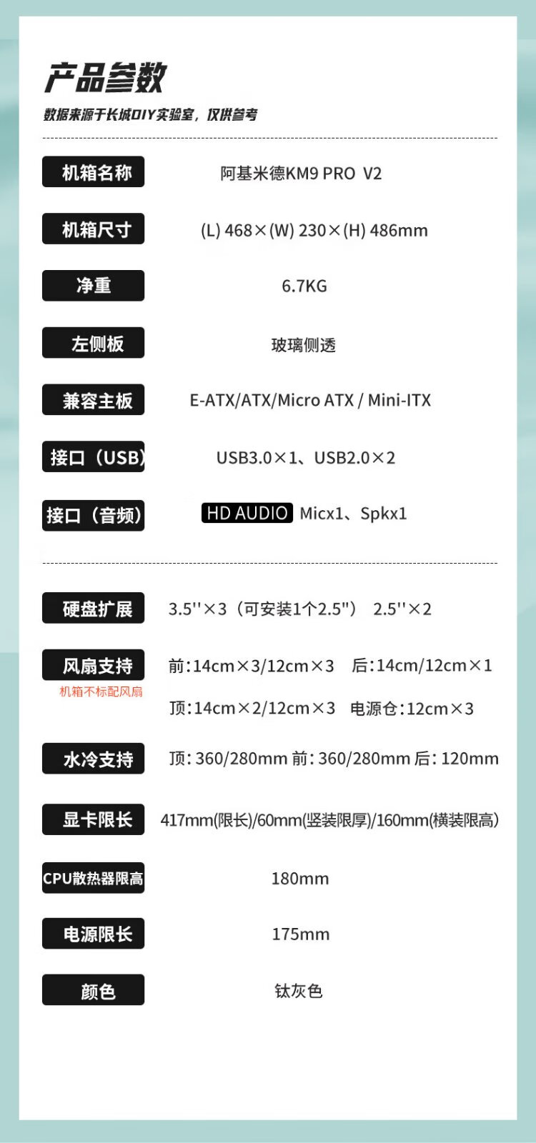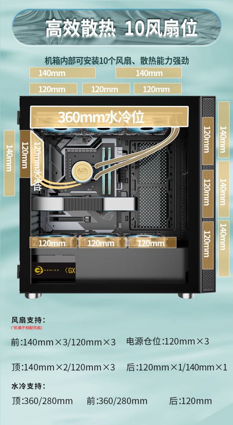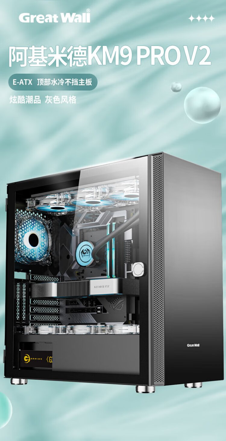 Great Wall Archimedes 9 PRO V2 gray computer case (360 water cooling/magnetic glass flap/0.8mm thick side panel/5 hard drive slots/10 fan slots/5090 graphics card)
