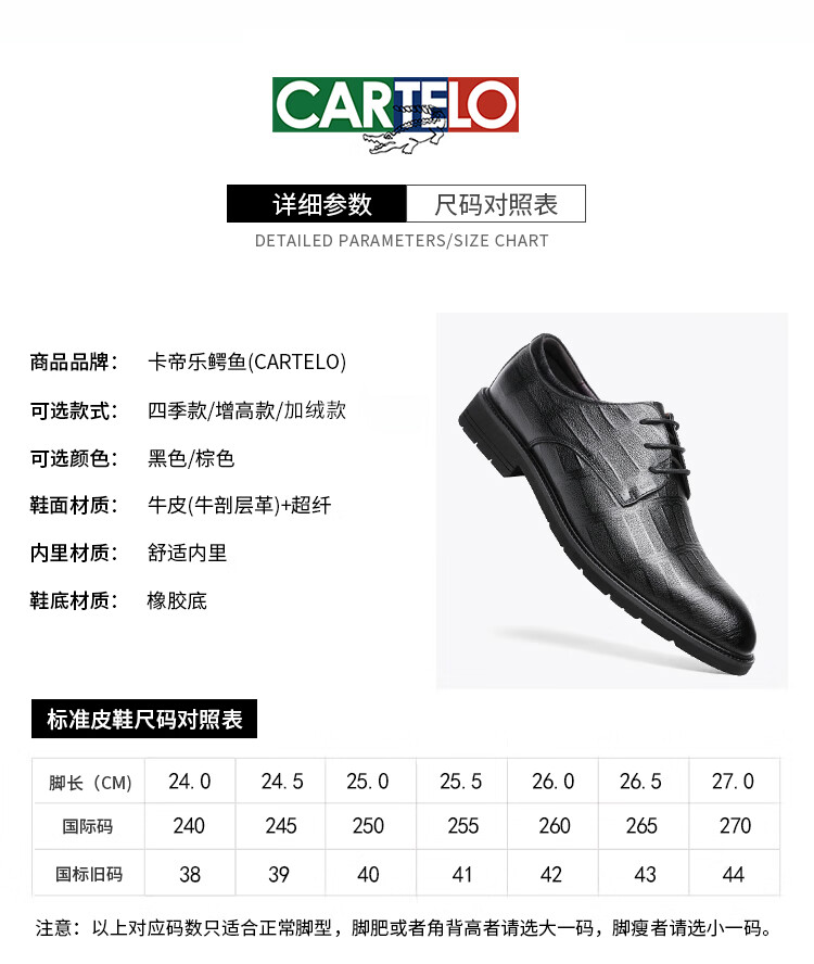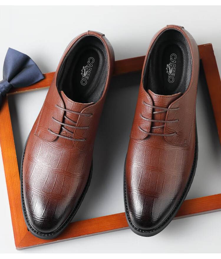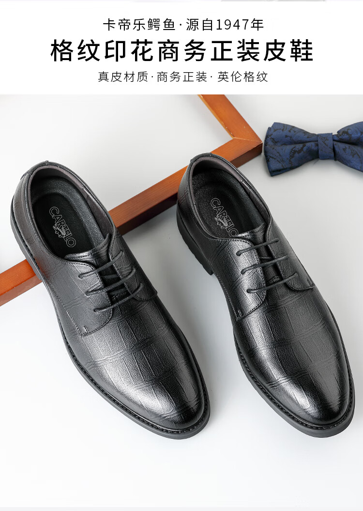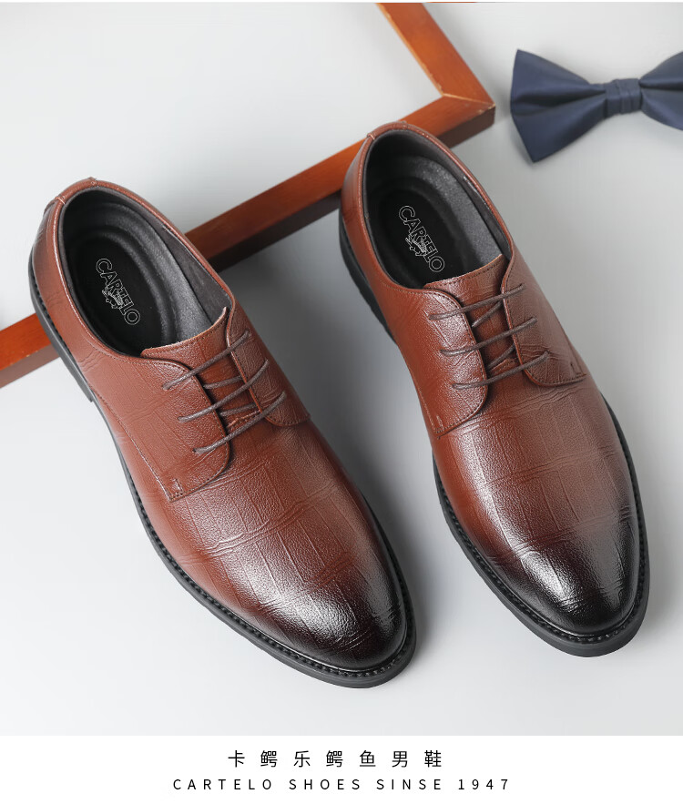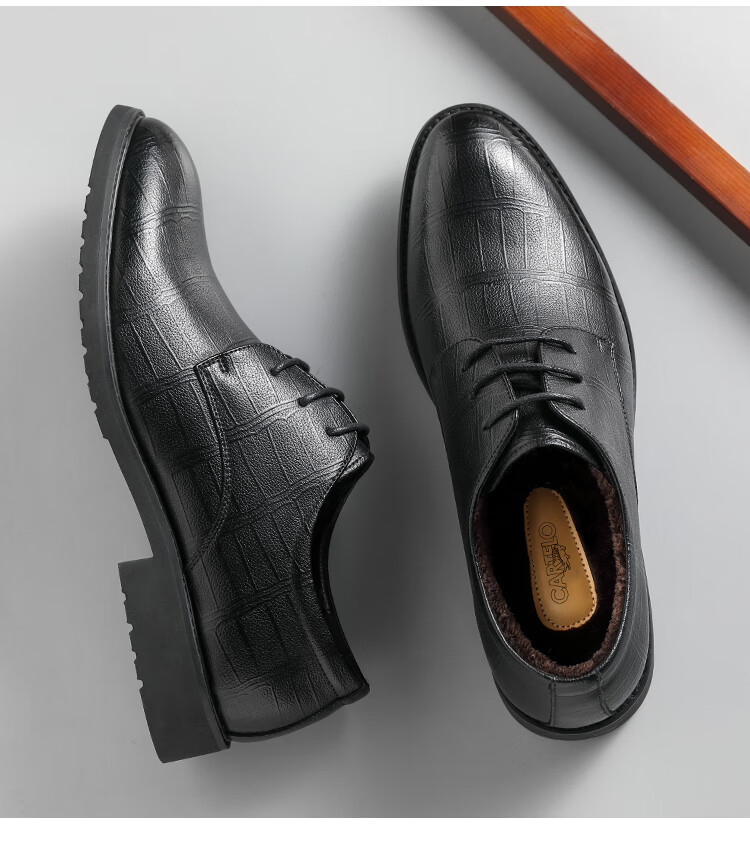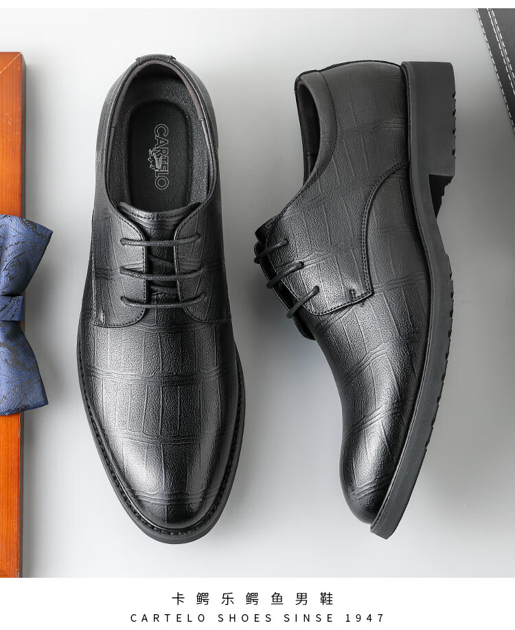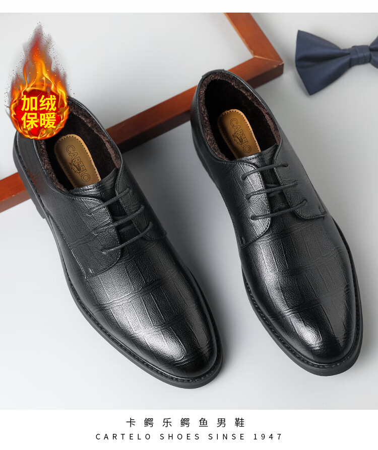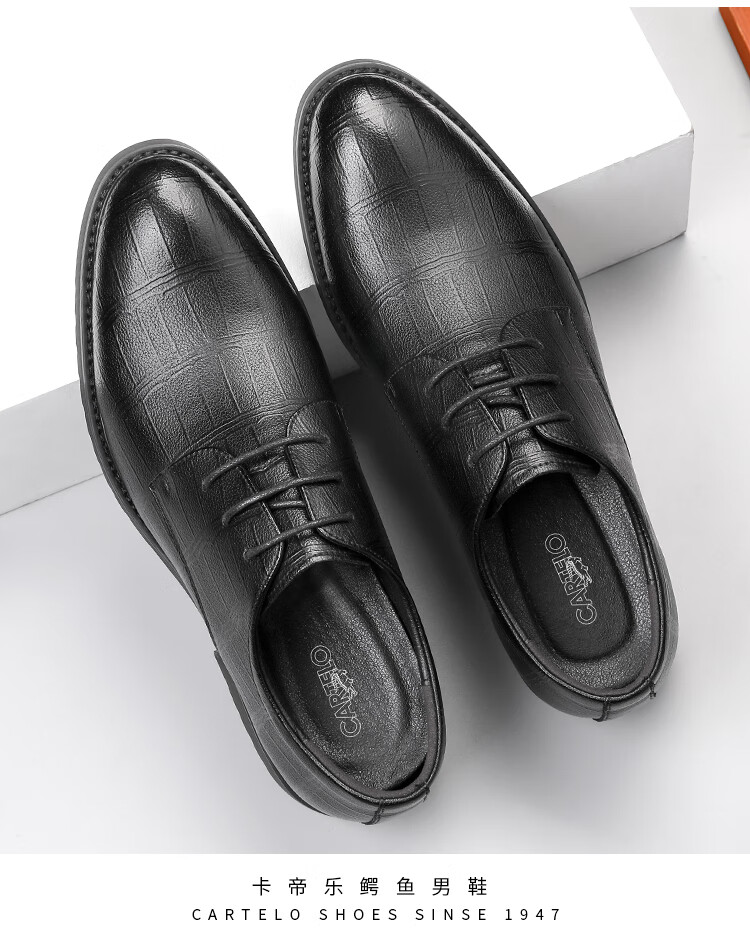 CARTELO Soft Cowhide Men's Leather Shoes Business Formal Shoes Men's Height-increasing Men's Shoes Plus Suede Leather Shoes Men's 9585 Black 42