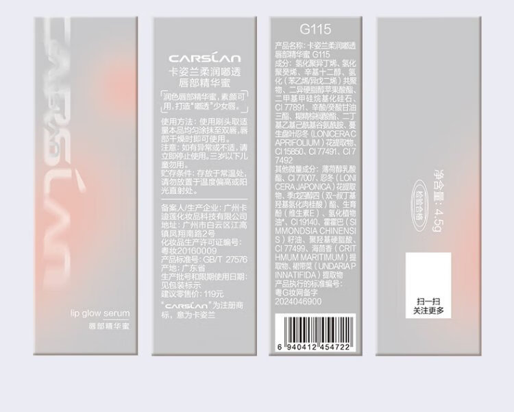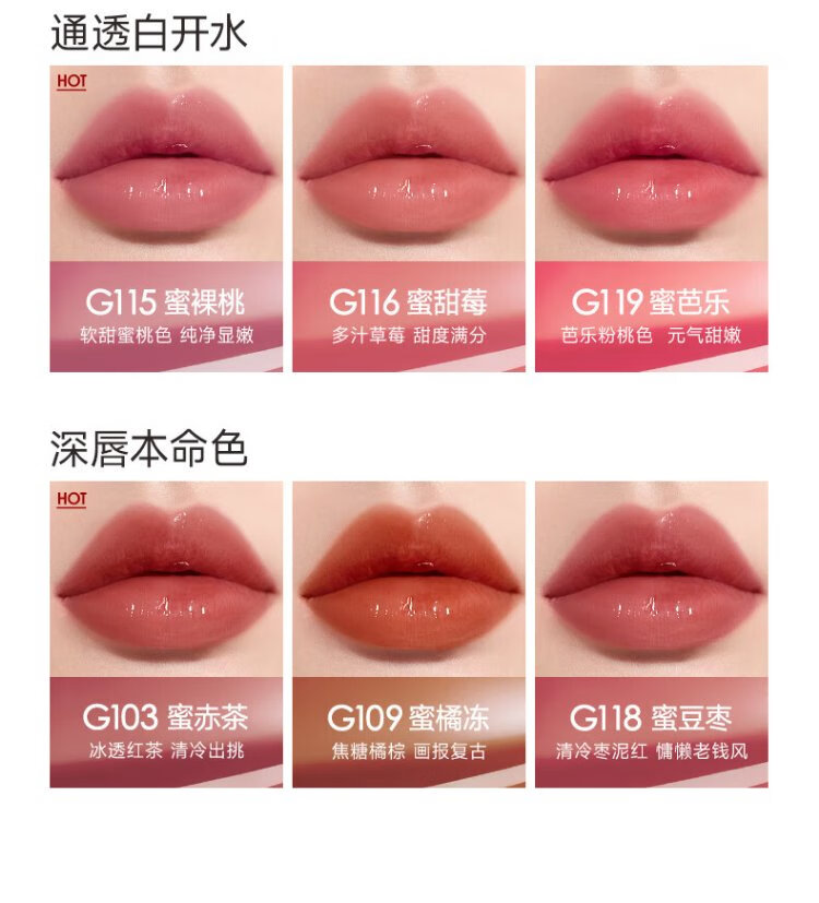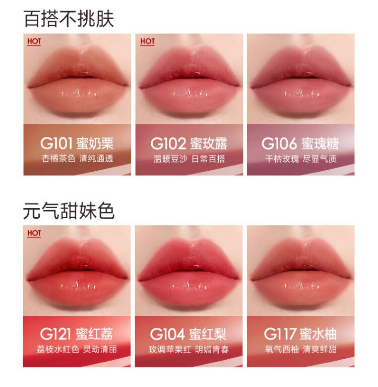 Carslan Colored Lip Essence Honey Cream Lip Glaze Lipstick Lip Gloss Water Glossy Mirror G104 Honey Red Pear 4.5g Birthday Gift for Women
