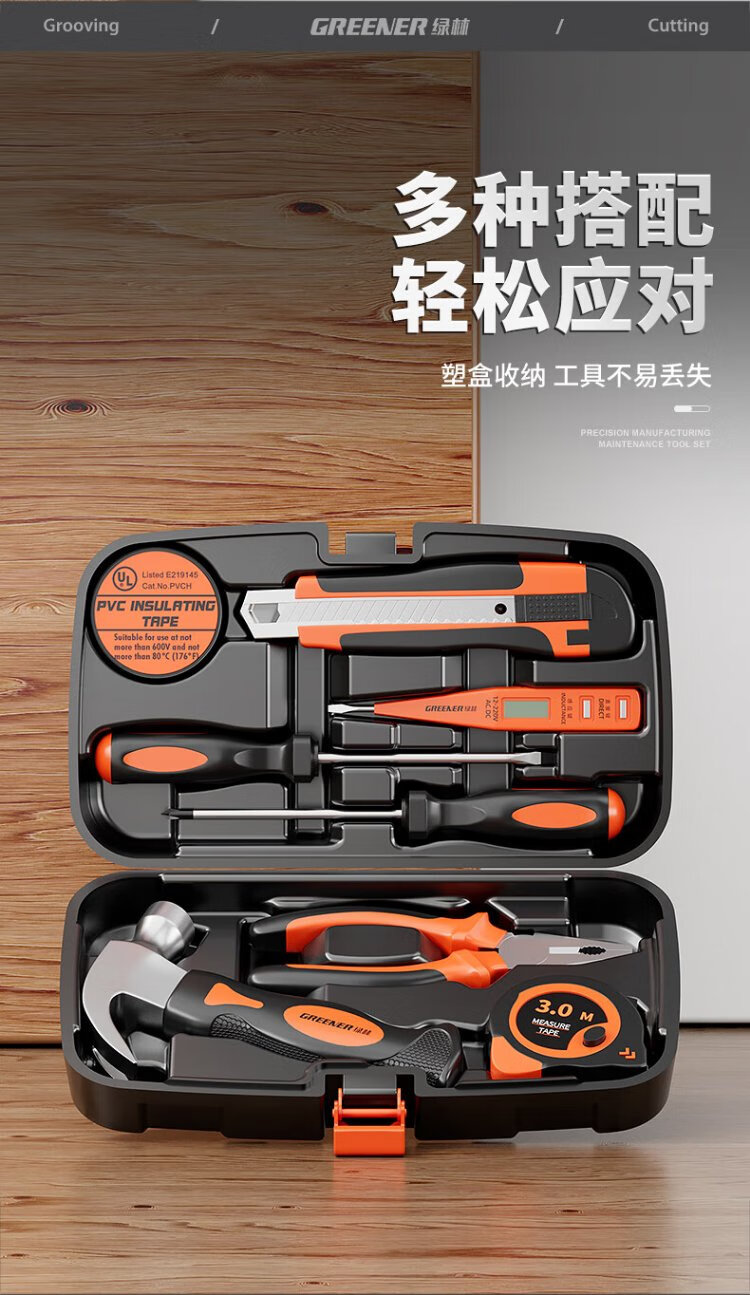 GREENER household tool box set electrician hardware tools screwdriver repair pliers tape measure