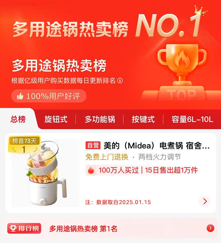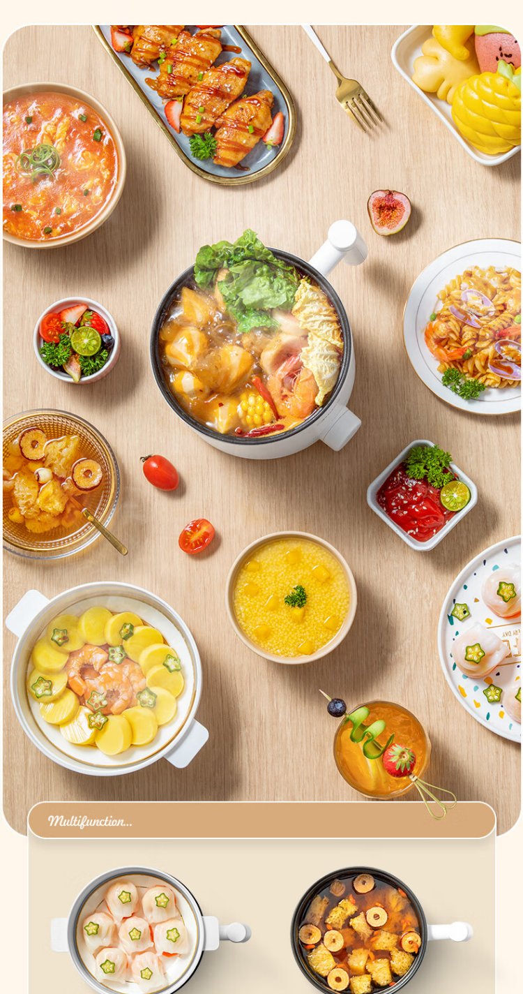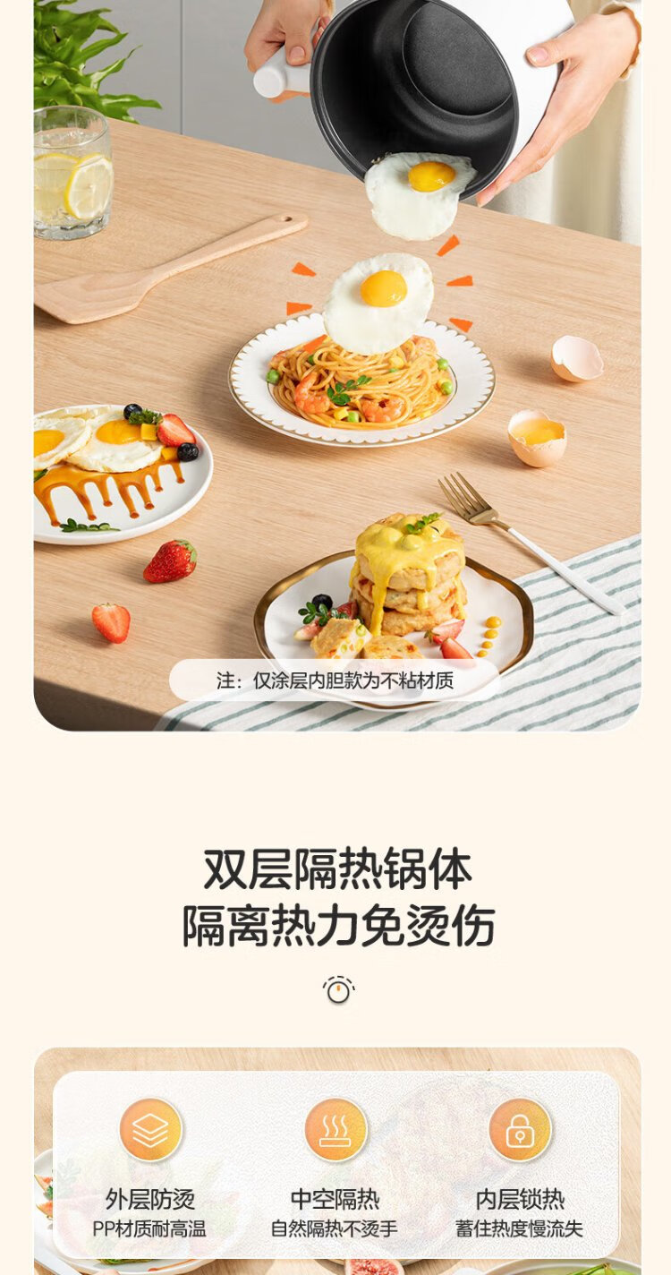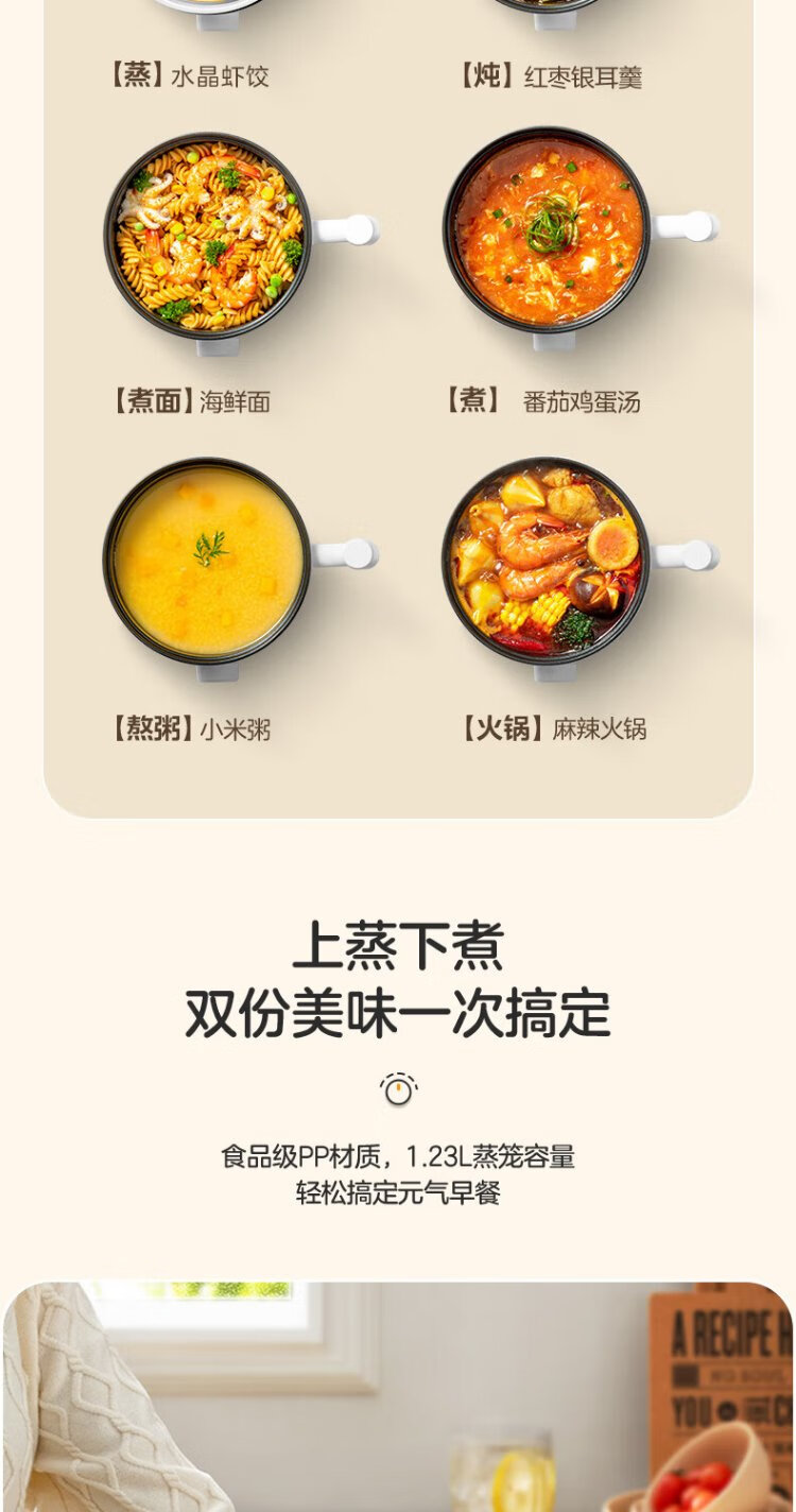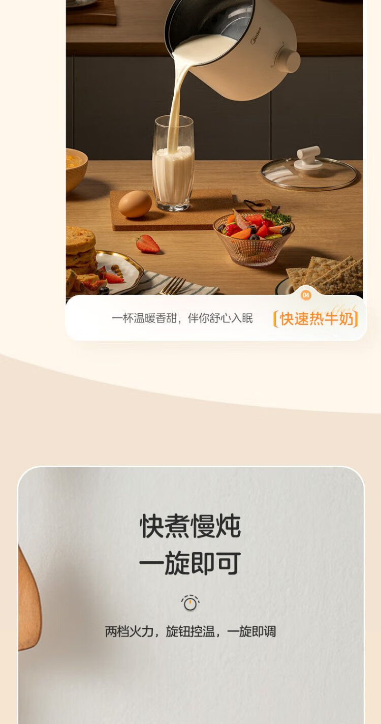 Midea electric cooking pot, dormitory small electric pot, electric steamer, student dormitory all-in-one instant noodles small hot pot, multi-function pot XZE1613 1.7L with steamer, national subsidy