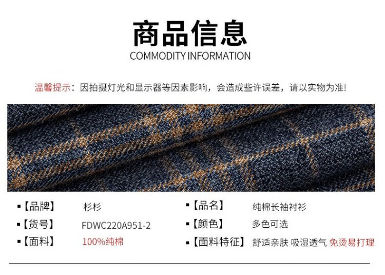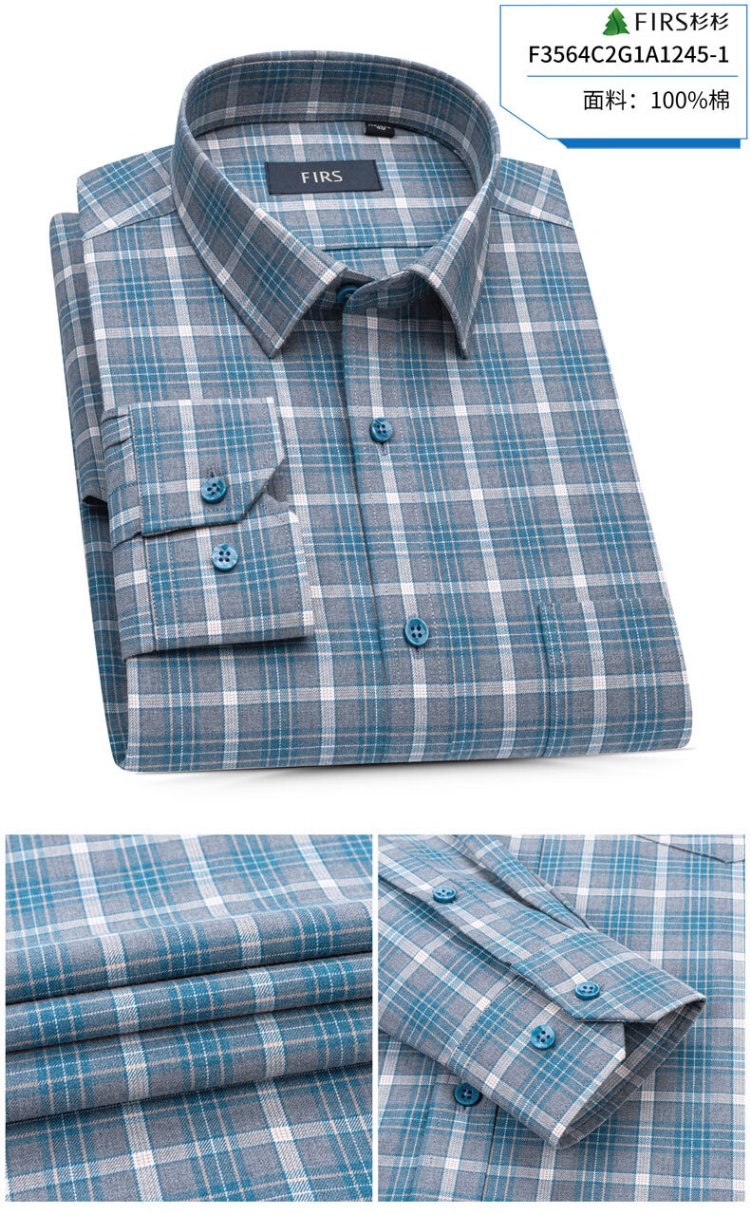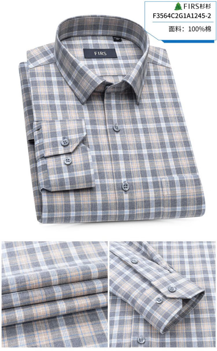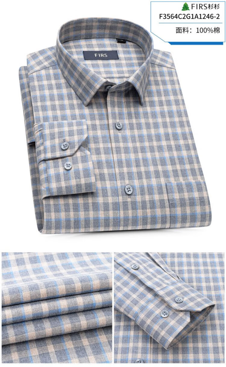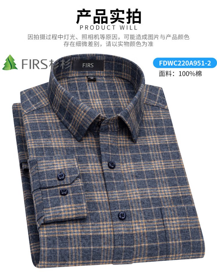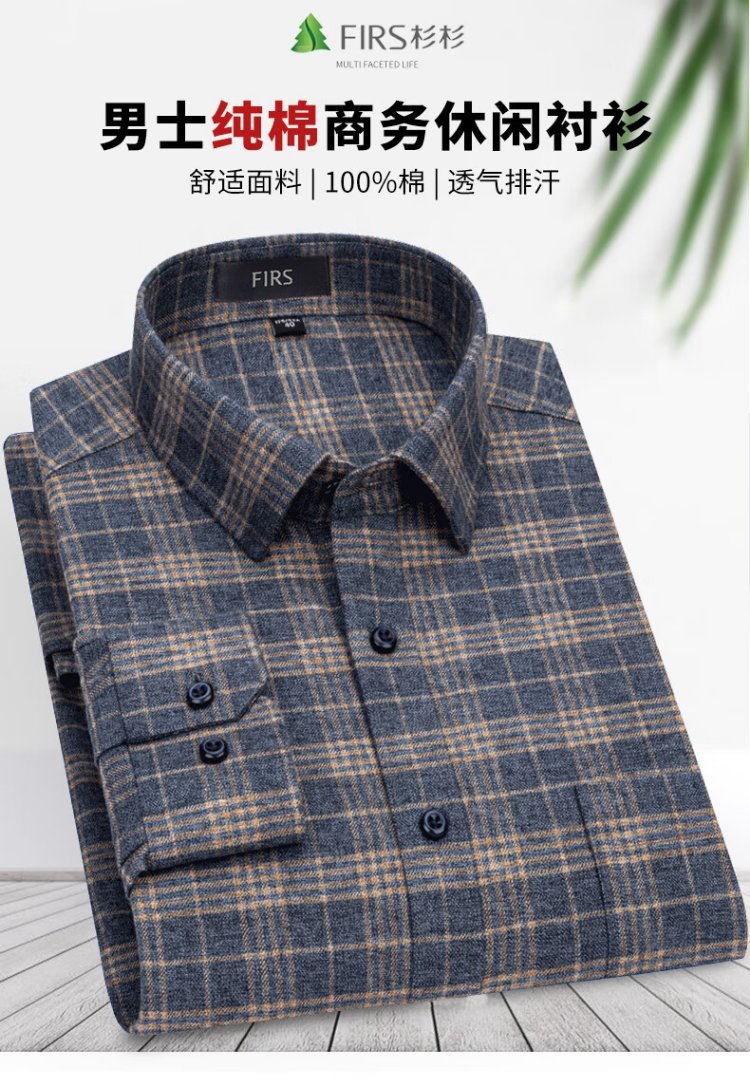 Shanshan (FIRS) pure cotton brushed long-sleeved shirt for men, middle-aged dad's cotton plaid shirt for men A951-2 42