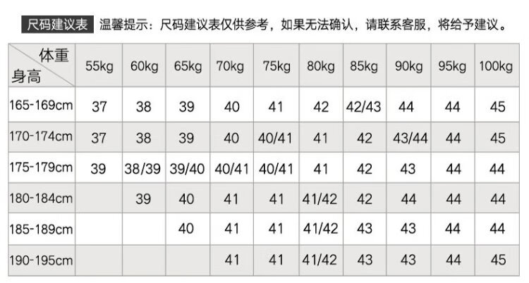 China (cm) 36 - 37 38 - 39 40 - 42 43 - 44 45 - 47