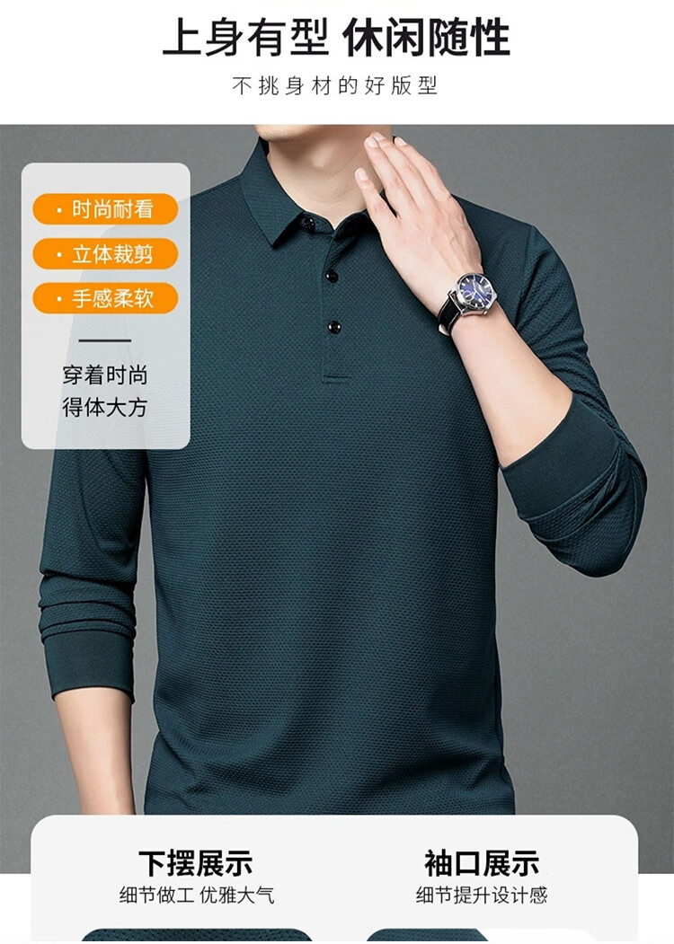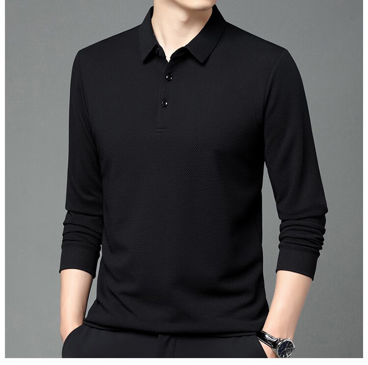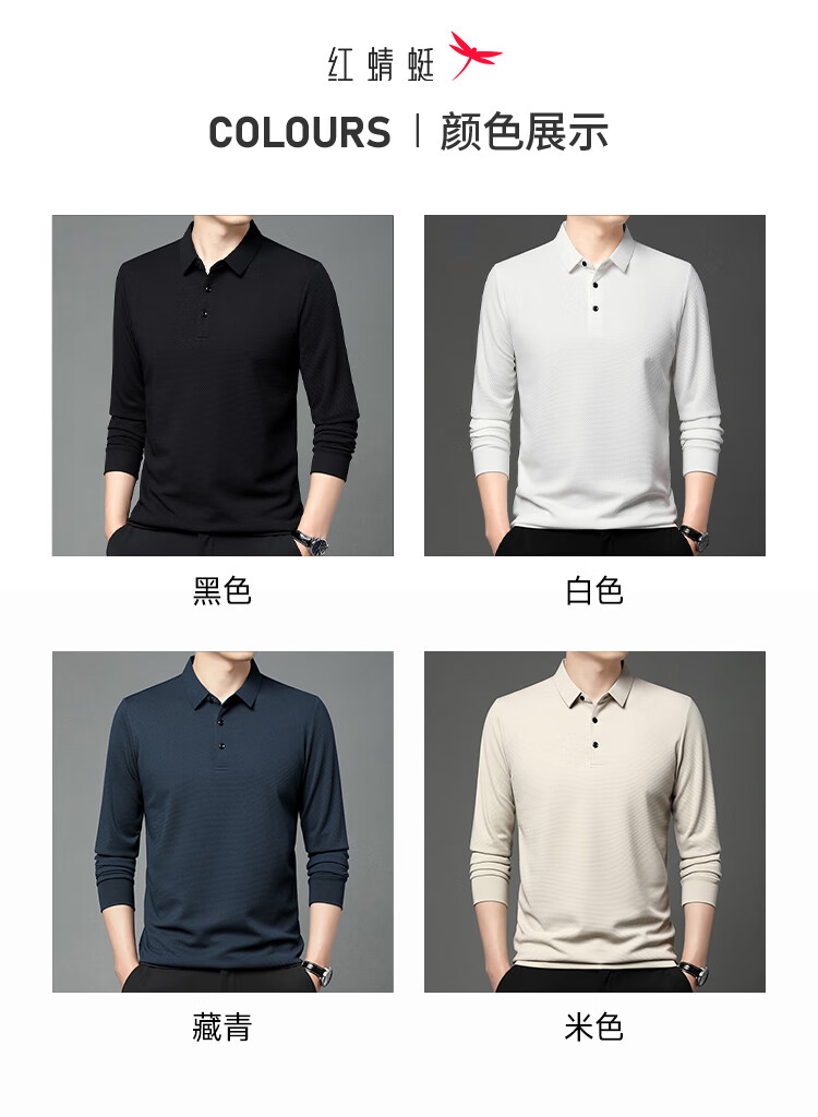 RED DRAGONFLY long-sleeved T-shirt men's business casual fashion simple comfortable versatile pullover POLO shirt bottoming shirt top black 2XL