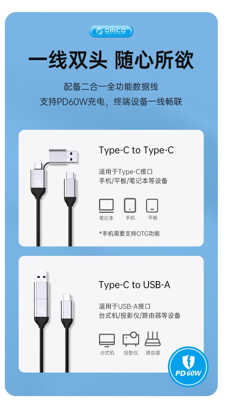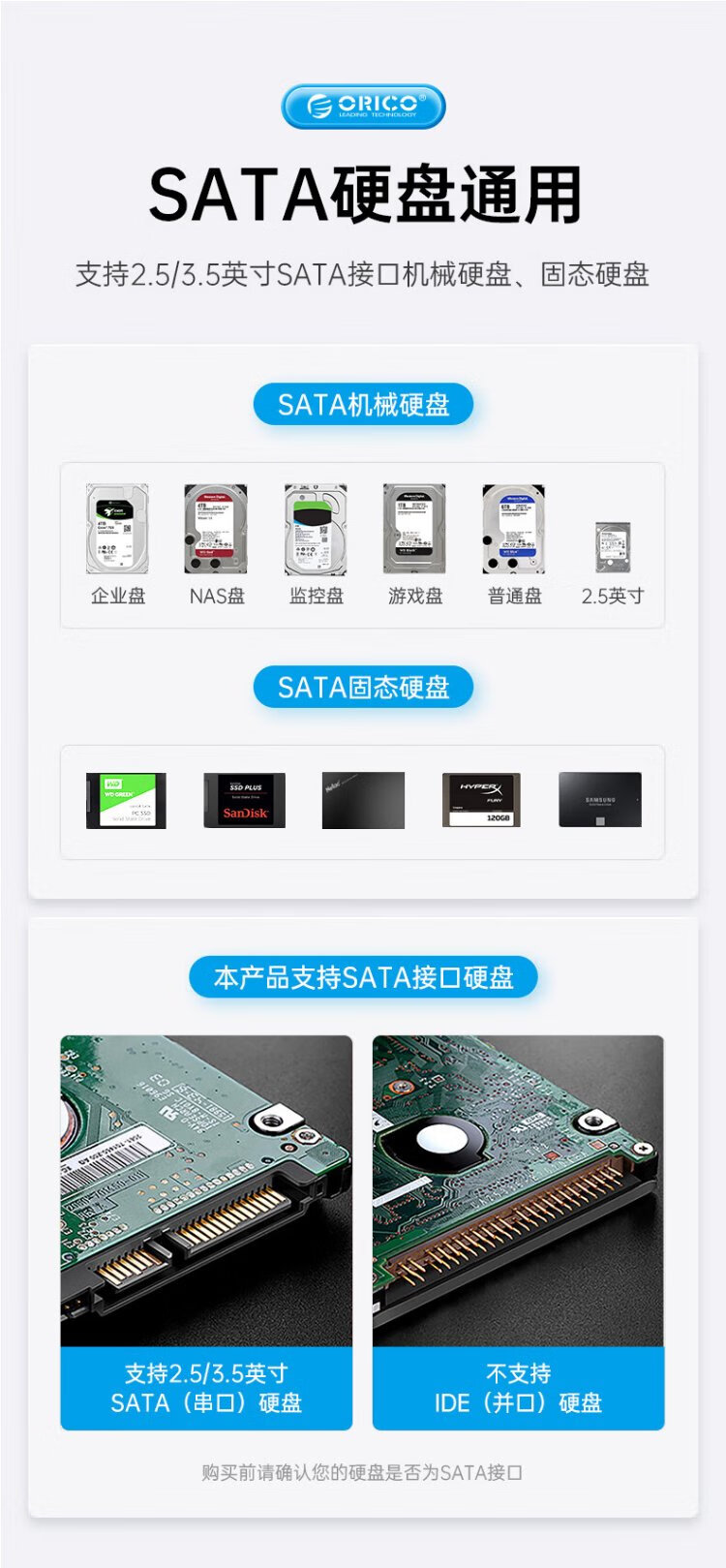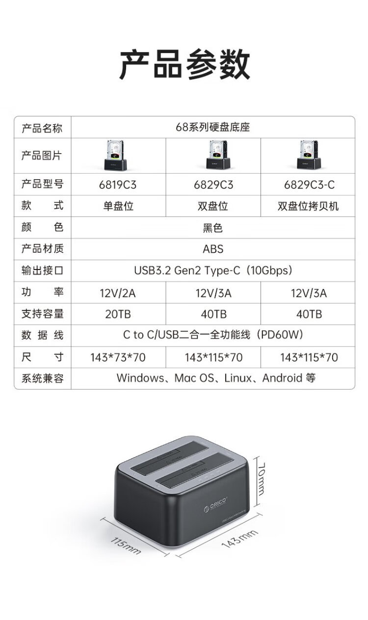 Orrick mobile hard drive box base 2.5/3.5-inch SATA mechanical solid-state universal Type-C3.2 ssd external hard drive box mobile offline copy machine 6829C3