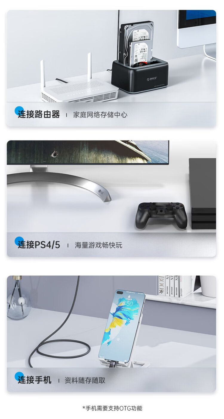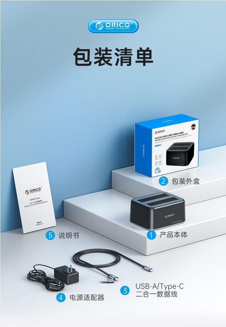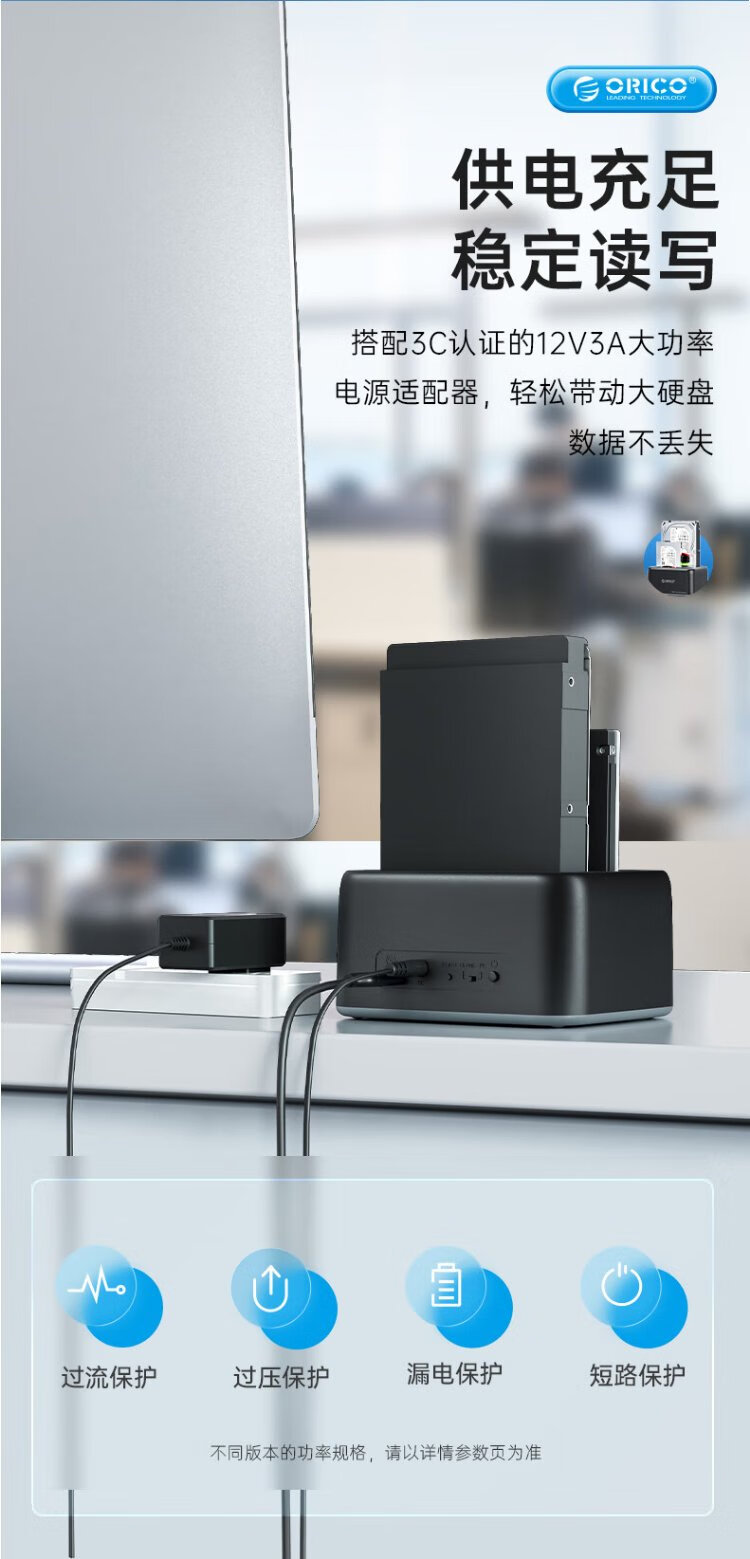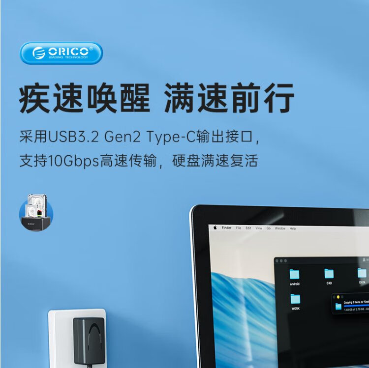 奥睿科(ORICO)移动硬盘盒底座2.5/3.5英寸SATA机械固态通用Type-C3.2台式笔记本ssd外置硬盘盒子-6829C3