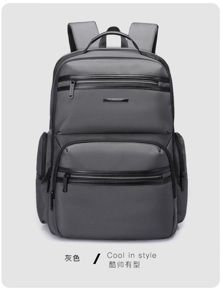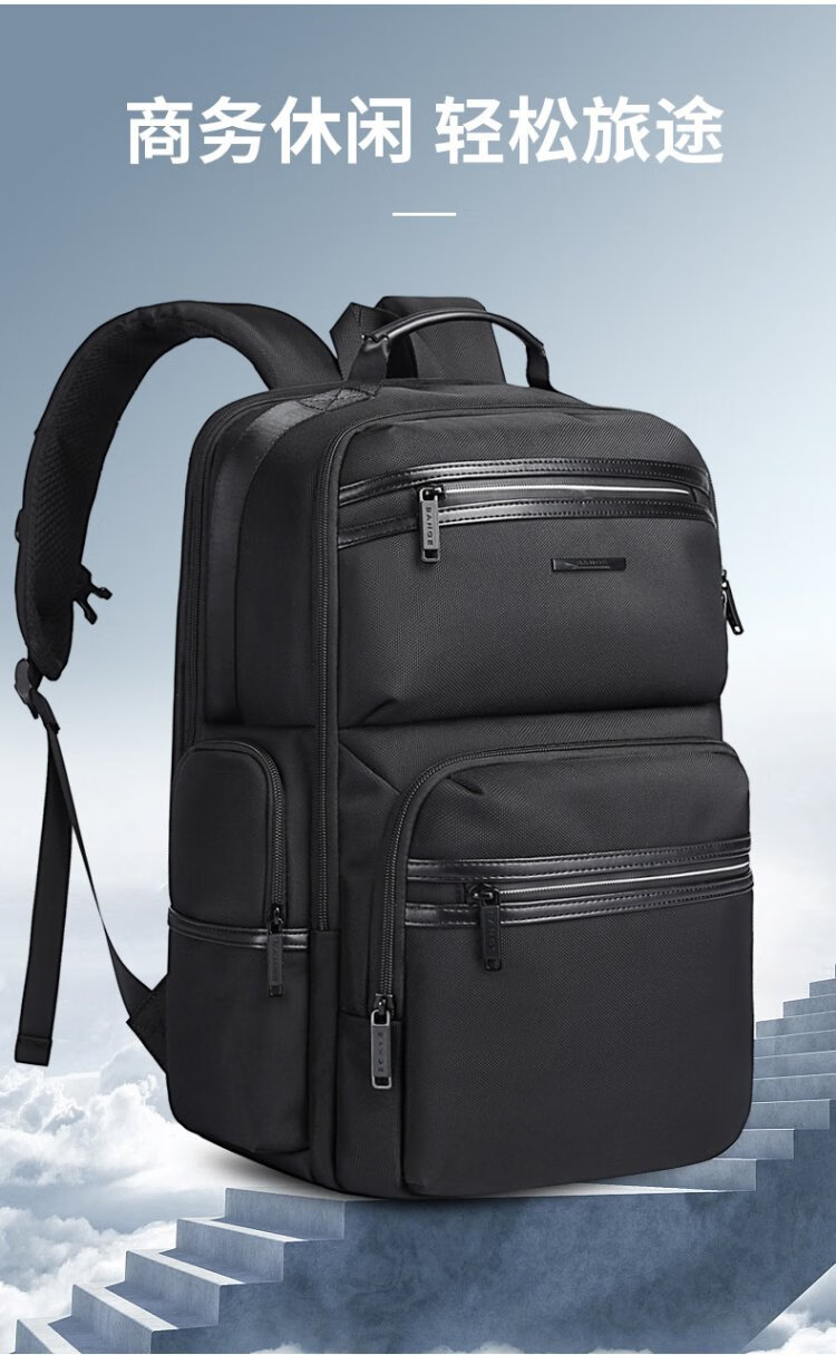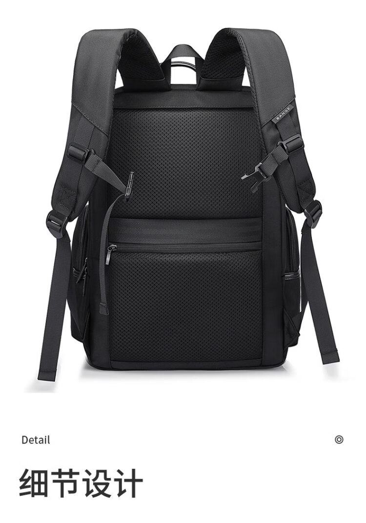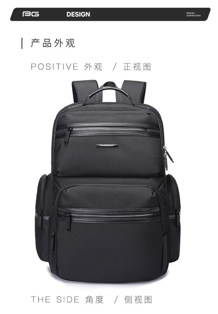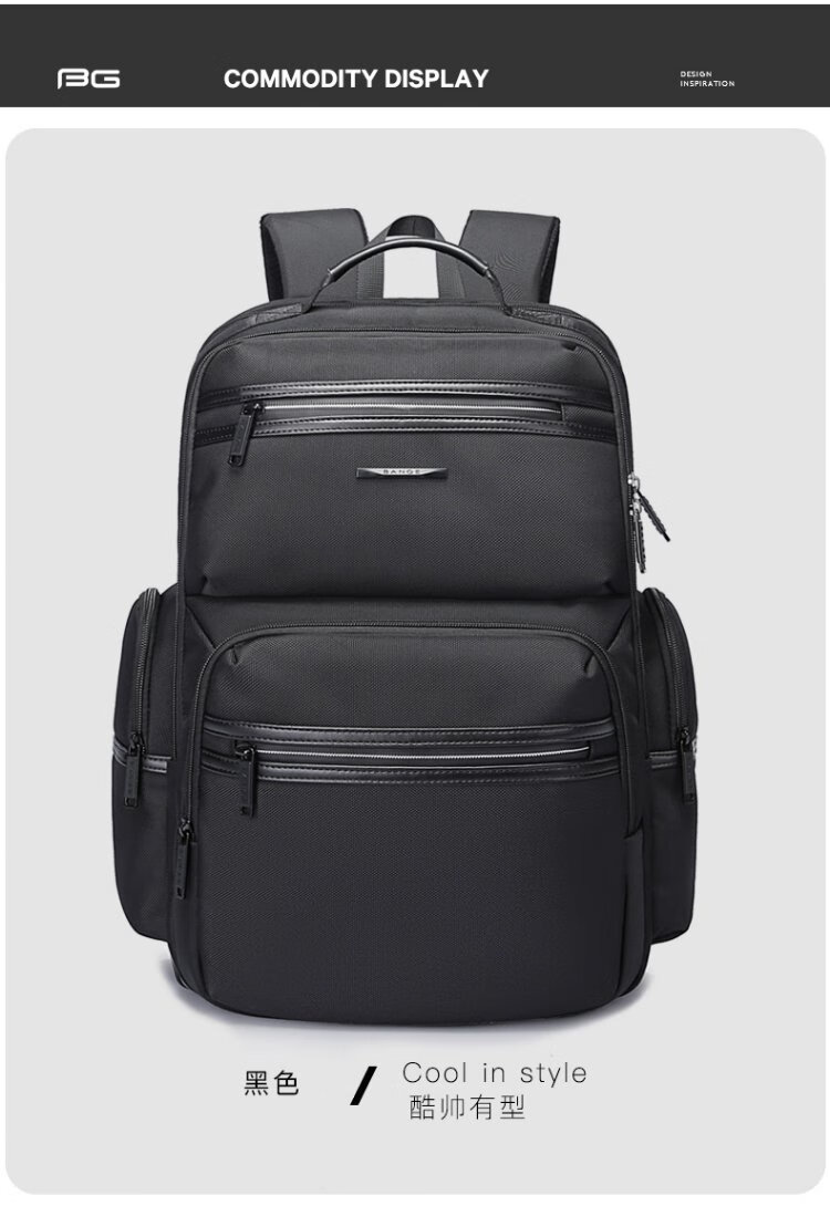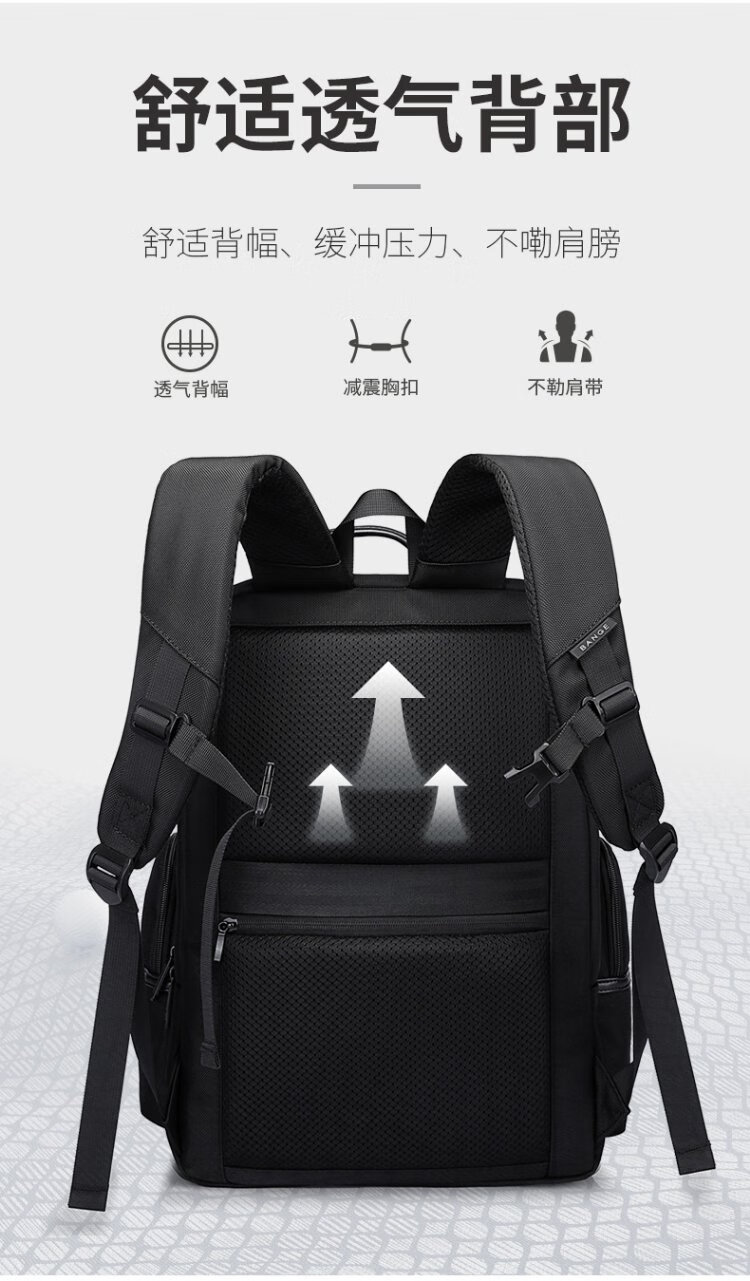 Bange men's backpack, boys, high school students and college students' school bags, trendy men's business trip backpack, large capacity 15.6-inch laptop bag BG-2601 black