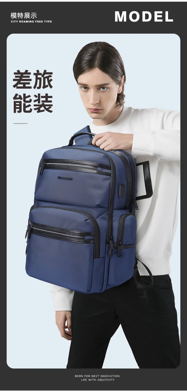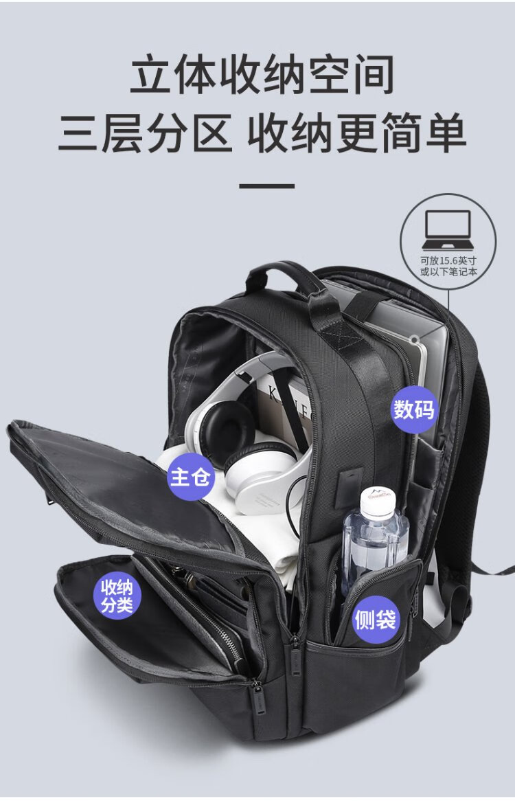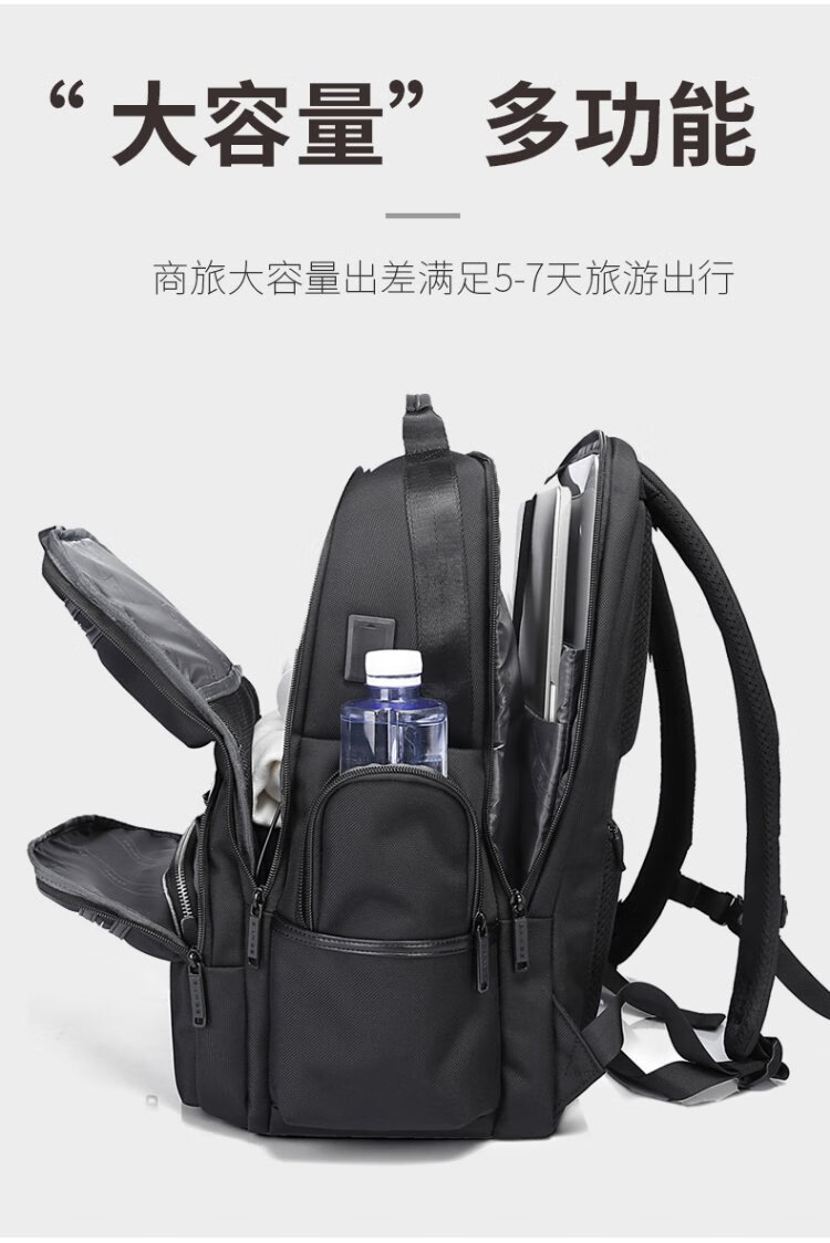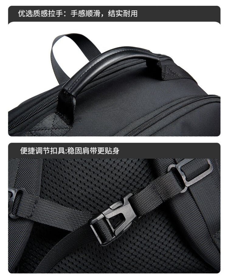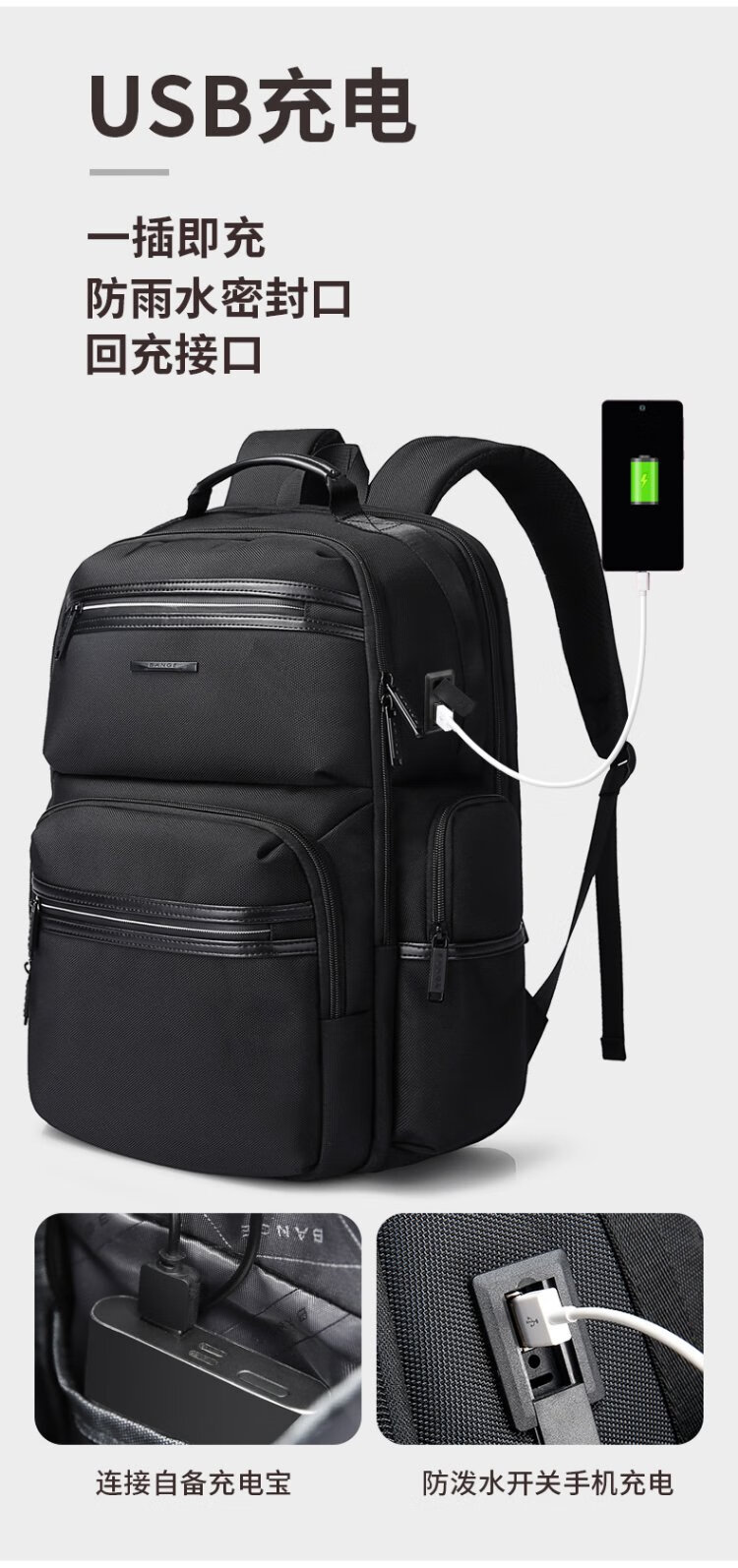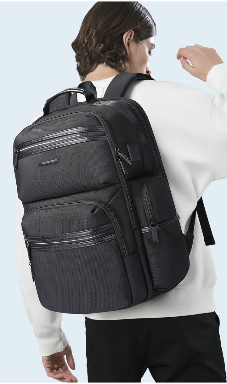Bange men's backpack, boys, high school students and college students' school bags, trendy men's business trip backpack, large capacity 15.6-inch laptop bag BG-2601 black