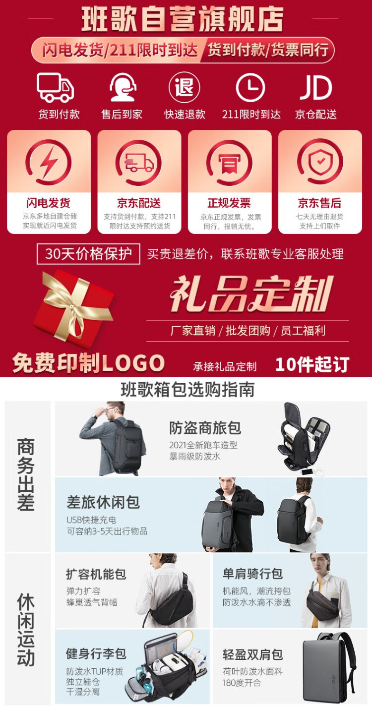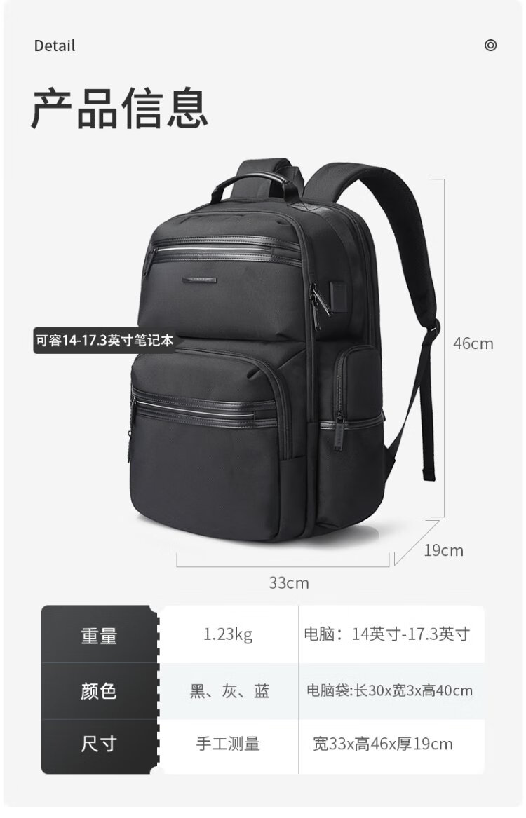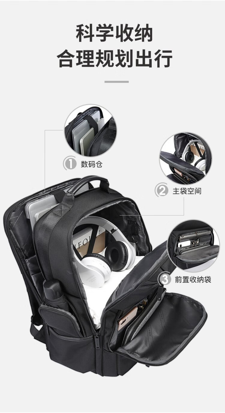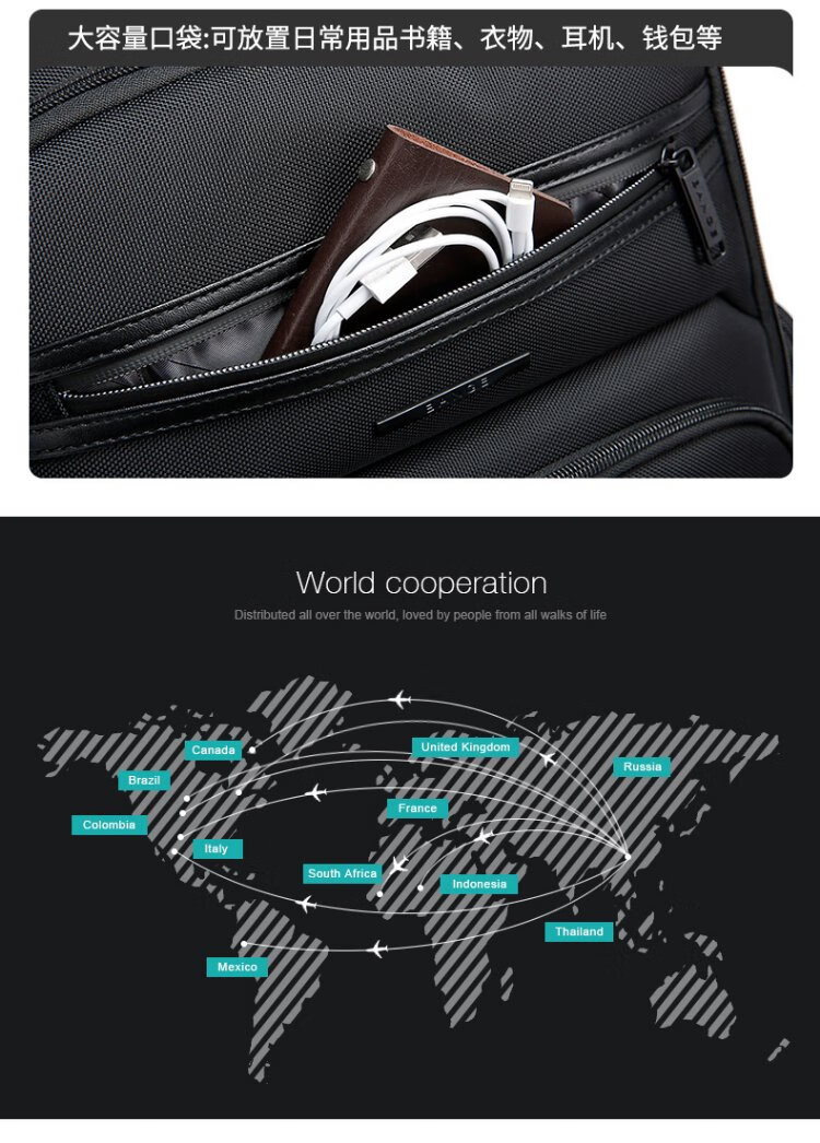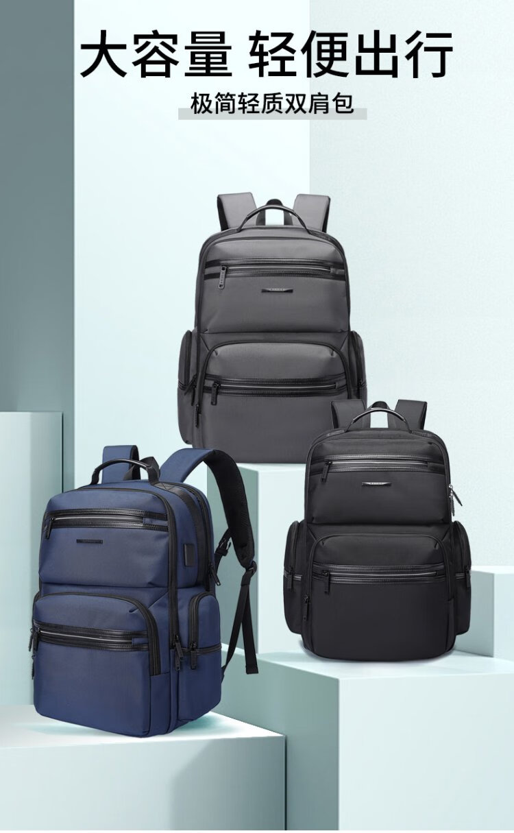 Bange men's backpack, boys, high school students and college students' school bags, trendy men's business trip backpack, large capacity 15.6-inch laptop bag BG-2601 black